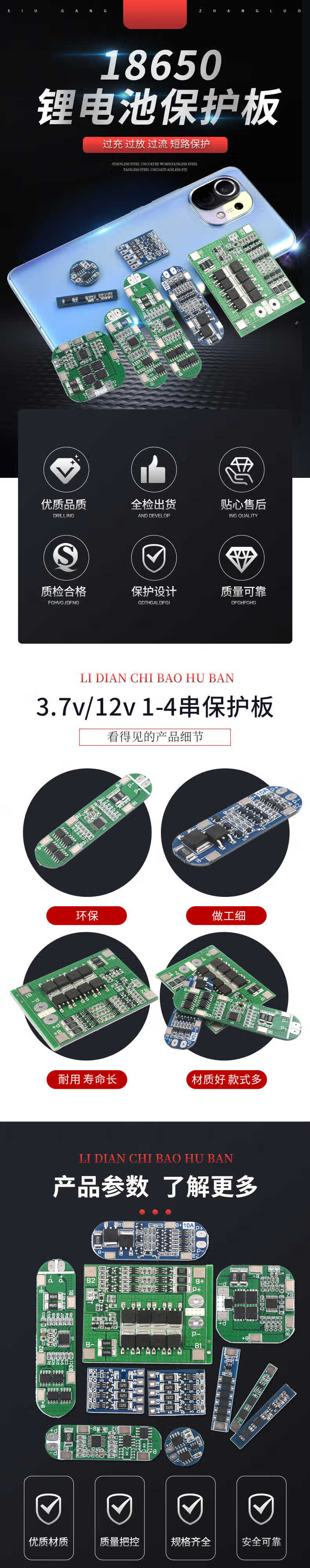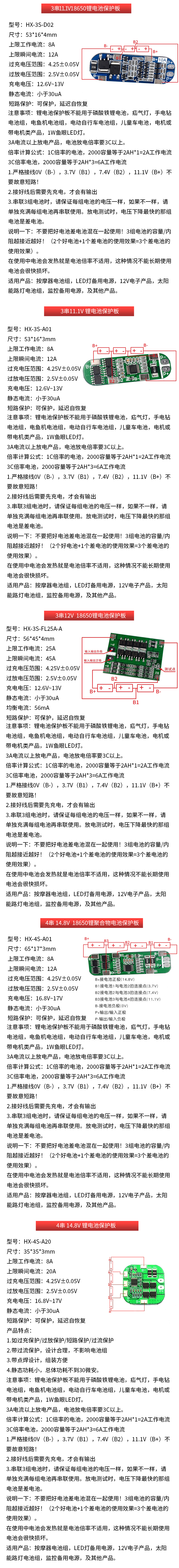 18650 lithium battery module overcharge, over-discharge, short-circuit charging protection board Voltage 1 three strings 2/3/4 strings 3.7/12V 4 strings 14.8V lithium battery protection board