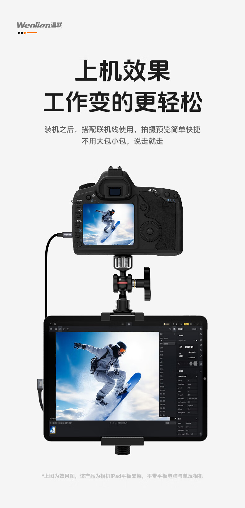 Wenlian is suitable for Sony M4 Nikon Z8 Canon R5 and other cameras pixel cake connection Apple iPad mobile phone tablet universal metal bracket clip shelf fixed support frame universal magic hand + metal tablet bracket does not include connecting wires clamping 120-250mm