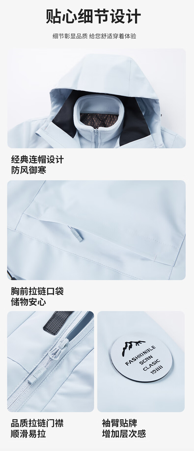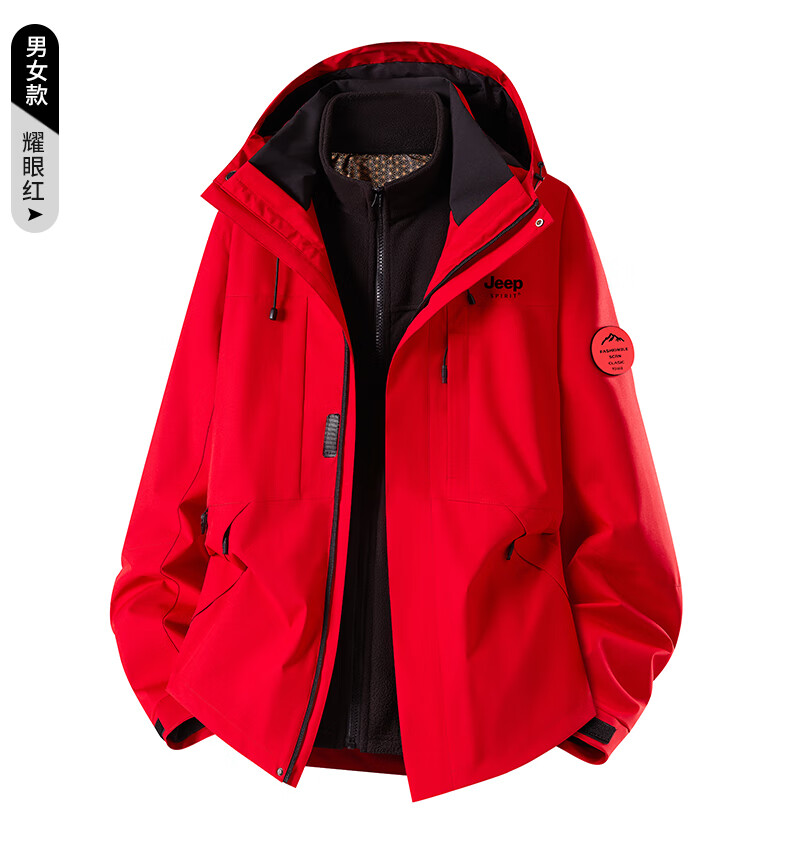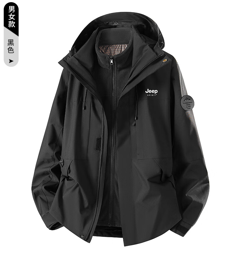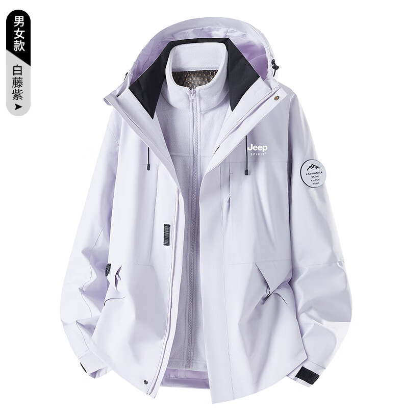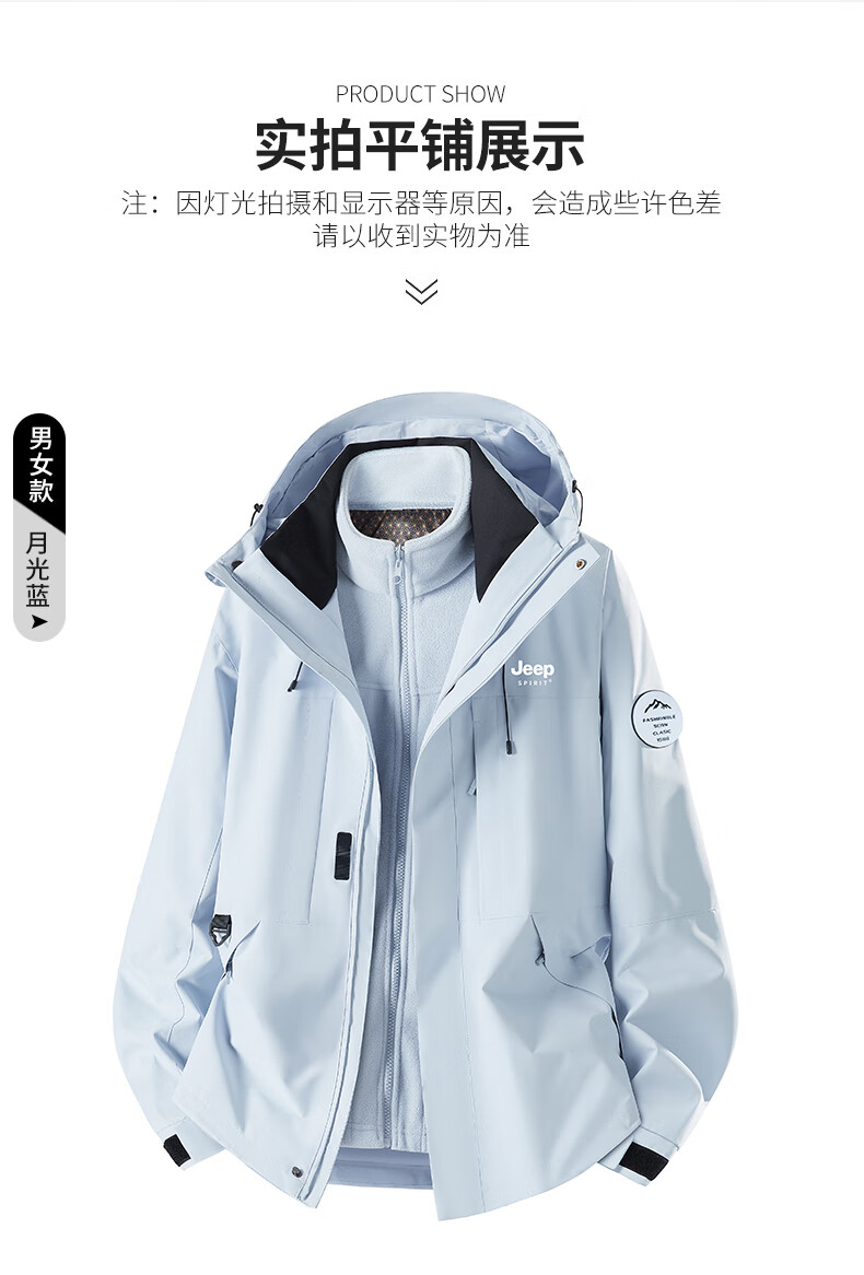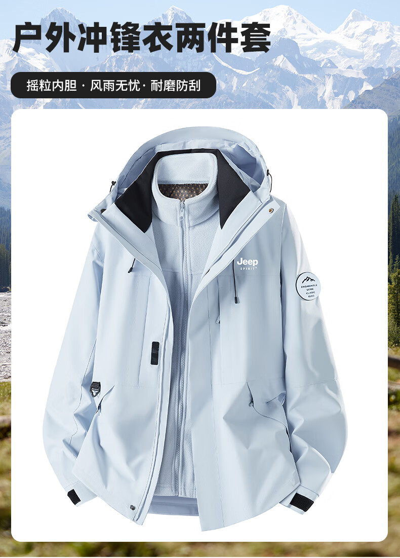 JEEP SPIRIT New Jacket Three-in-One Jacket for Men and Women Spring Windproof and Waterproof Couple Mountaineering Jacket Group Purchase 26188 Moonlight Blue Three-in-One Men and Women Same Style L (Recommended 100-115 catties)