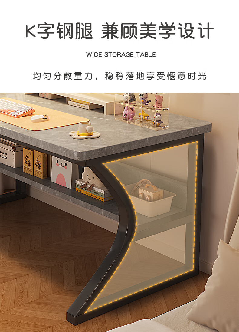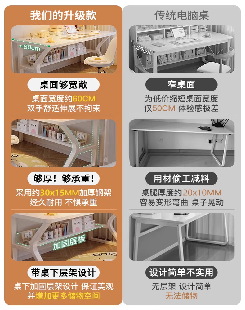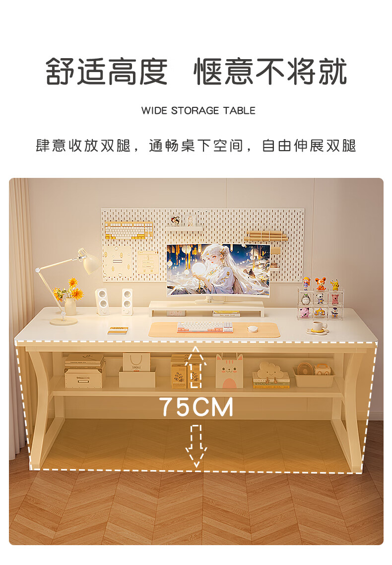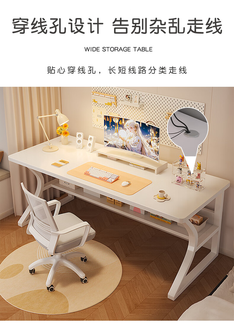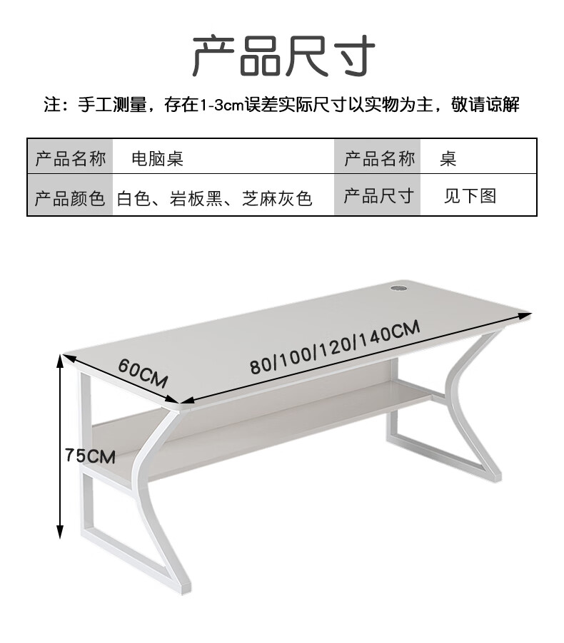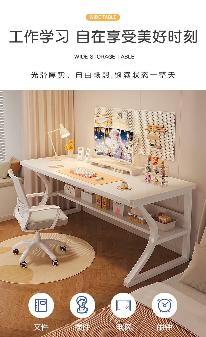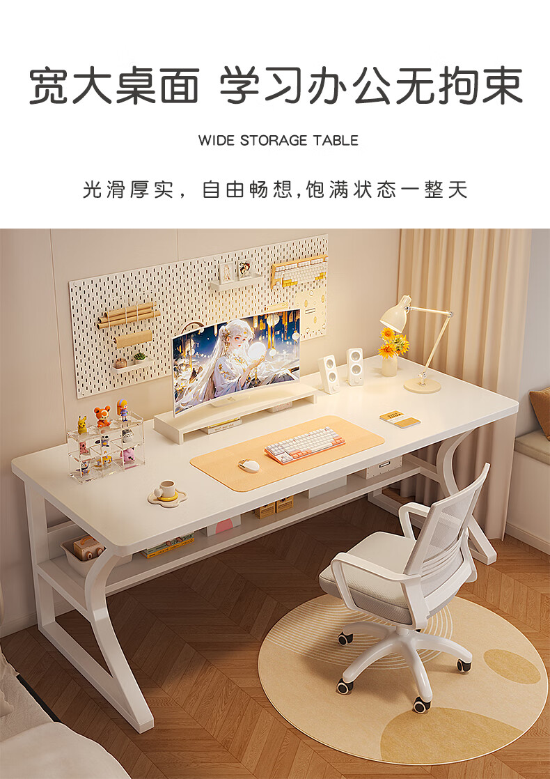 Humanities Chengjia computer desk desktop simple e-sports game table home office desk study table girls bedroom writing table C-shaped double-layer reinforced white 80*50cm single table