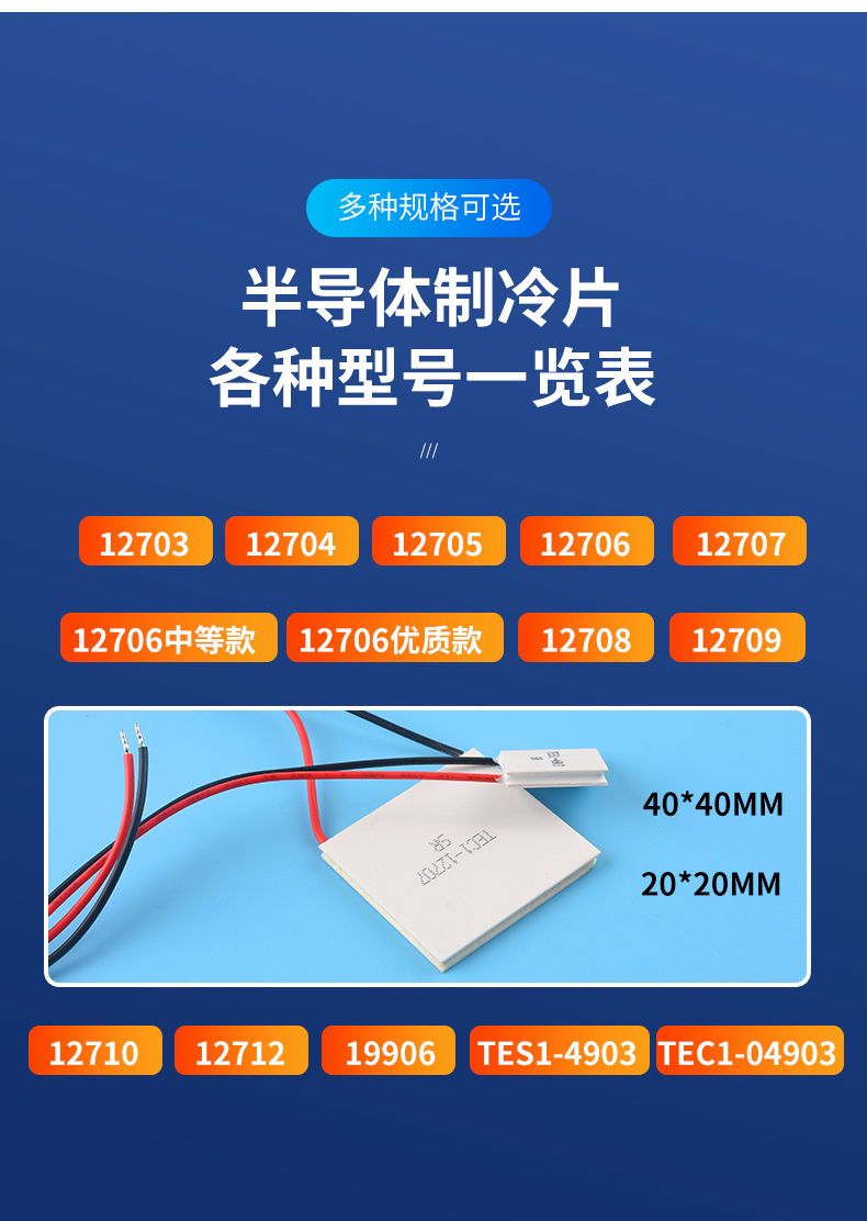 Semiconductor refrigeration chip TEC1-12706/12705/12703/12707/12710/12 24V high quality model 19906 refrigeration chip. Please consult customer service for quotation for large quantities.