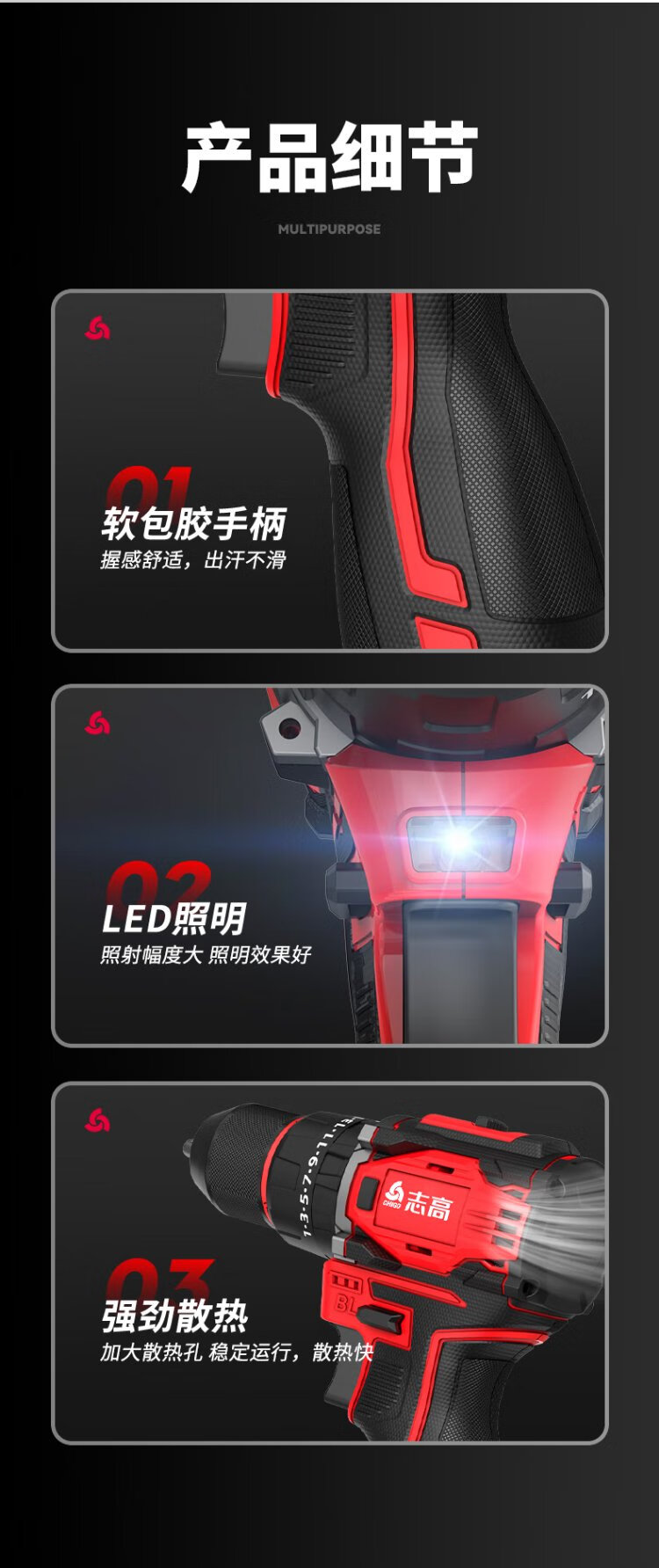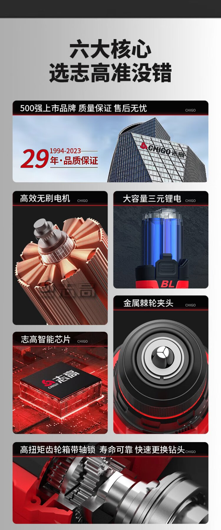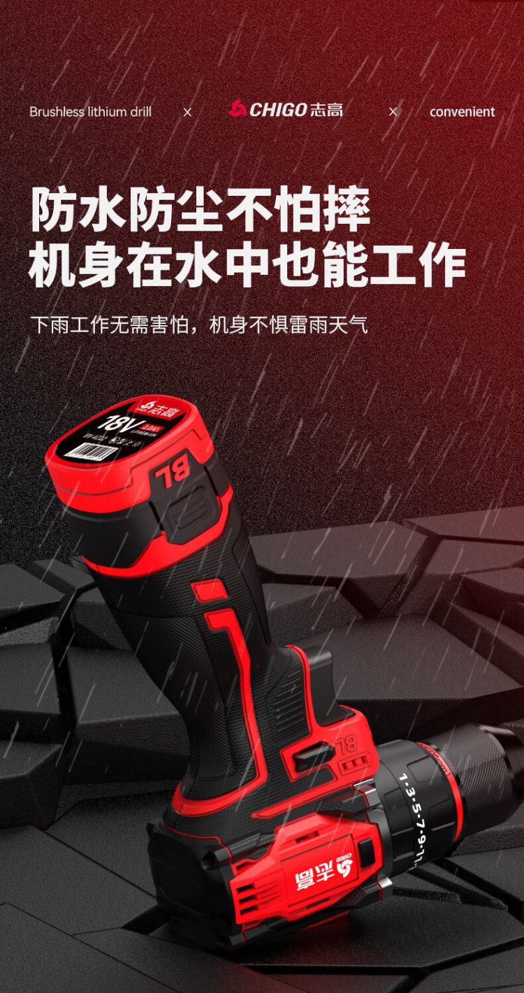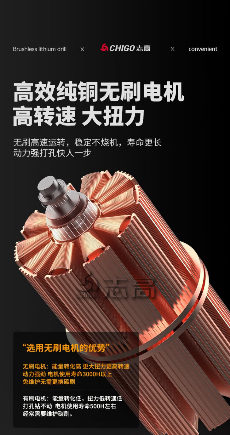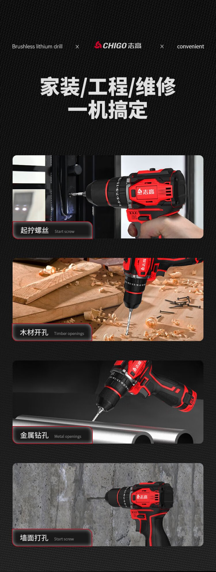 Chigo Brushless Hand Drill Lithium Battery Impact Drill Household Electric Drill Small Steel Cannon Rechargeable Multi-Function Electric Pistol Drill 120N Impact Small Steel Cannon 2.0Ah One Power + Gift