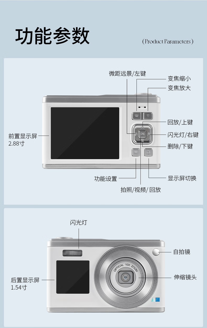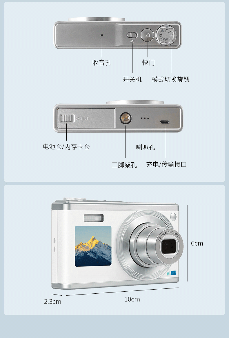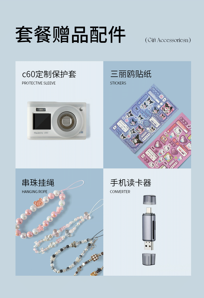 HKMW's same CCD camera student portable small digital high-definition travel mirrorless entry-level camera card machine for girls C60 Time and Space Silver HD Dual Screen Auto Package 3 (64G memory card)