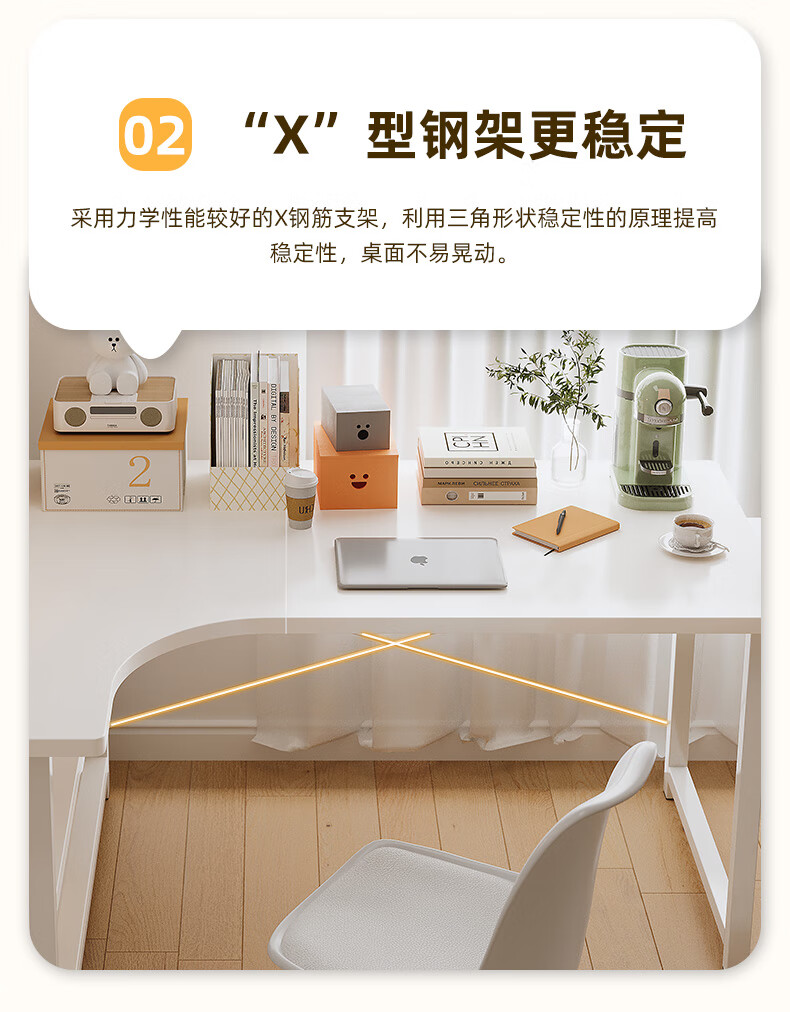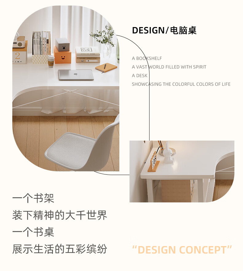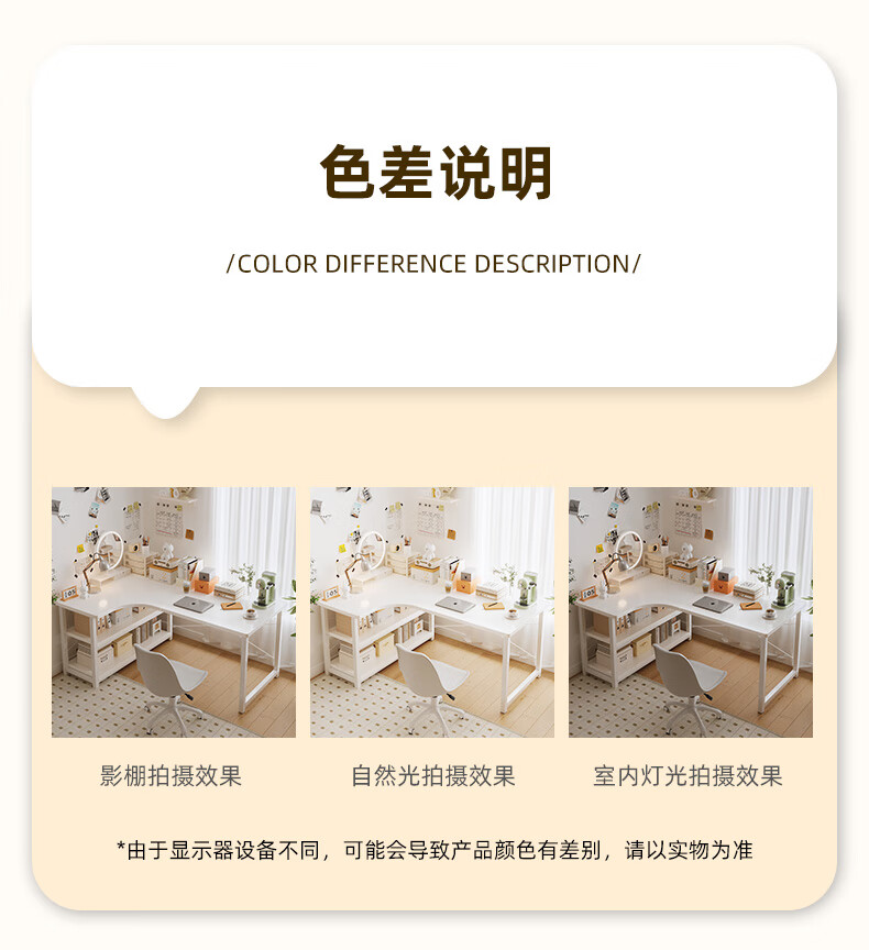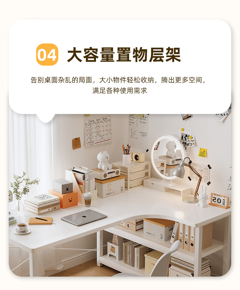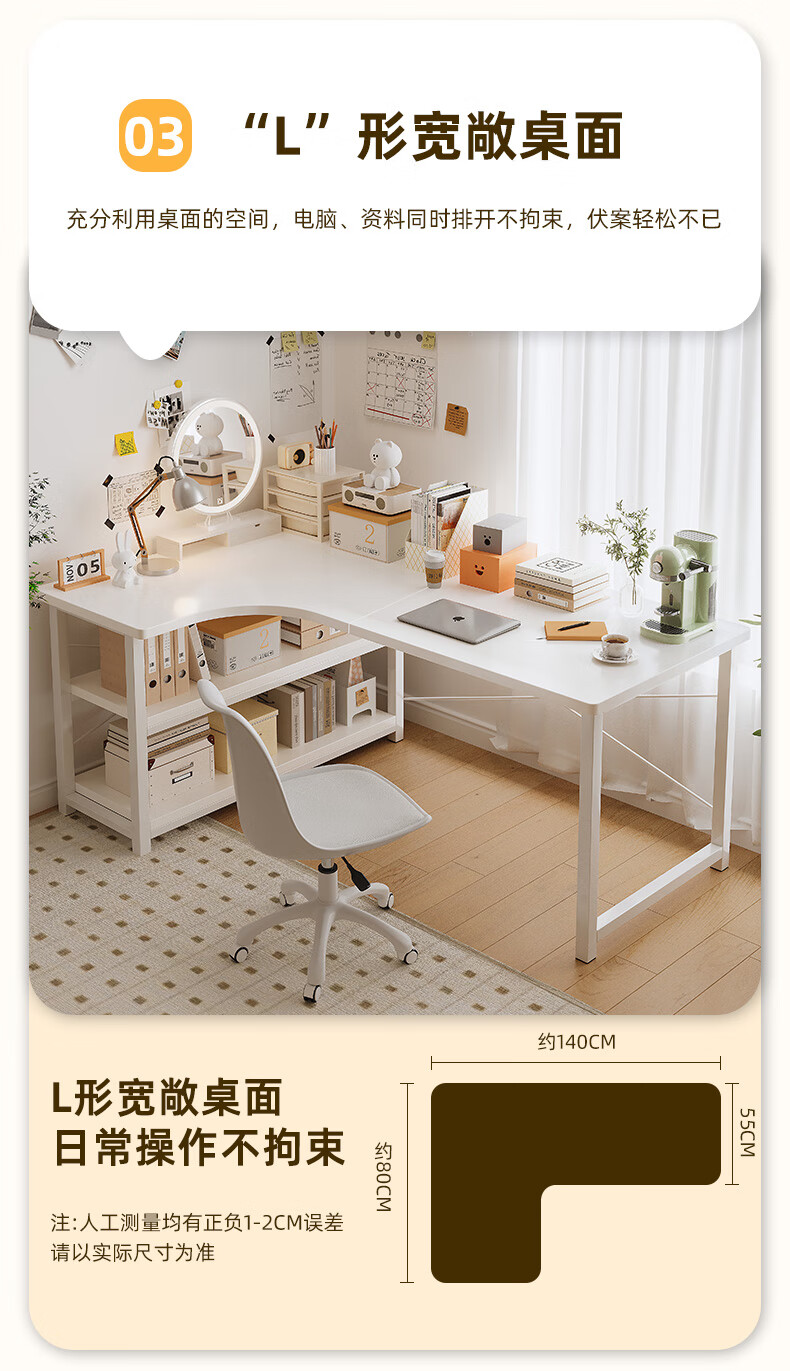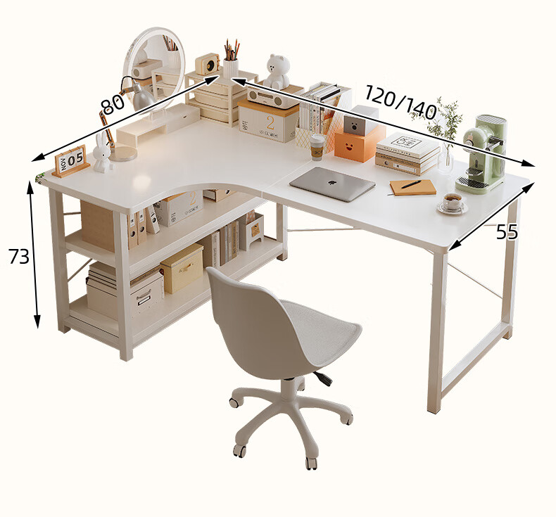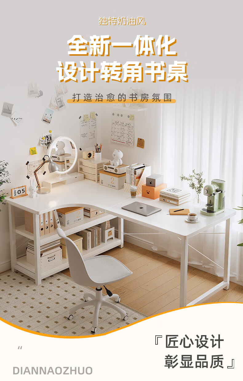Zhenyan selected computer desk corner desk L-shaped cream style bookshelf integrated table home bedroom student study table simple table left corner-cream white 120*80CM