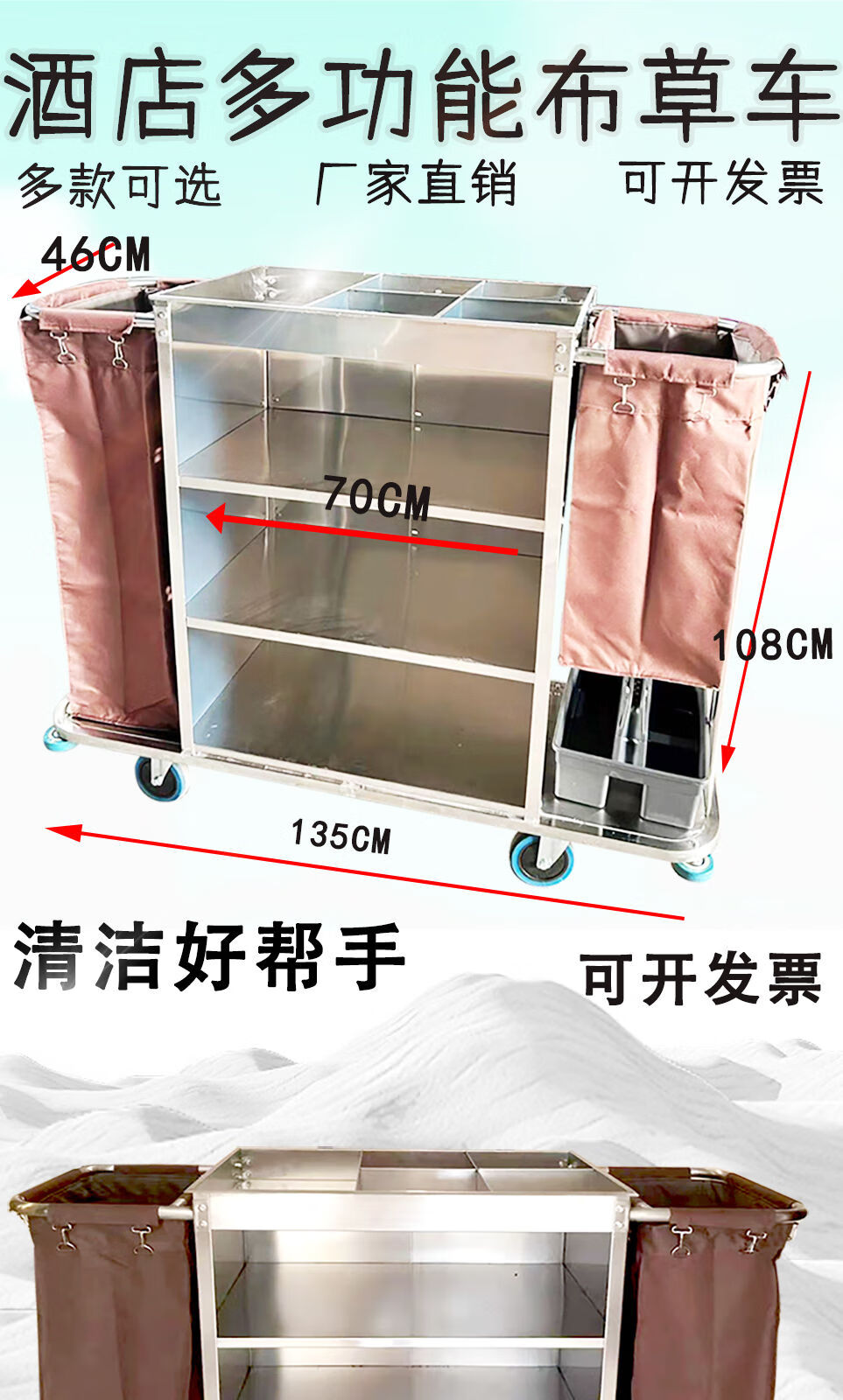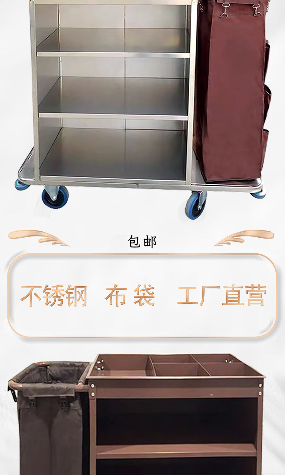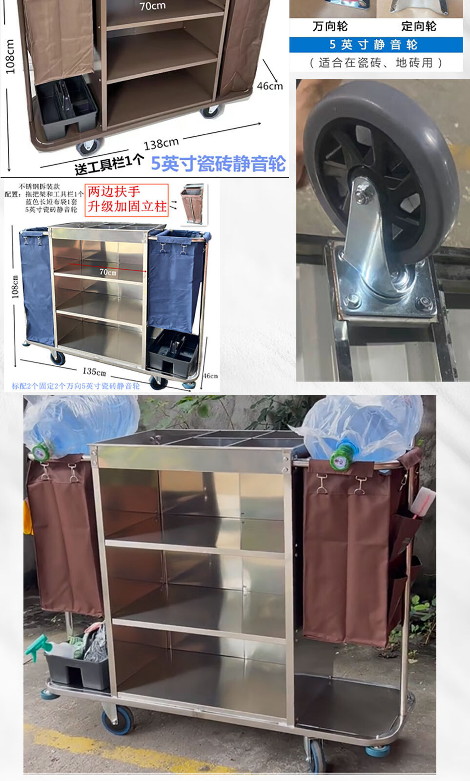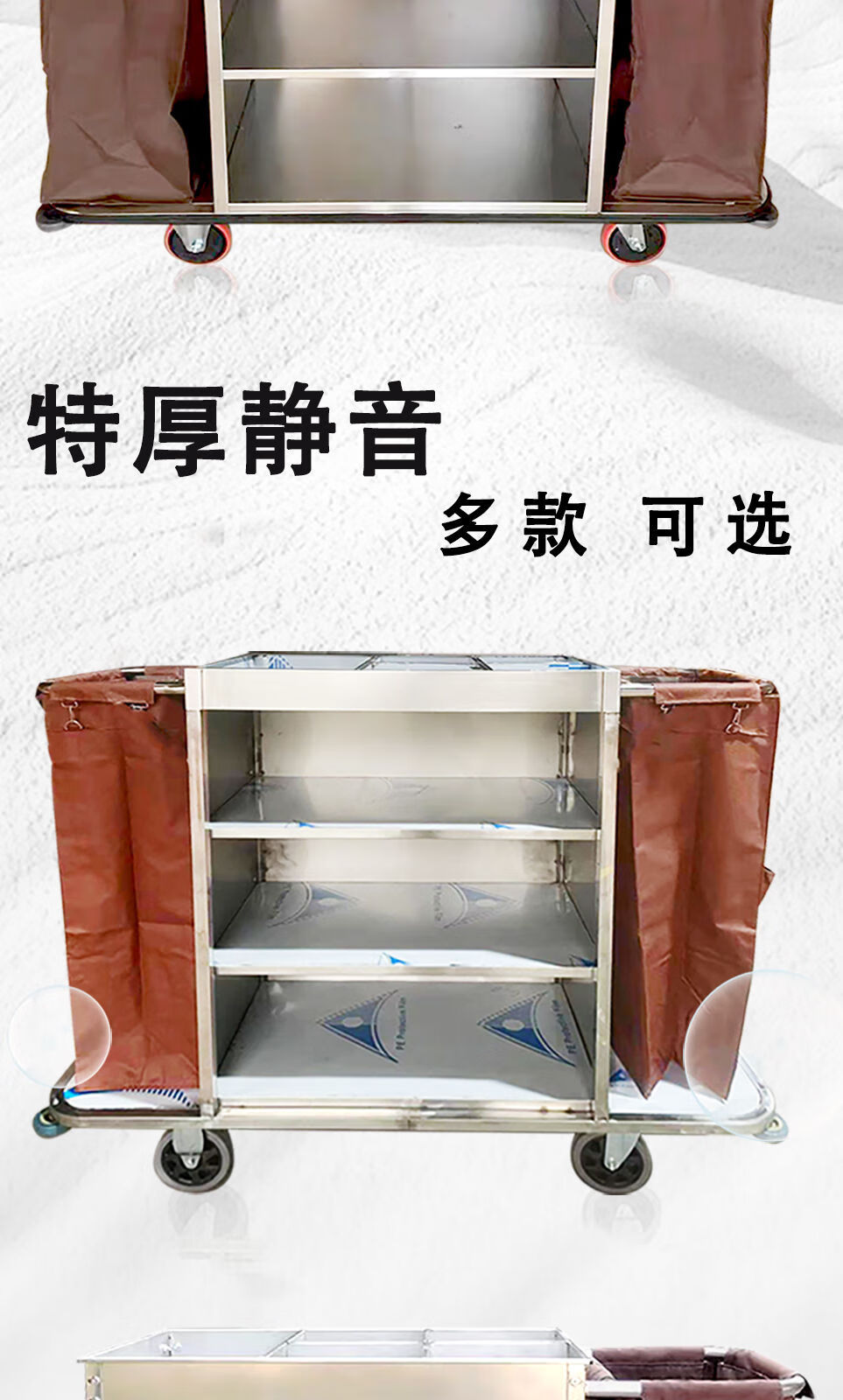 Huili's stainless steel linen cart, special work model for guest rooms, hotel cleaning and housekeeping service, cleaning hand push, disassembly and thickening bilateral 6-inch wheels-regular model
