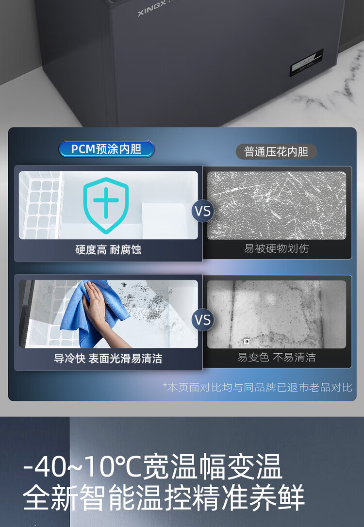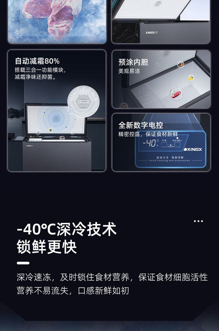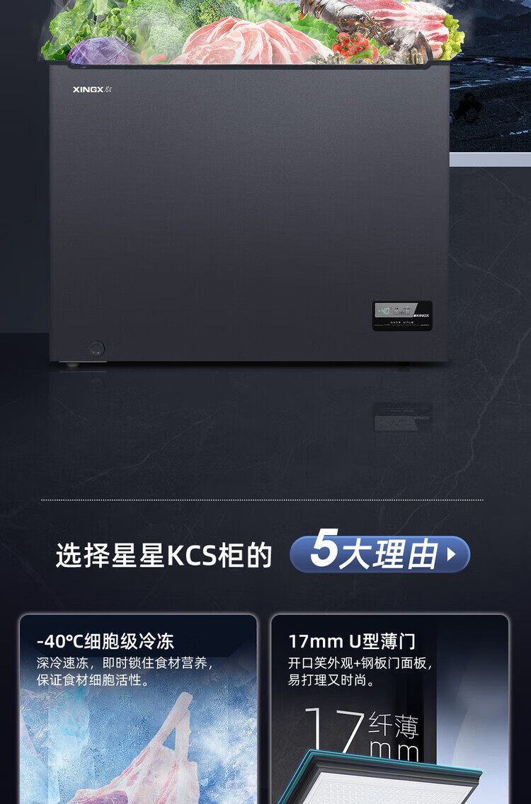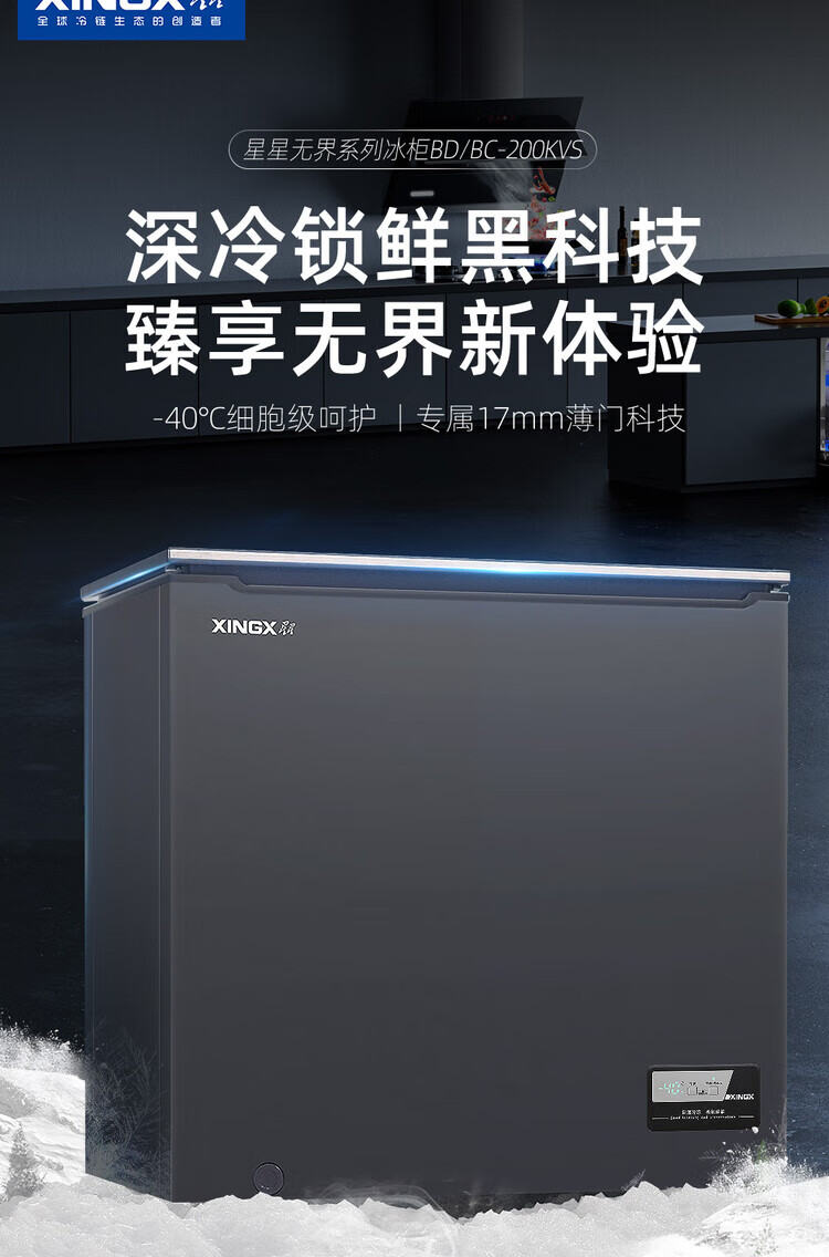 Xingx (XINGX) trade-in freezer 145/200L/245L/BD/BC-300KCS single temperature fully refrigerated fully frozen conversion frost reduction minus 40 deep freezing freezer 145KCS minus 40 freezing electronic temperature control automatic frost reduction pre-coated liner