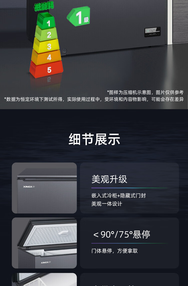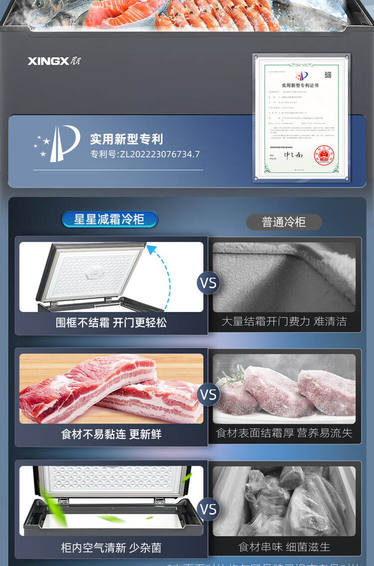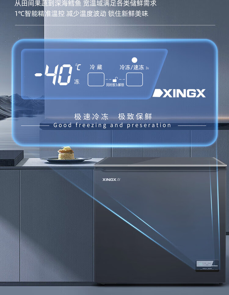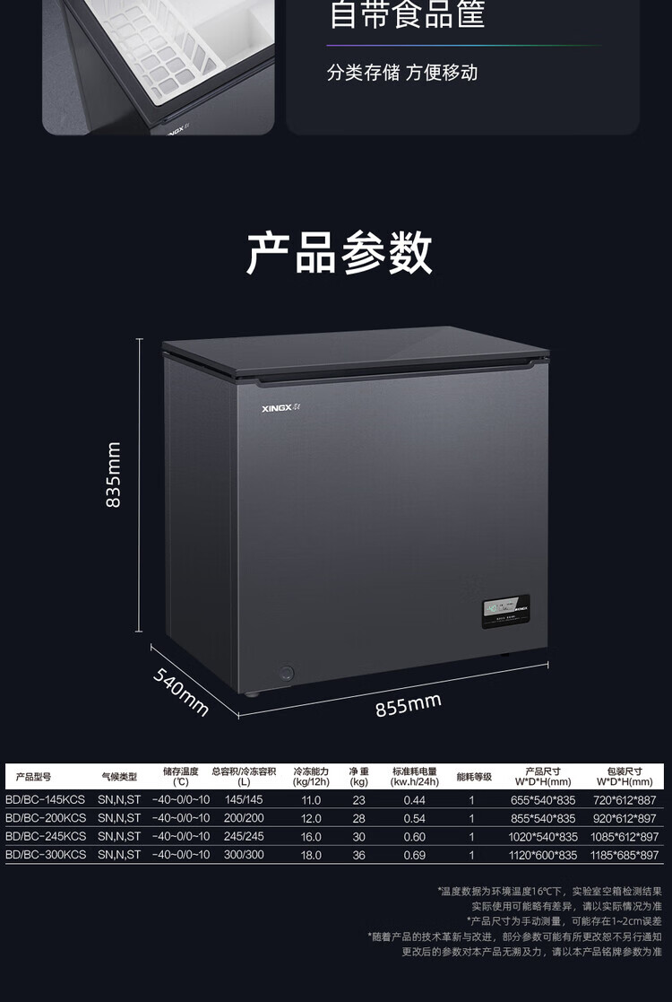 Xingx (XINGX) trade-in freezer 145/200L/245L/BD/BC-300KCS single temperature fully refrigerated fully frozen conversion frost reduction minus 40 deep freezing freezer 145KCS minus 40 freezing electronic temperature control automatic frost reduction pre-coated liner