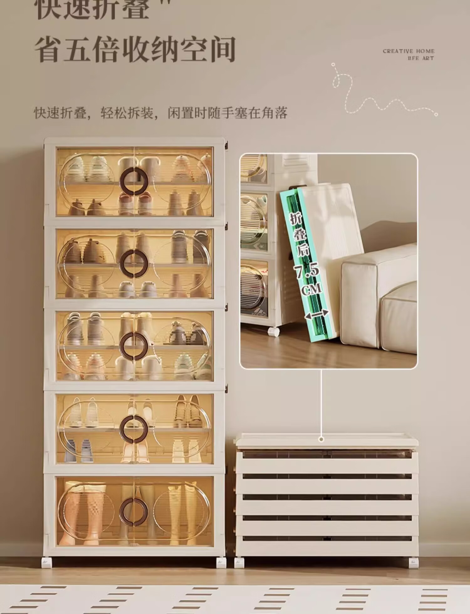 Bonnie Meijia installation-free ant simple shoe cabinet foldable boot shoe box for home dormitory transparent dust-proof shoe rack 50cm wide - 6 layers, about 12 pairs of shoes, buy with confidence (free replacement if damaged)