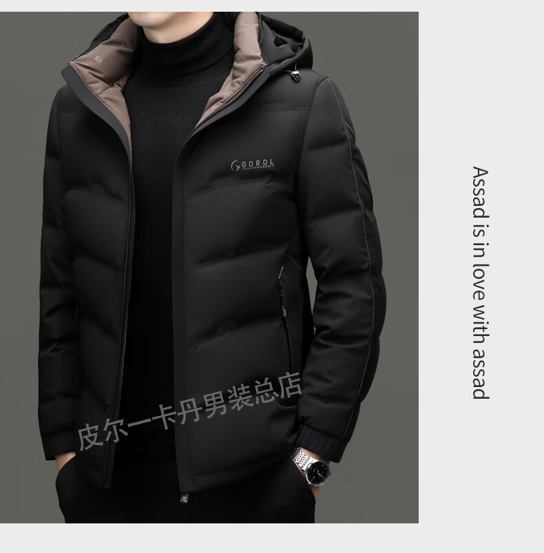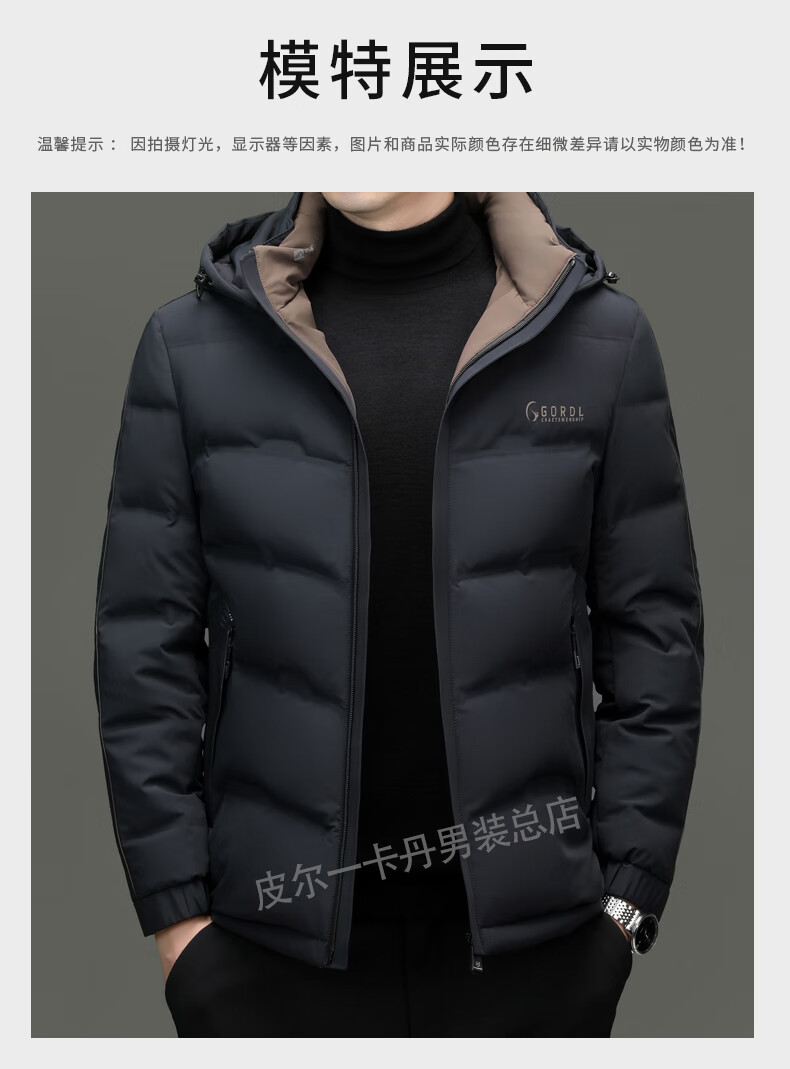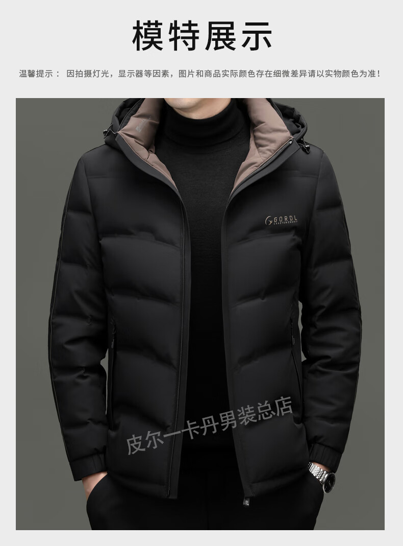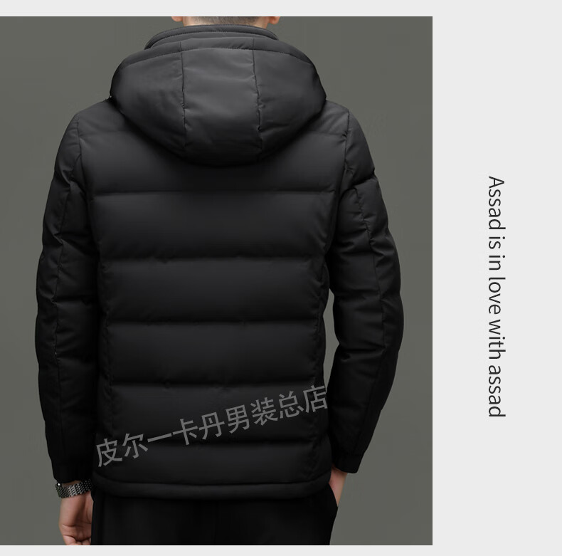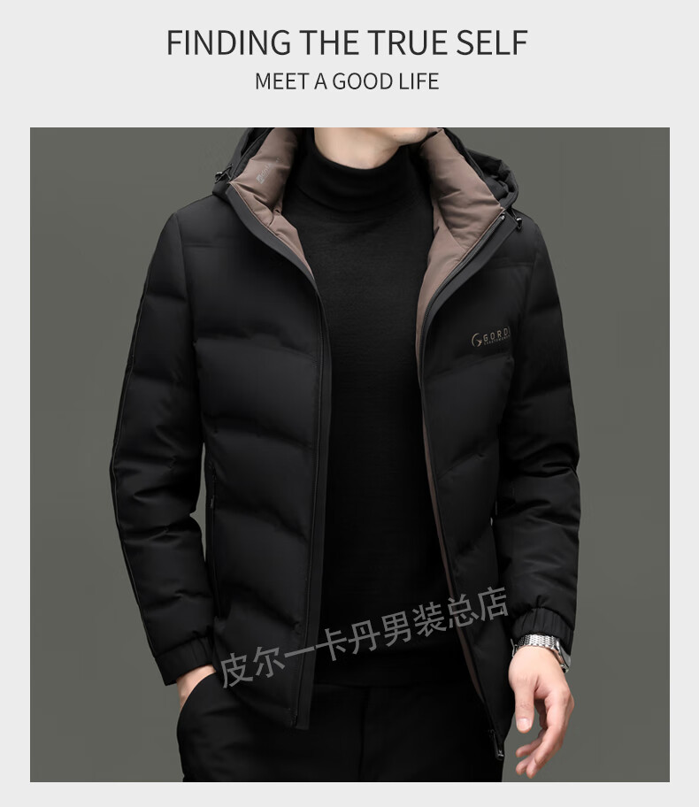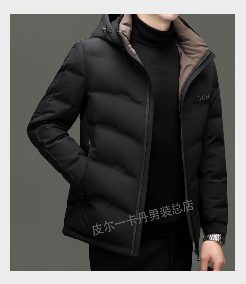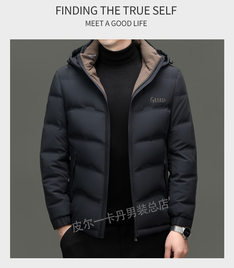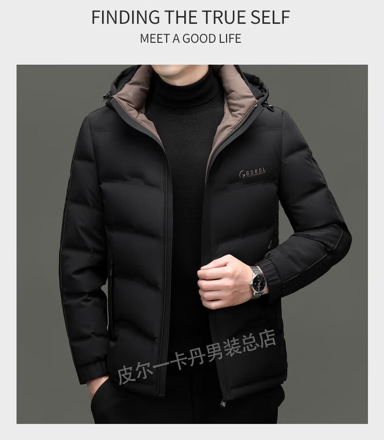 Pierre Cardin high-end short goose down jacket for men 2025 winter new cold-proof thickened cold-proof clothing casual men's jacket black-90% white goose down removable hood L 175 (120-135 catties)