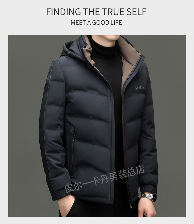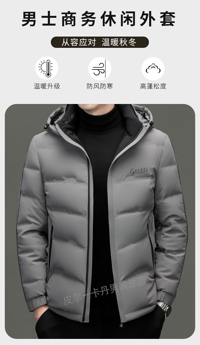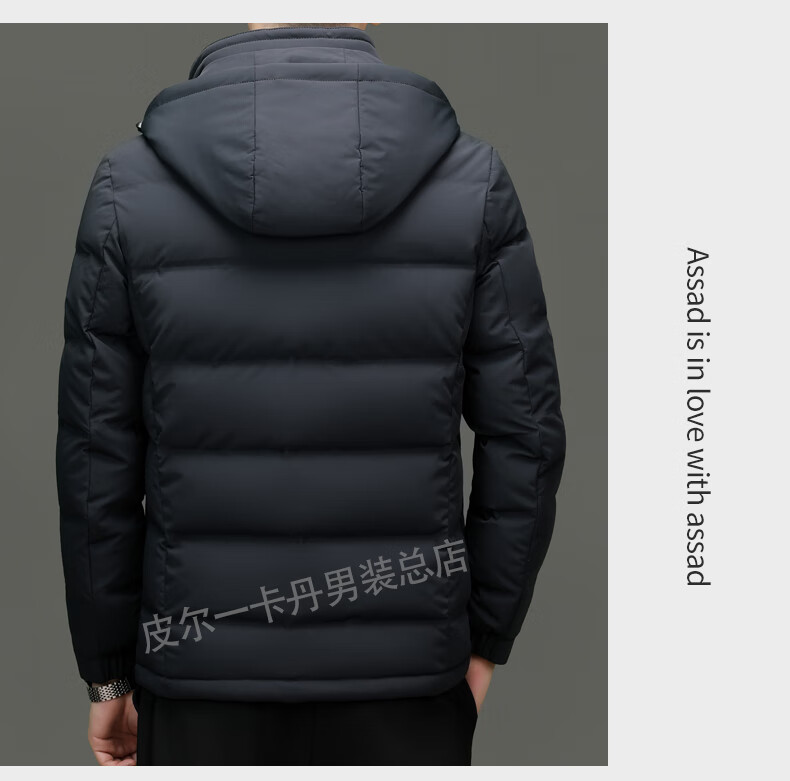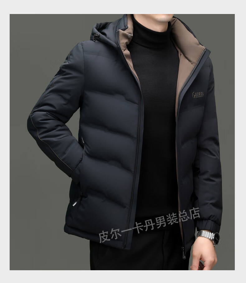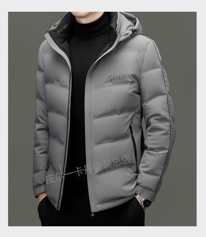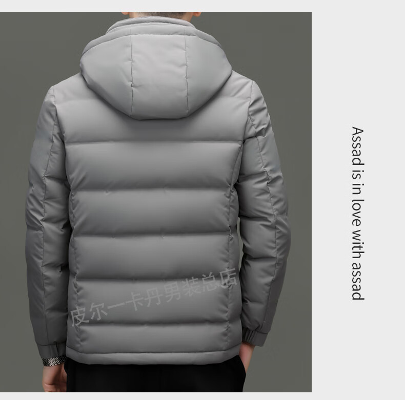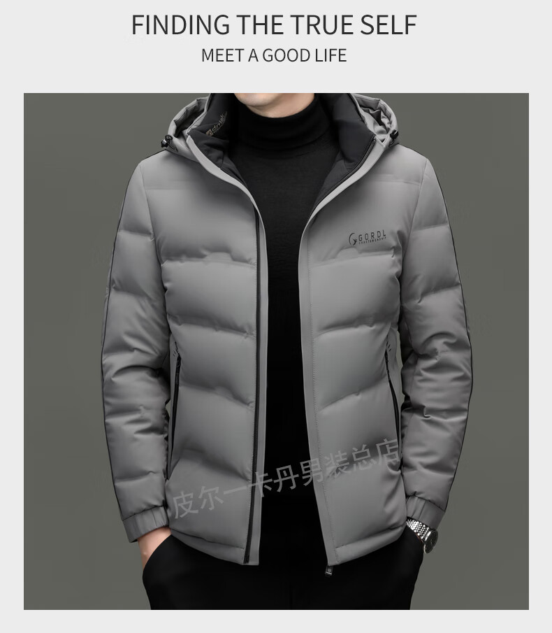 Pierre Cardin high-end short goose down jacket for men 2025 winter new cold-proof thickened cold-proof clothing casual men's jacket black-90% white goose down removable hood L 175 (120-135 catties)