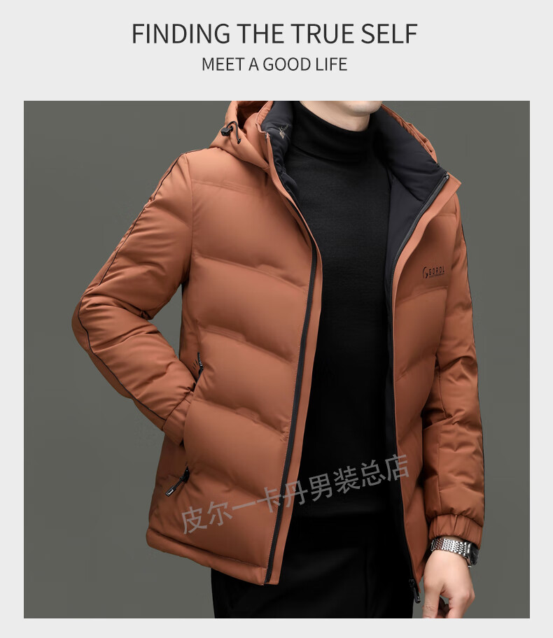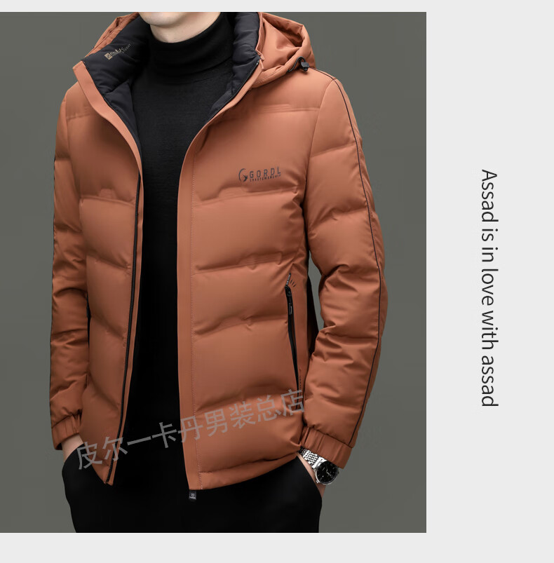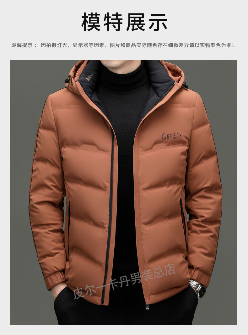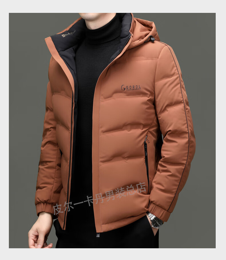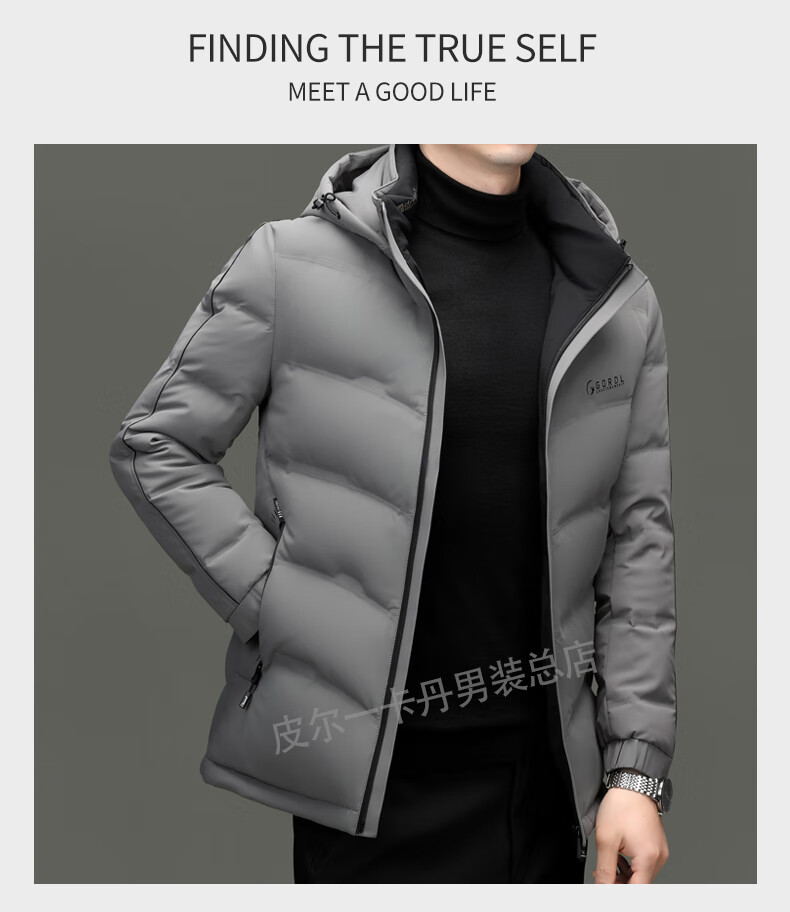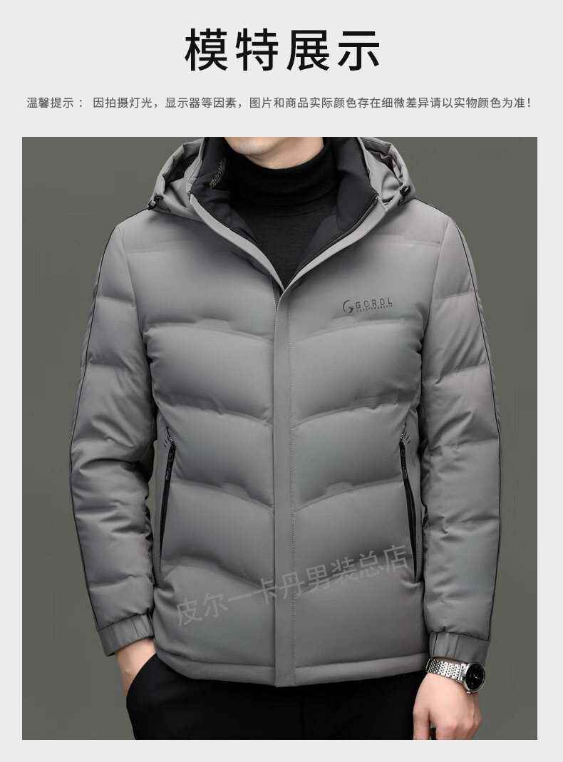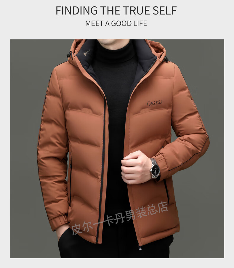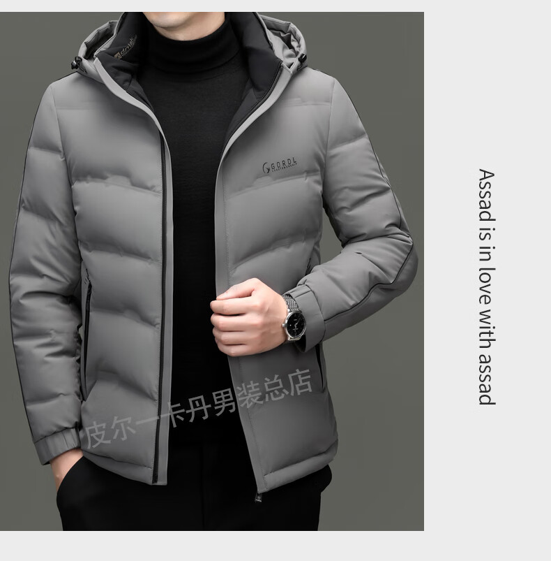 Pierre Cardin high-end short goose down jacket for men 2025 winter new cold-proof thickened cold-proof clothing casual men's jacket black-90% white goose down removable hood L 175 (120-135 catties)