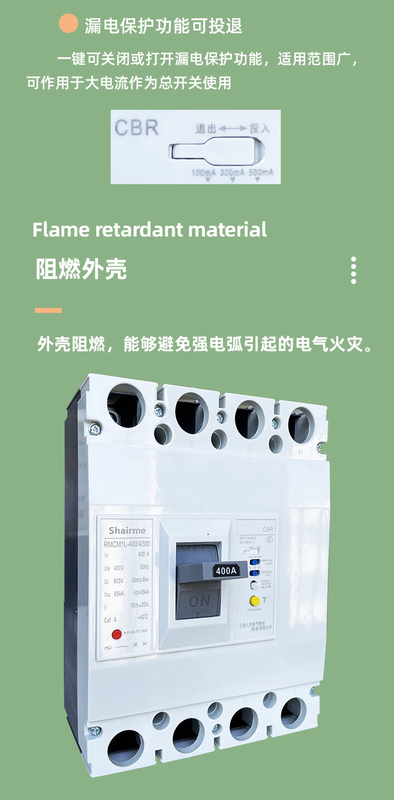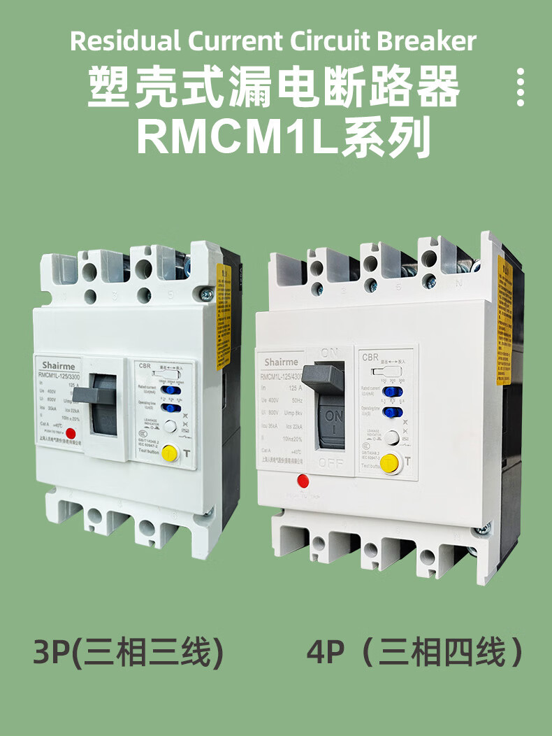Shanghai People's CM1L leakage circuit breaker three-phase four-wire plastic case leakage protection switch 125A 250A 630A 160A 4p
