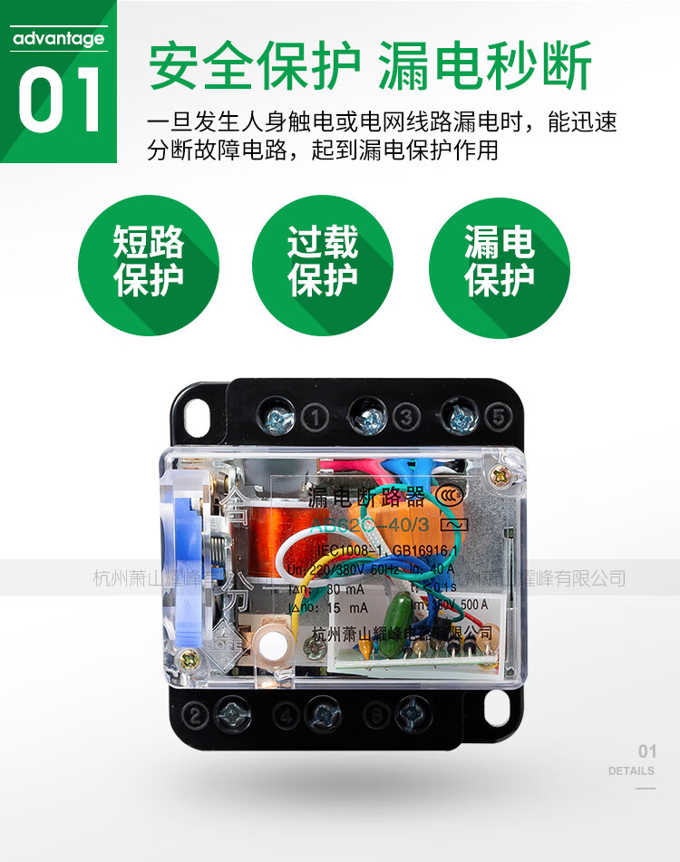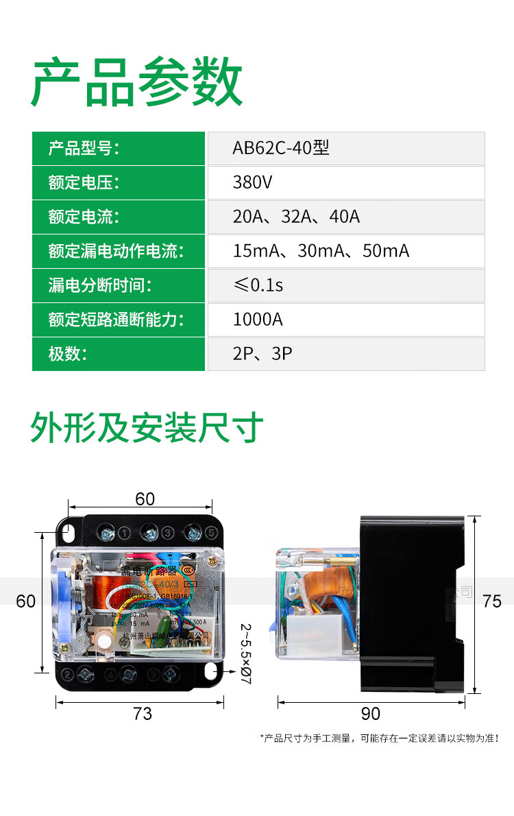 Leakage circuit breaker AB62C 40A 63A Xiaoshan protector 2P 3P 4P three-phase four-wire switch AC380V transparent 3P x 63A