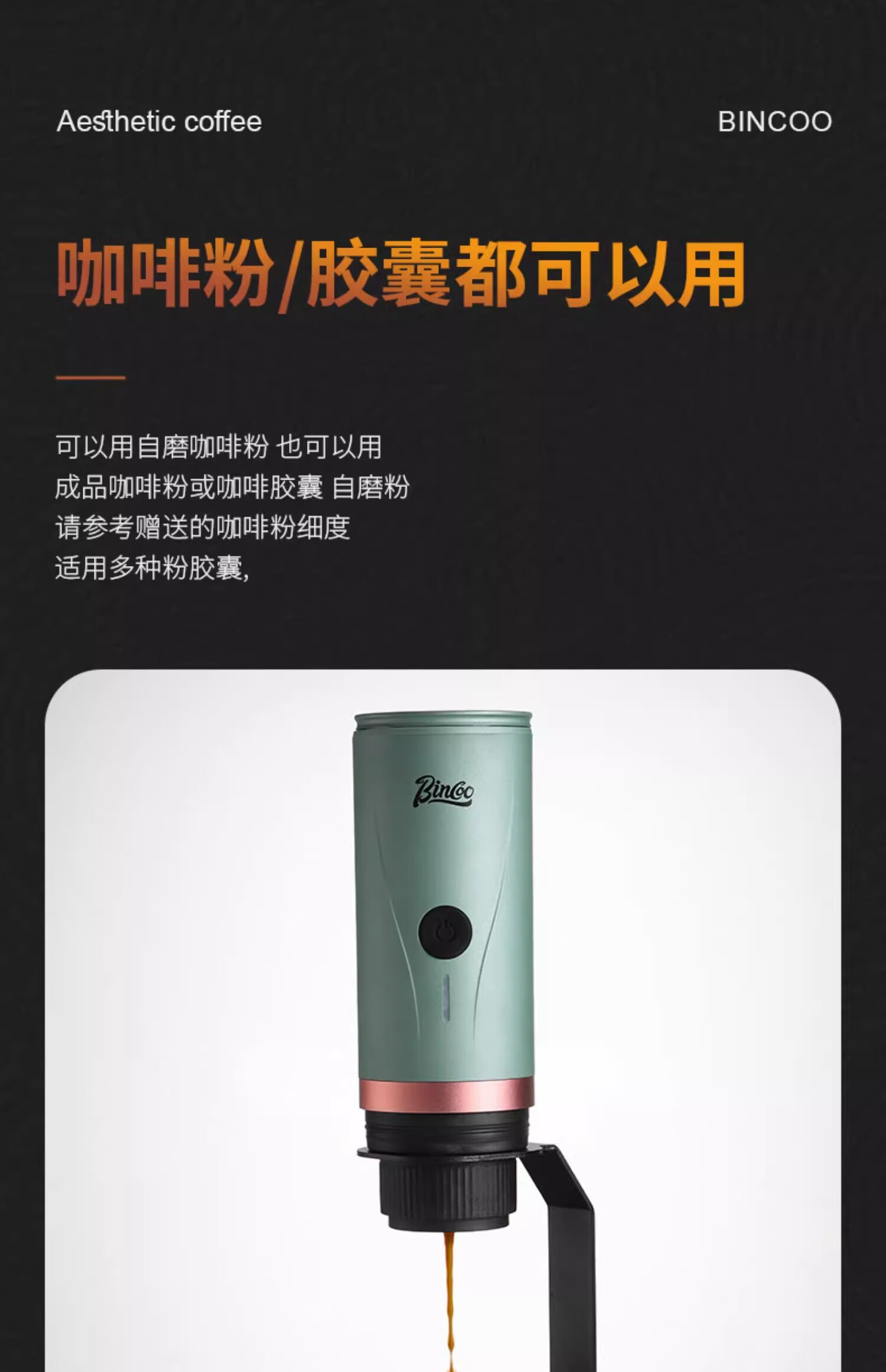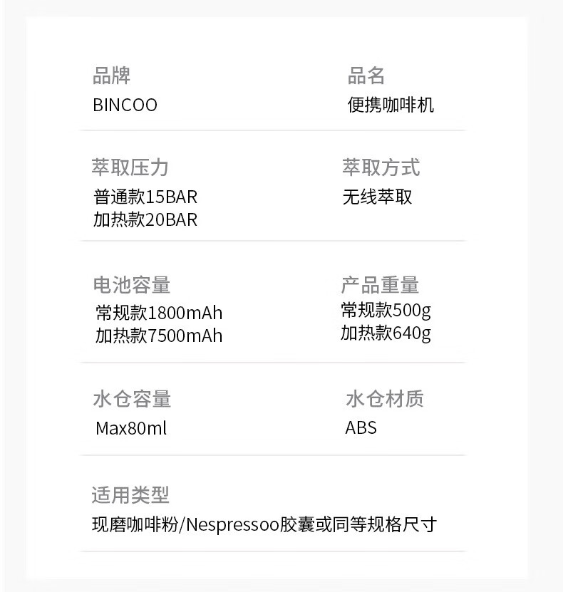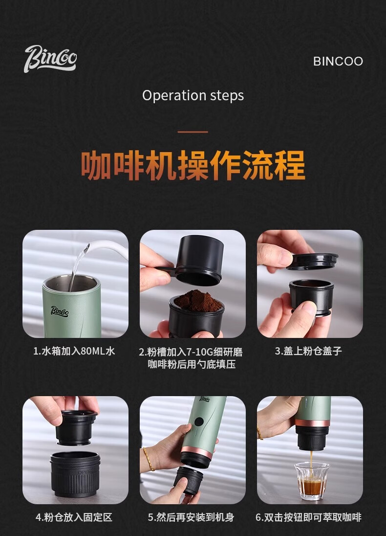 Bincoo Electric Portable Coffee Machine Small Espresso Espresso Bean Powder Capsule Home Car Outdoor Travel Iceland White Wireless Model | Capsule Coffee Powder Dual Use