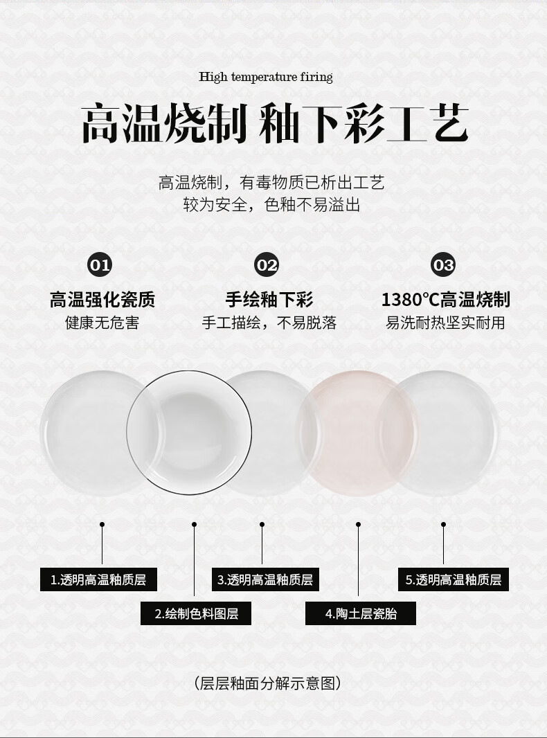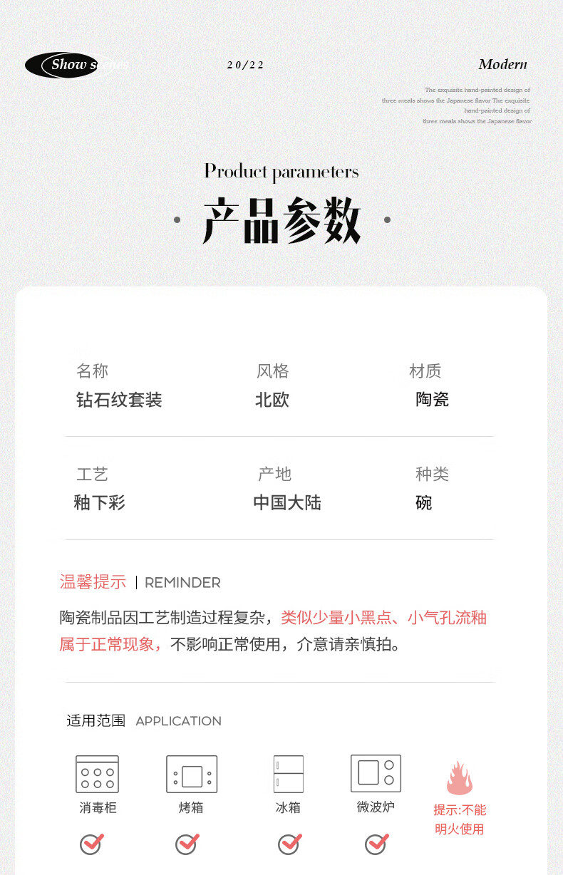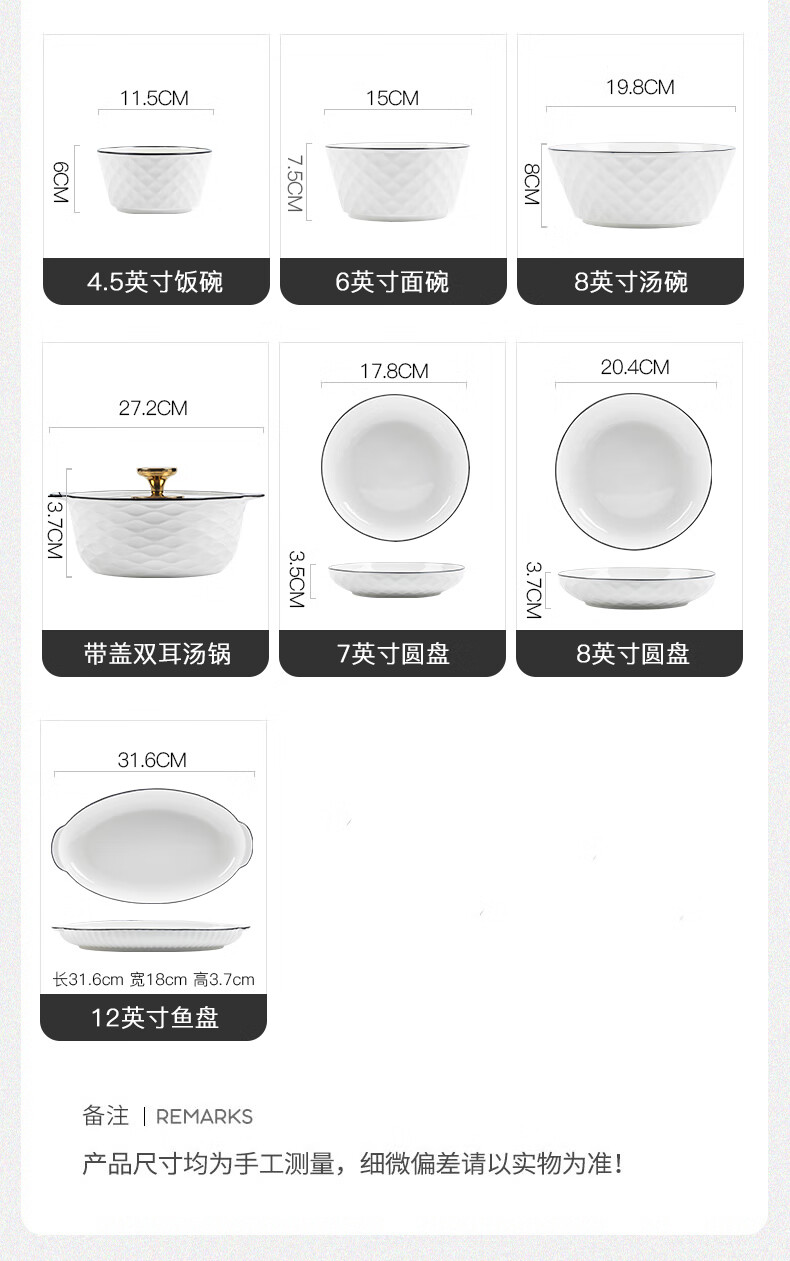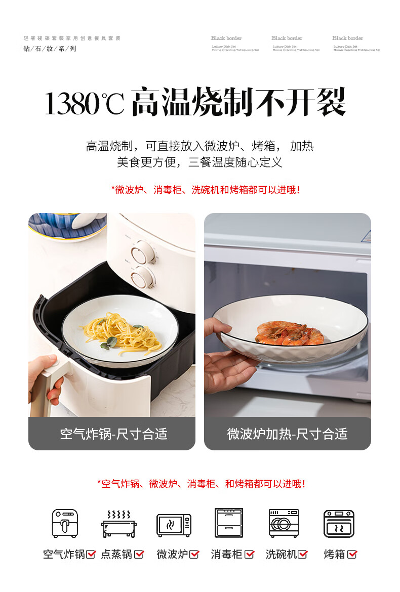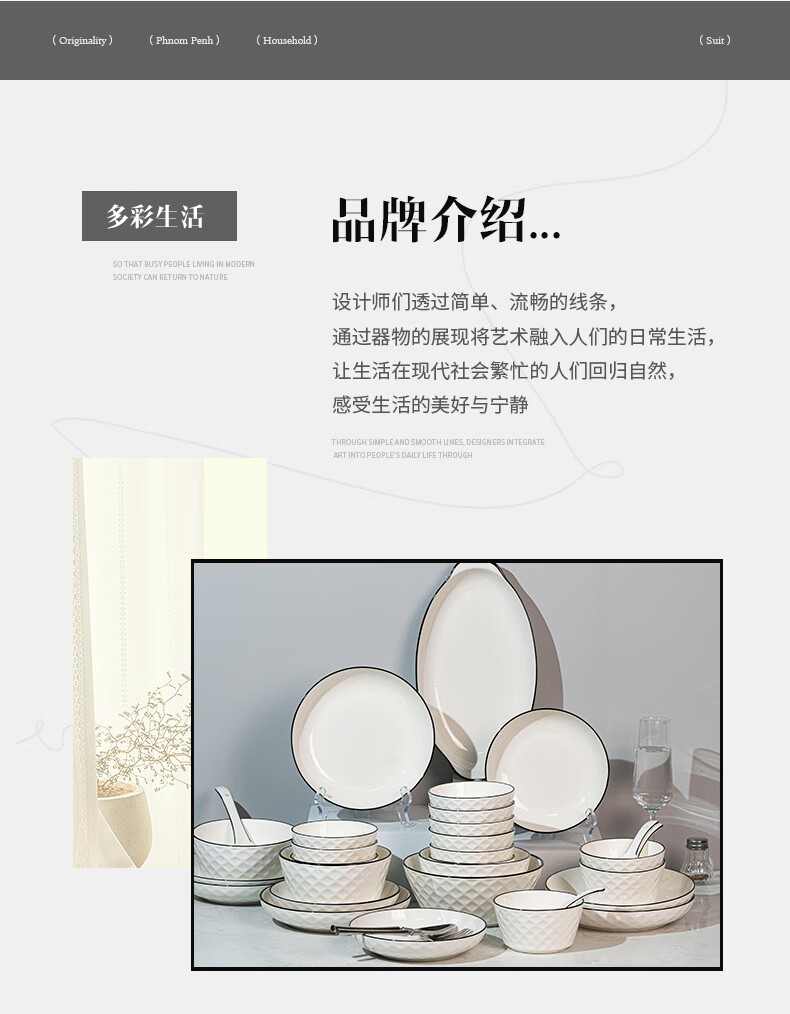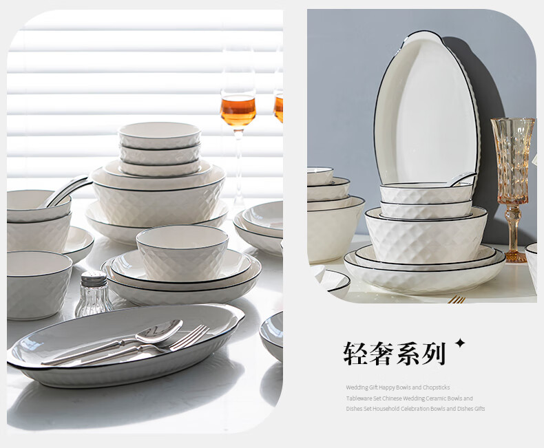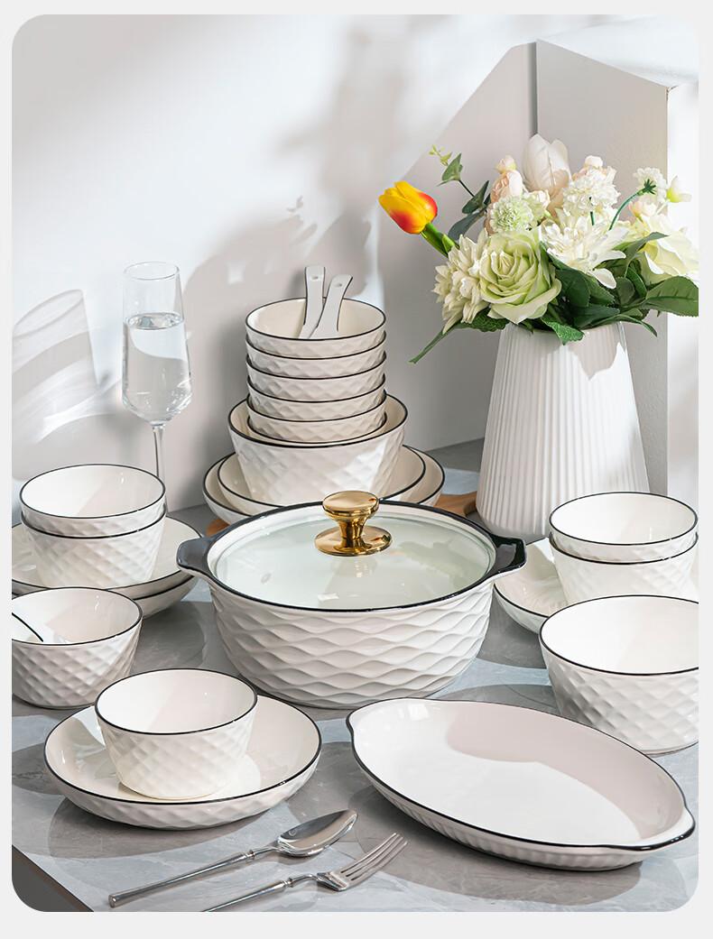 Guanpu bowl and dish set household Jingdezhen bowls high-value ceramic bowls and plates bowls and chopsticks plate set housewarming tableware set diamond pattern 12 people food (soup pot configuration) 63-piece set