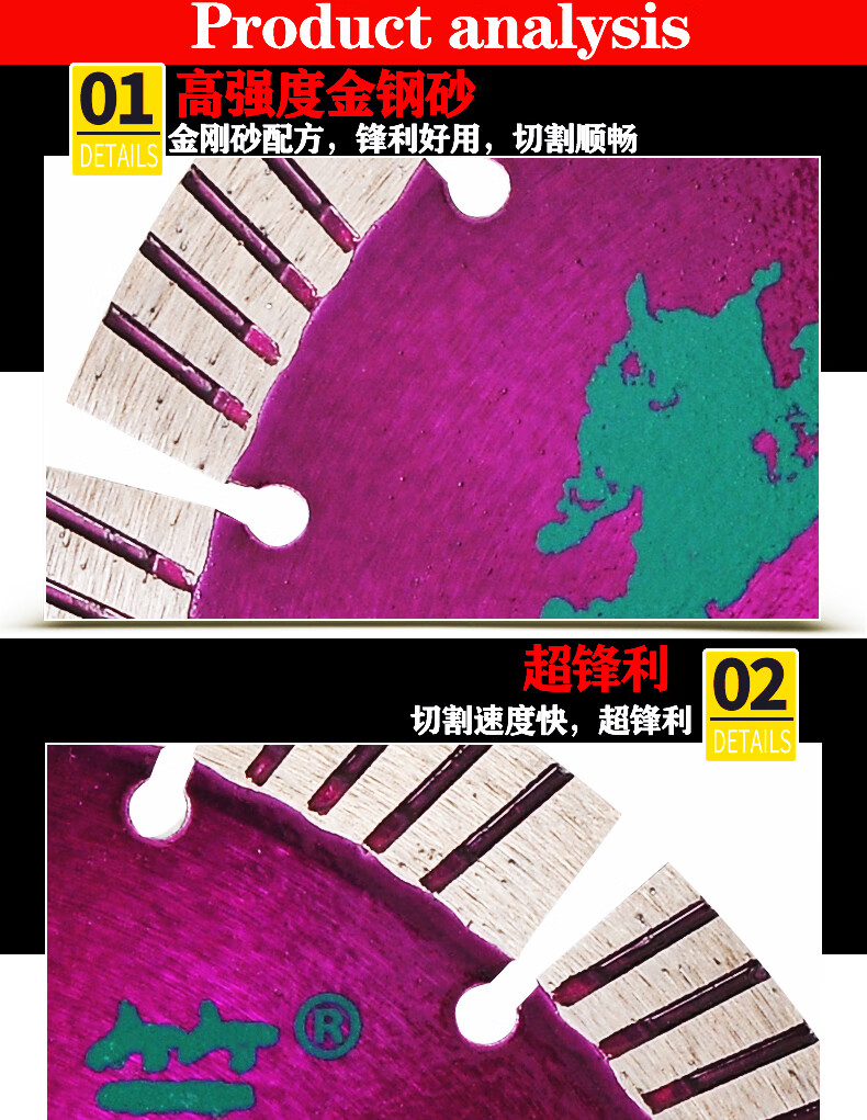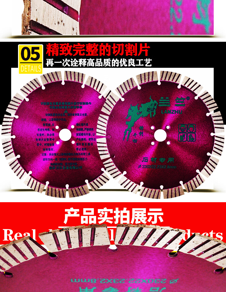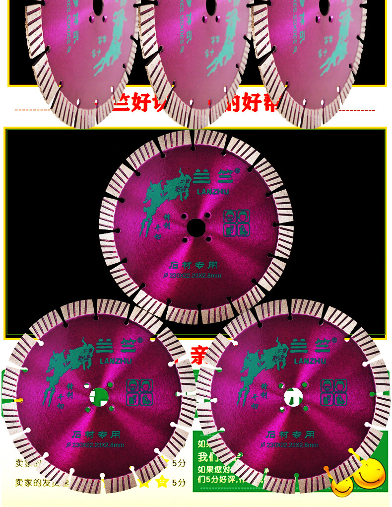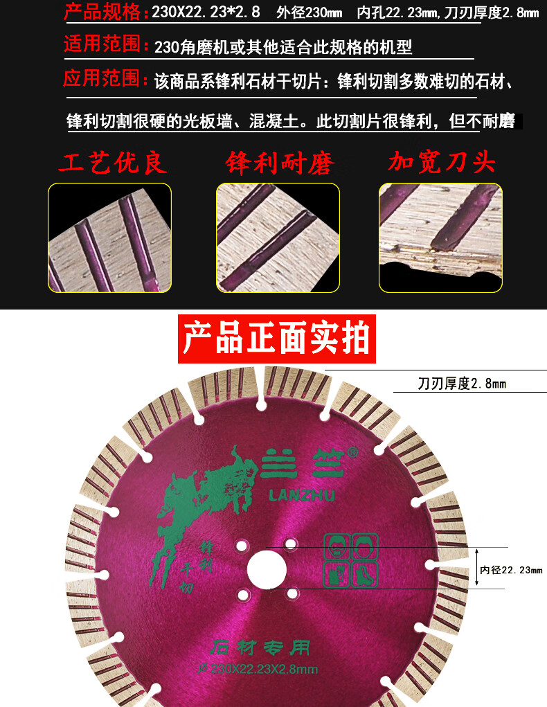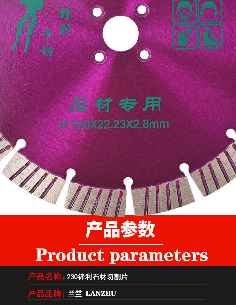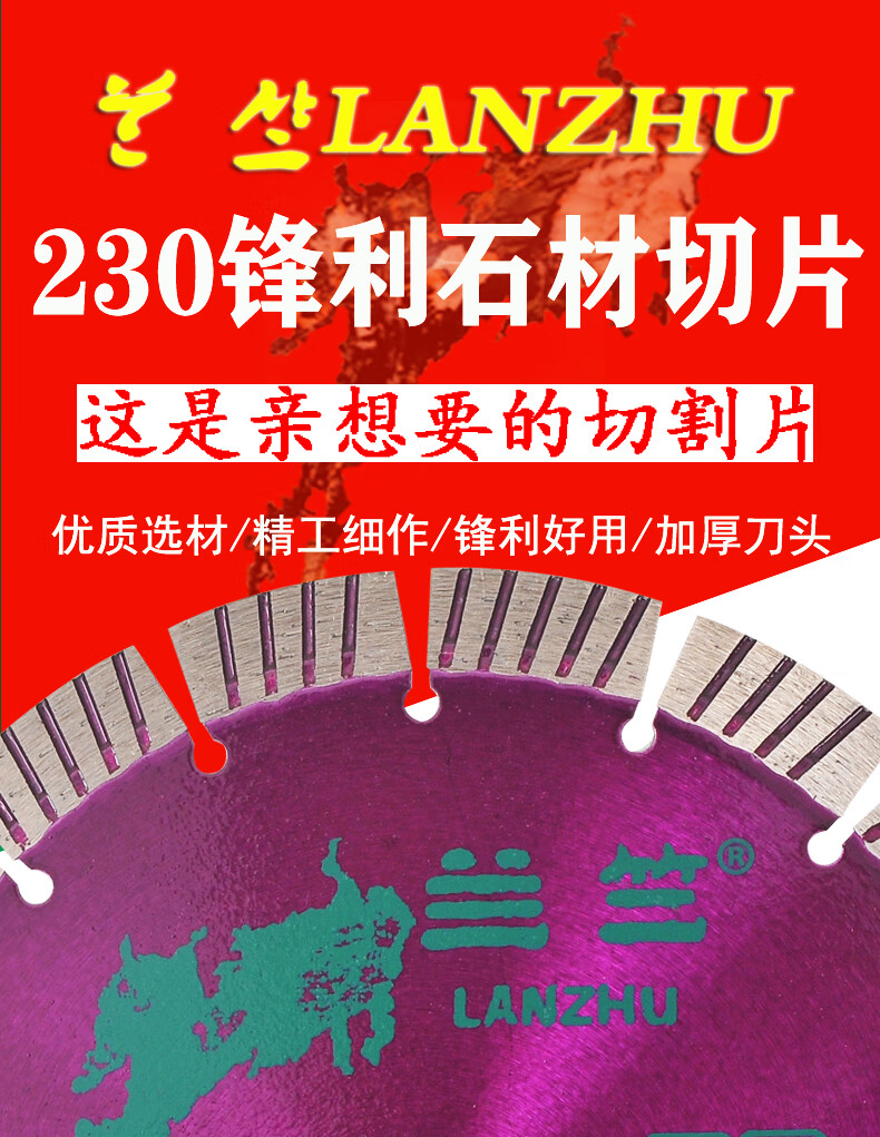 Lanzhu 230 sharp stone cutting chip smooth wall granite concrete wall groove marble saw blade marble angle grinder Lanzhu 230 sharp stone cutting hole 25.4 purple 1 piece