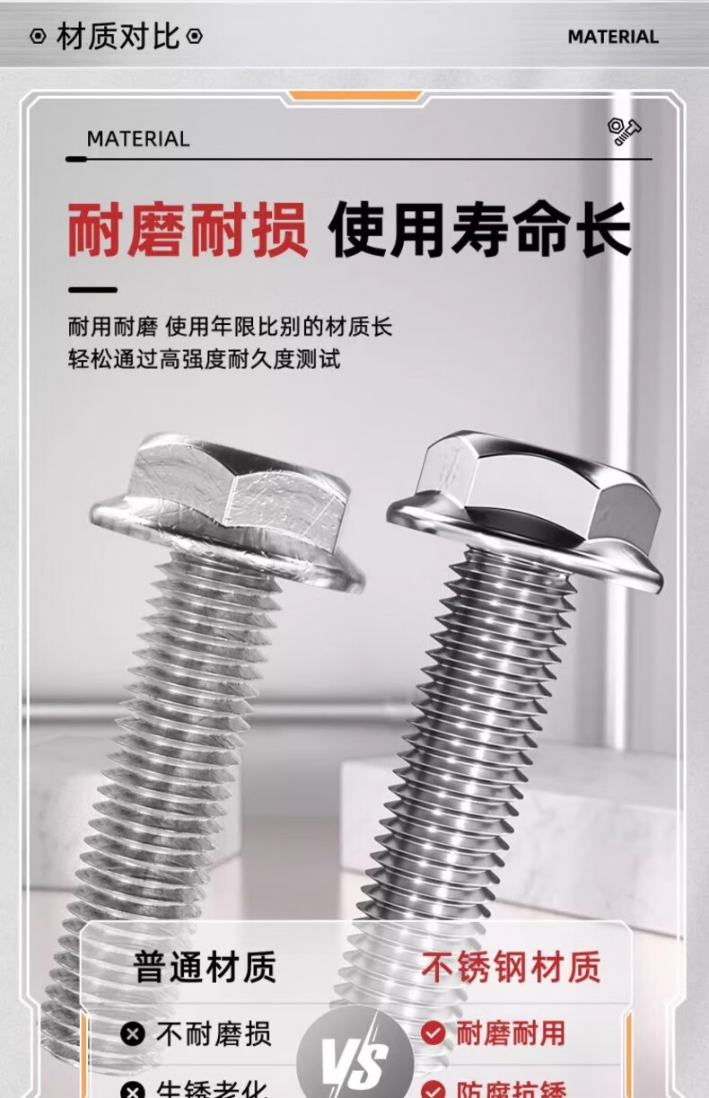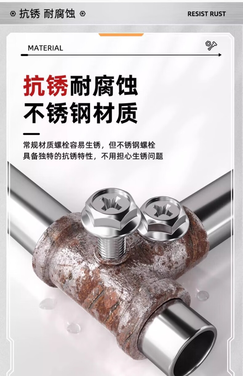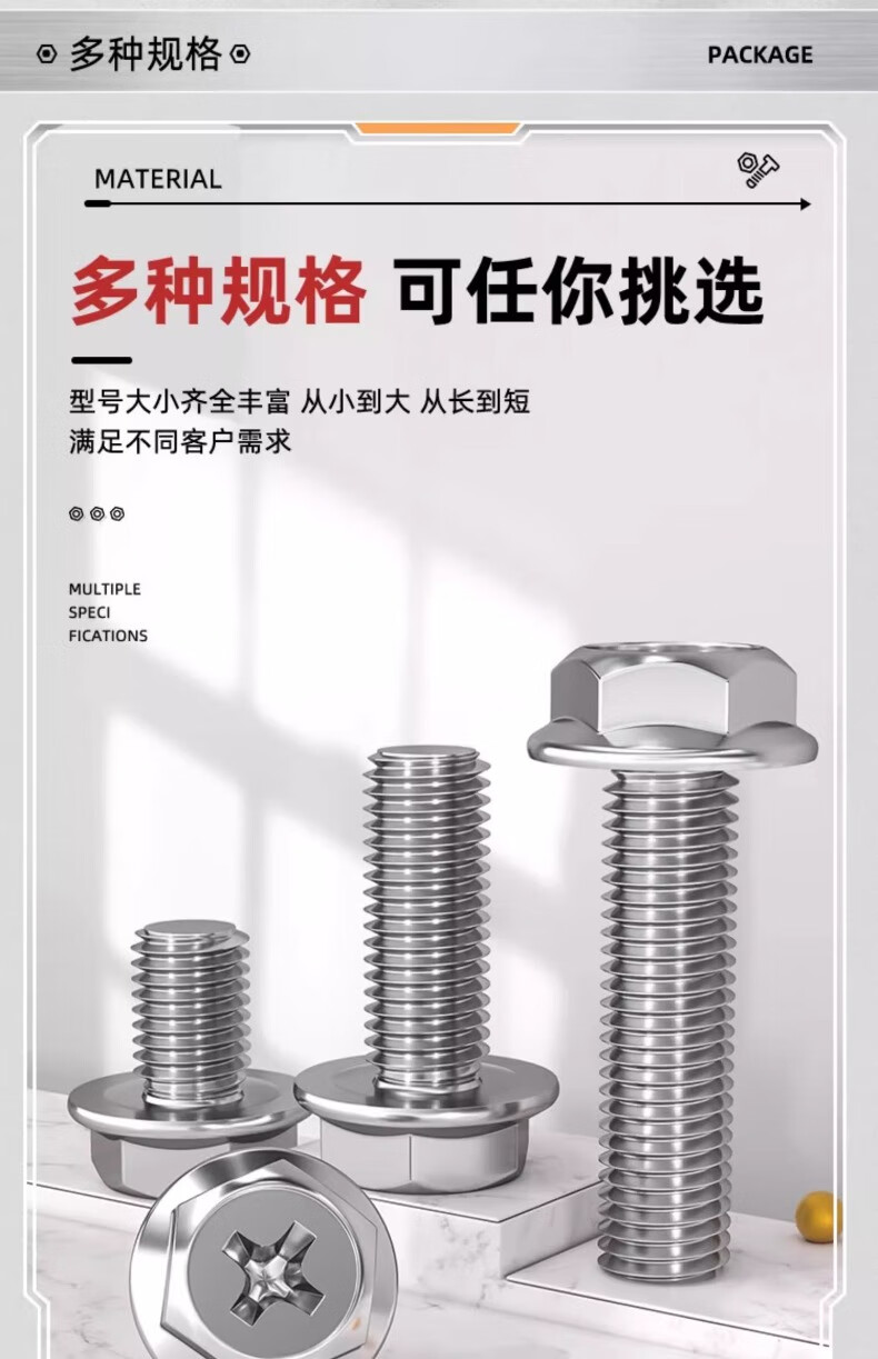 Fengji 201 stainless steel cross flange surface screw external hexagonal bolt flat without pad tooth pattern screw MM4M5M6 M8*16-5 304 with teeth