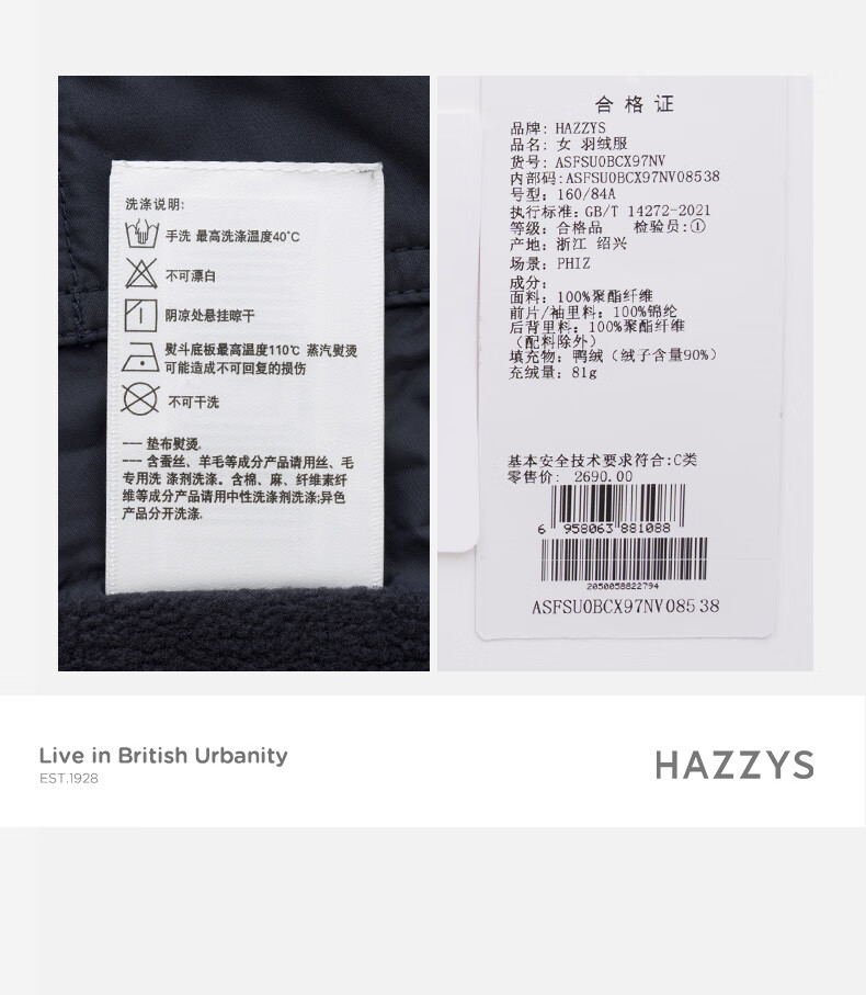 Haggis Haggis Women's Autumn and Winter Women's PHIZ Series Light Down Jacket ASFSU0BCX97 Navy Blue NV M (160/84A 38)