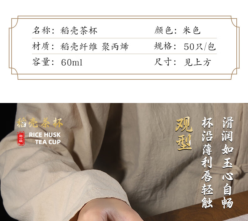 Ci small bowl disposable rice husk cup Kung Fu tea cup with storage cup holder 60ml high-end heat-resistant tea tasting tea reception cup Daoxiang cup 6 pack (300 pieces) with storage cup holder