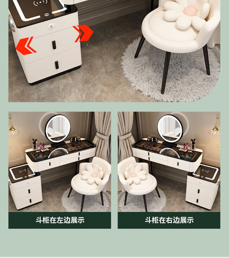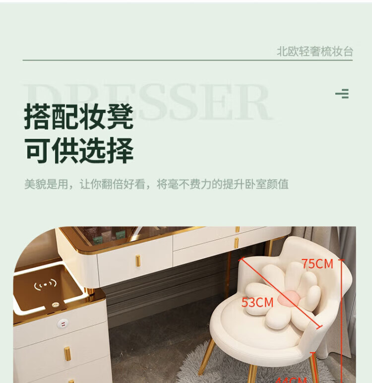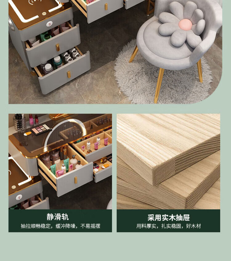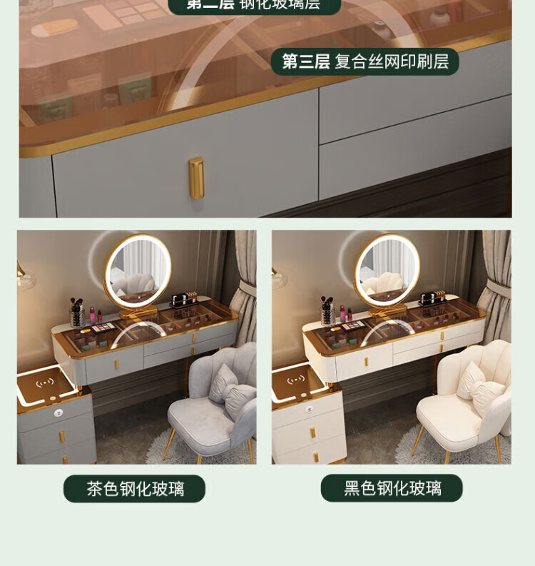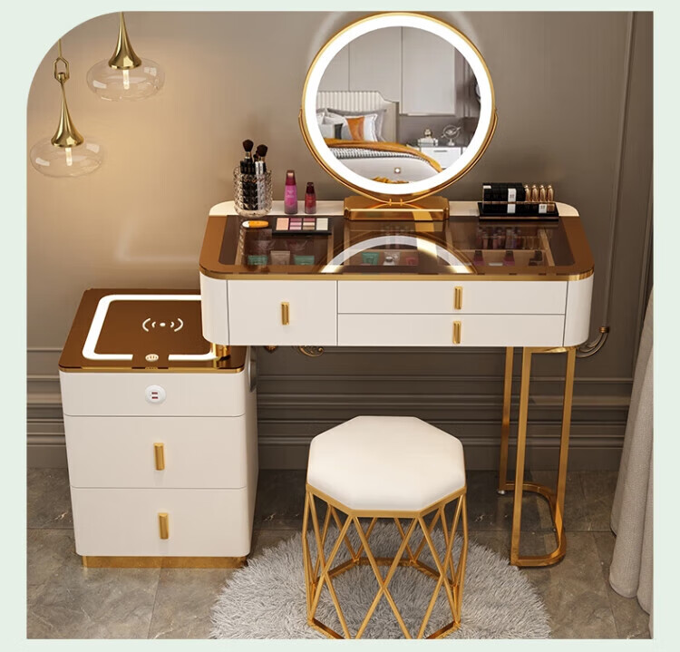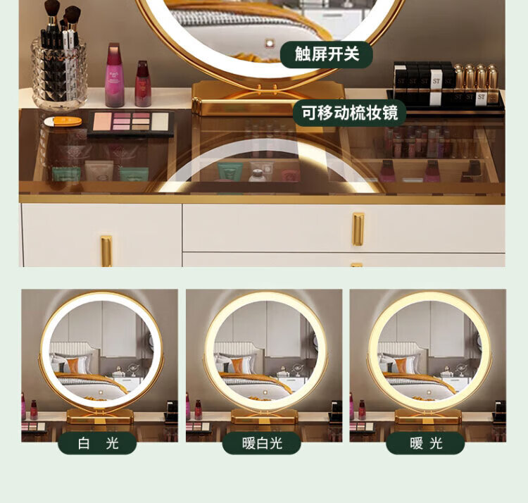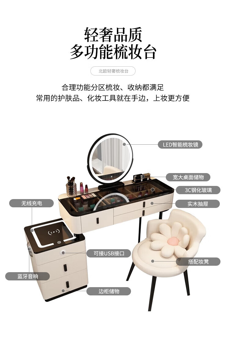 Xunhuai dressing table bedroom master bedroom new mini dressing table storage cabinet integrated modern simple light luxury small apartment gray and black 80cm + smart cabinet + round mirror + small flower chair