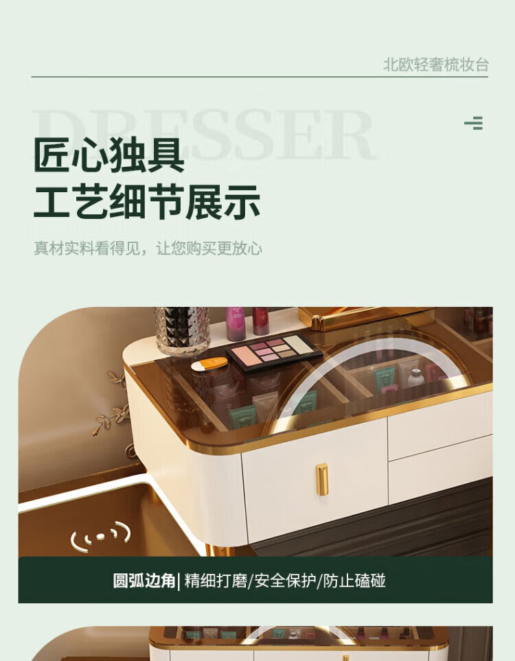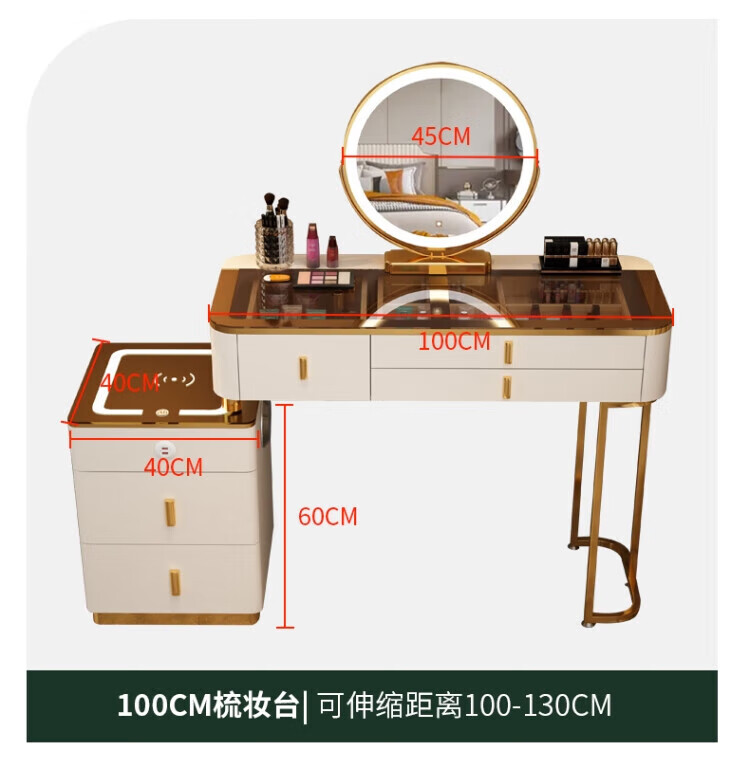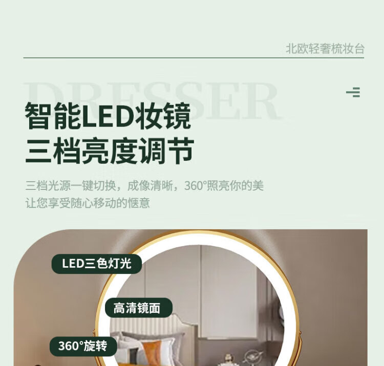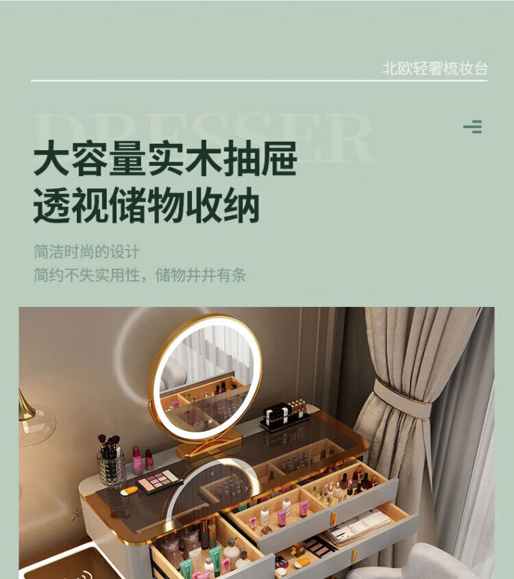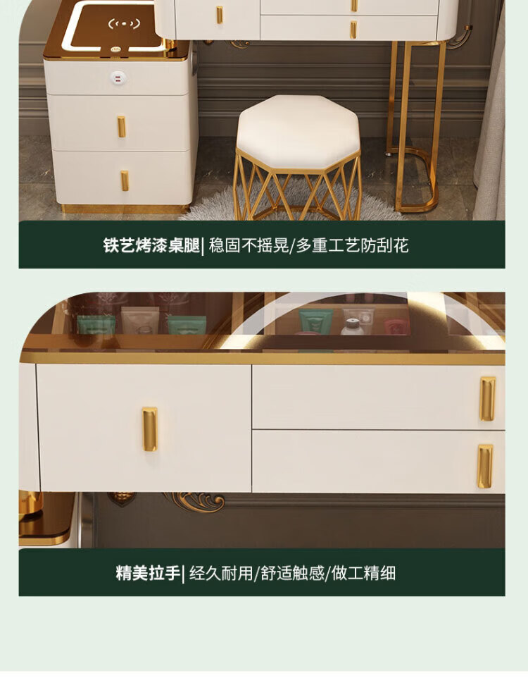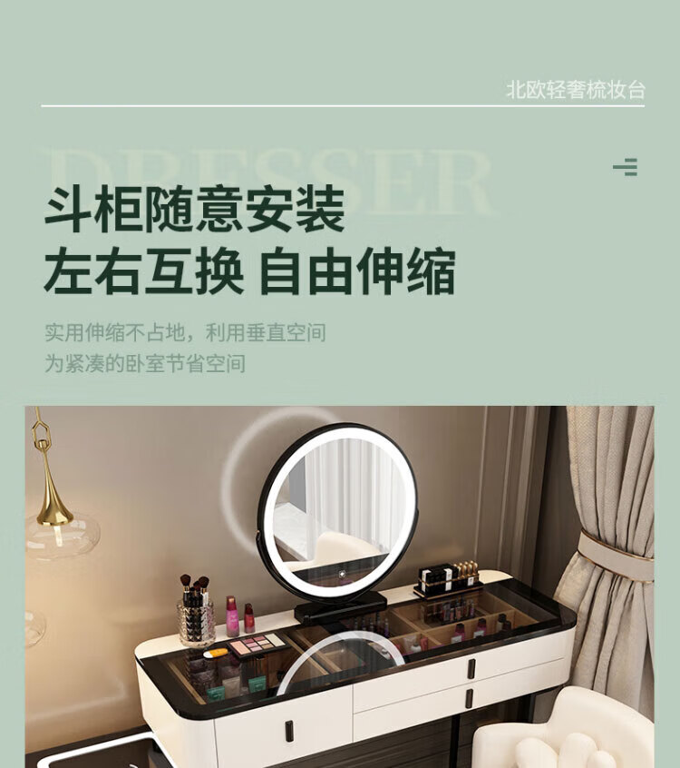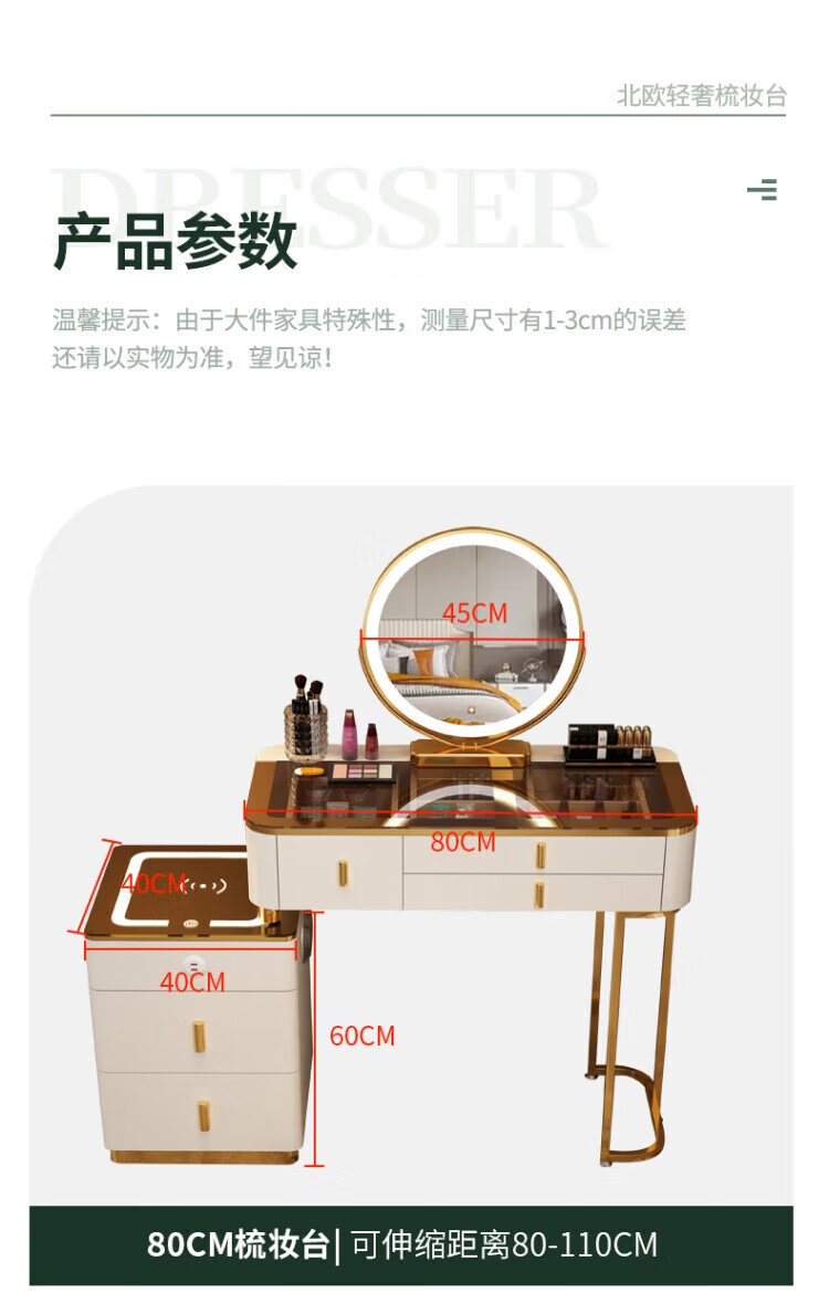 Xunhuai dressing table bedroom master bedroom new mini dressing table storage cabinet integrated modern simple light luxury small apartment gray and black 80cm + smart cabinet + round mirror + small flower chair