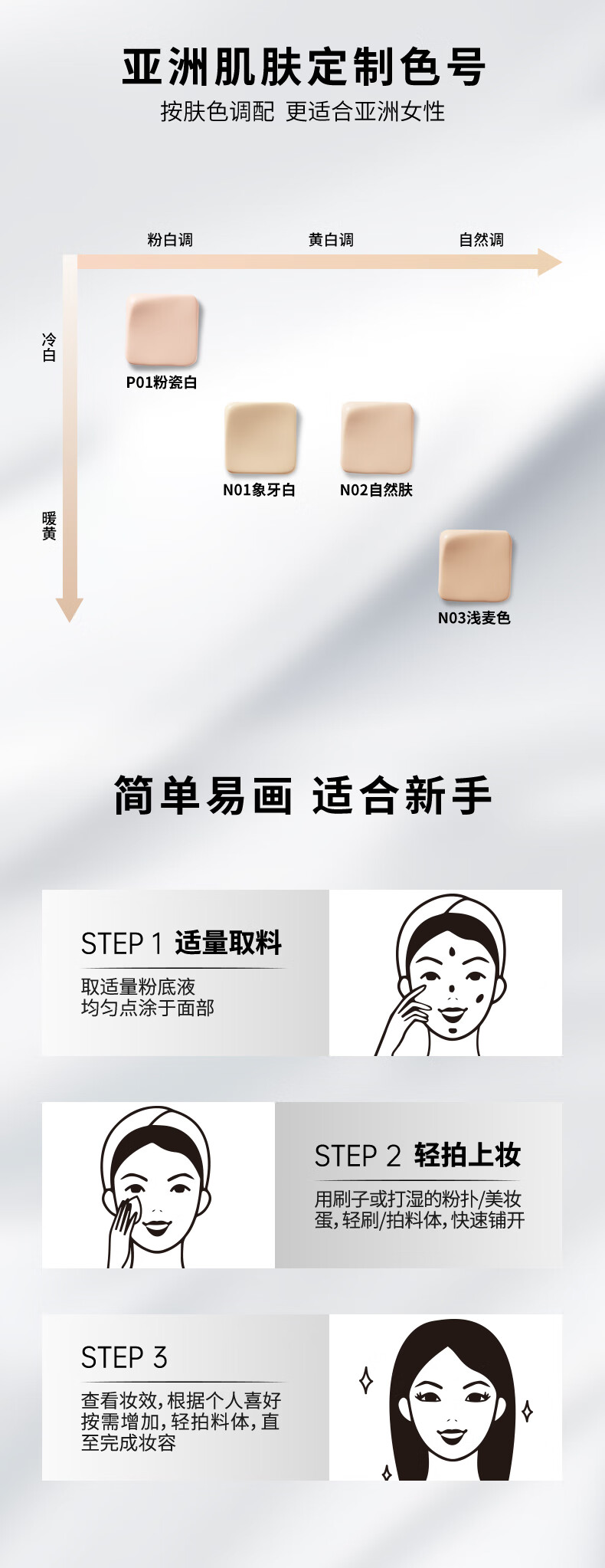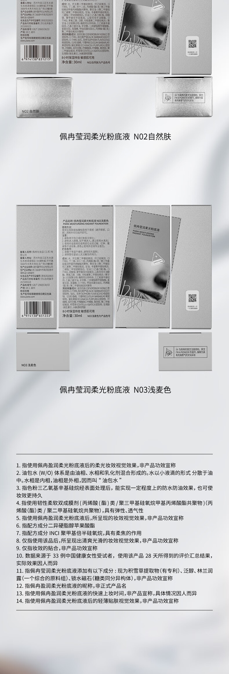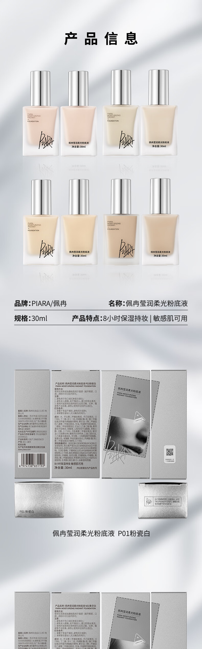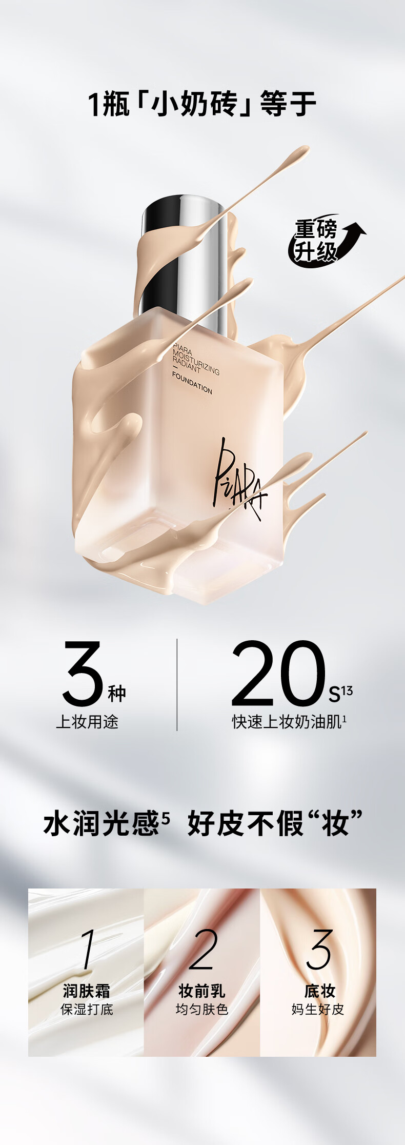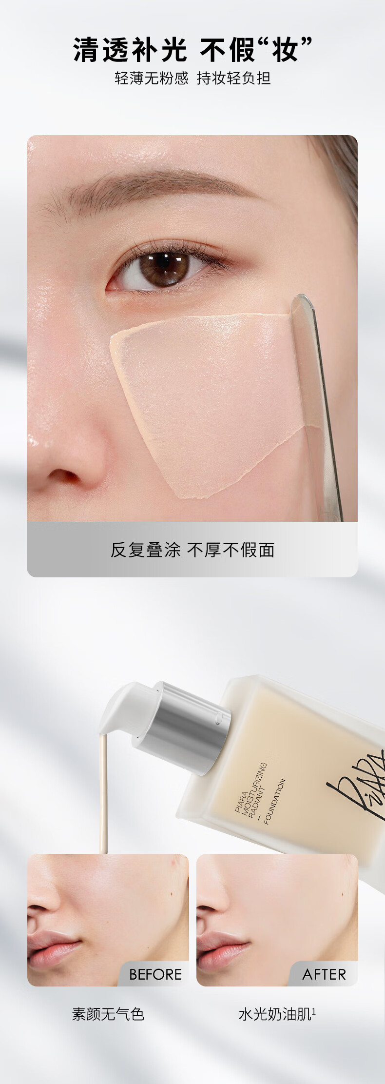PIARA liquid foundation, radiant and soft light foundation, natural fit, not easy to come off, brightening, Valentine's Day gift for girlfriend, liquid foundation four-pack