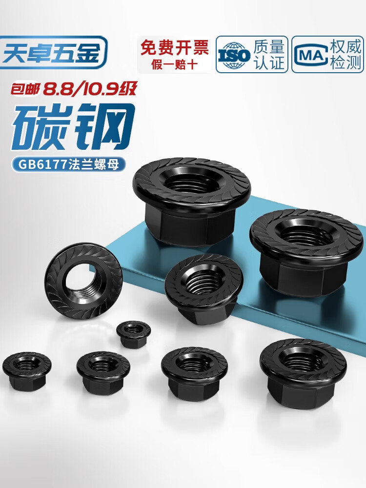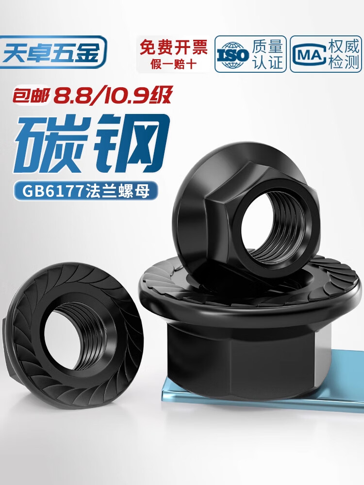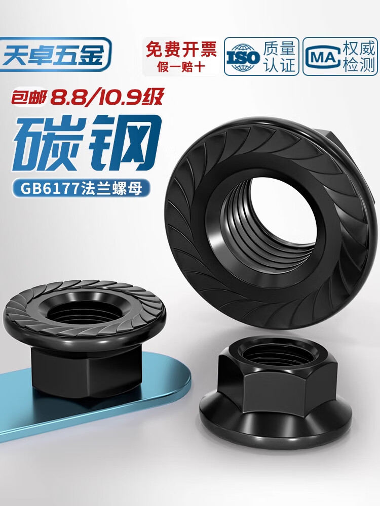 Tianzhuo Hardware National Standard Grade 8.8/Grade 10.9 High-strength flange nut Hexagonal anti-slip screw nut Padded toothed nut M6 50 pieces Grade 10.9