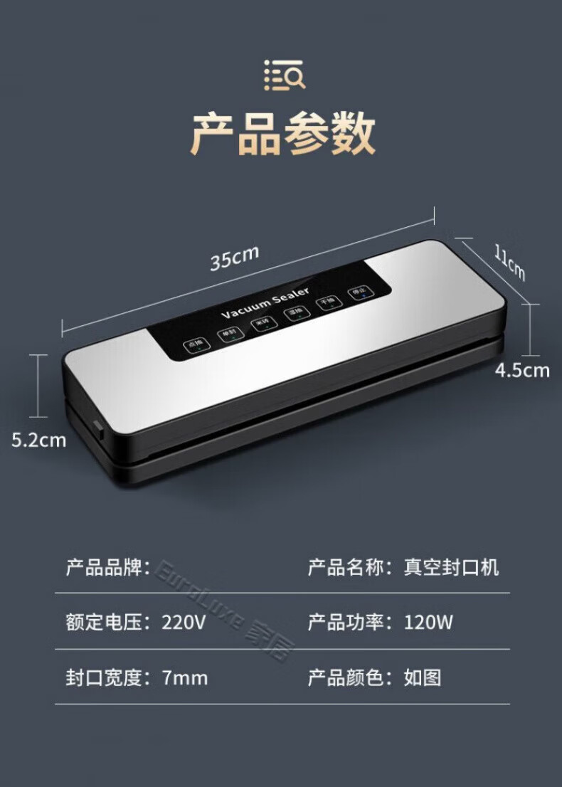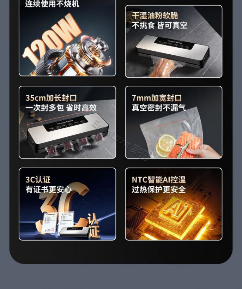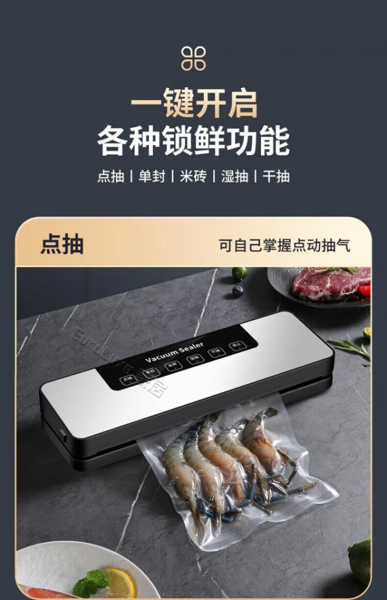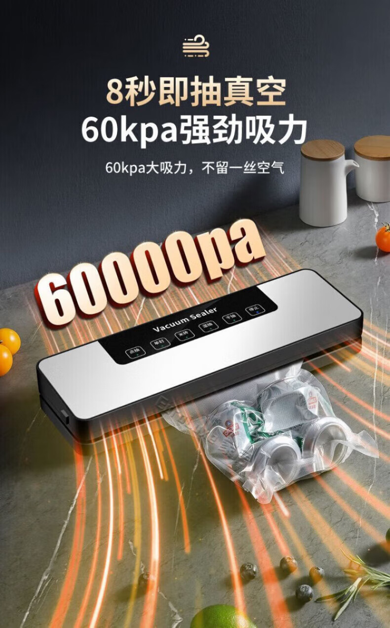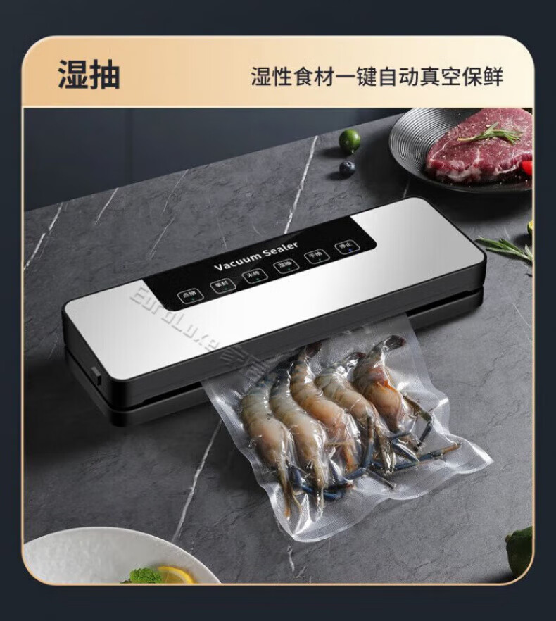 KDISV German vacuum sealing machine household commercial wet and dry fully automatic vacuum packaging machine high-power food antibacterial fresh-keeping machine plastic sealing machine without bagging bacon sausage silver gray - 100 bags