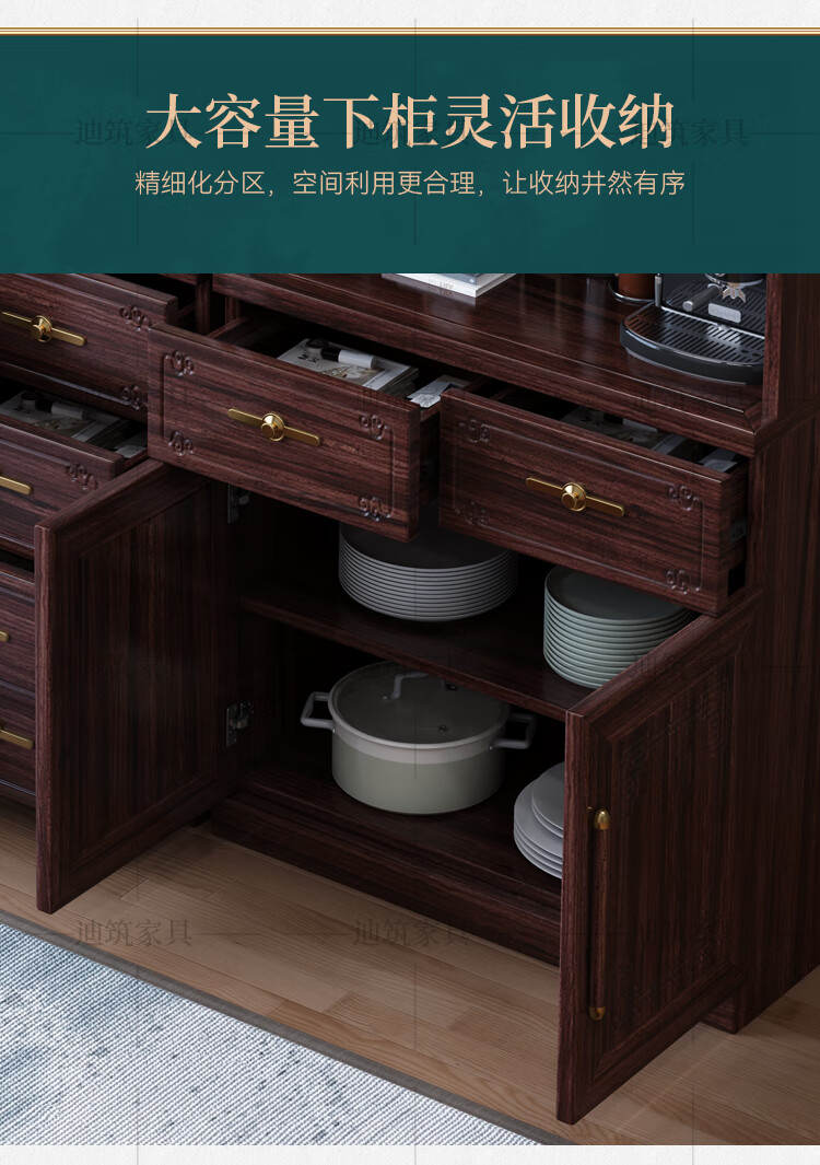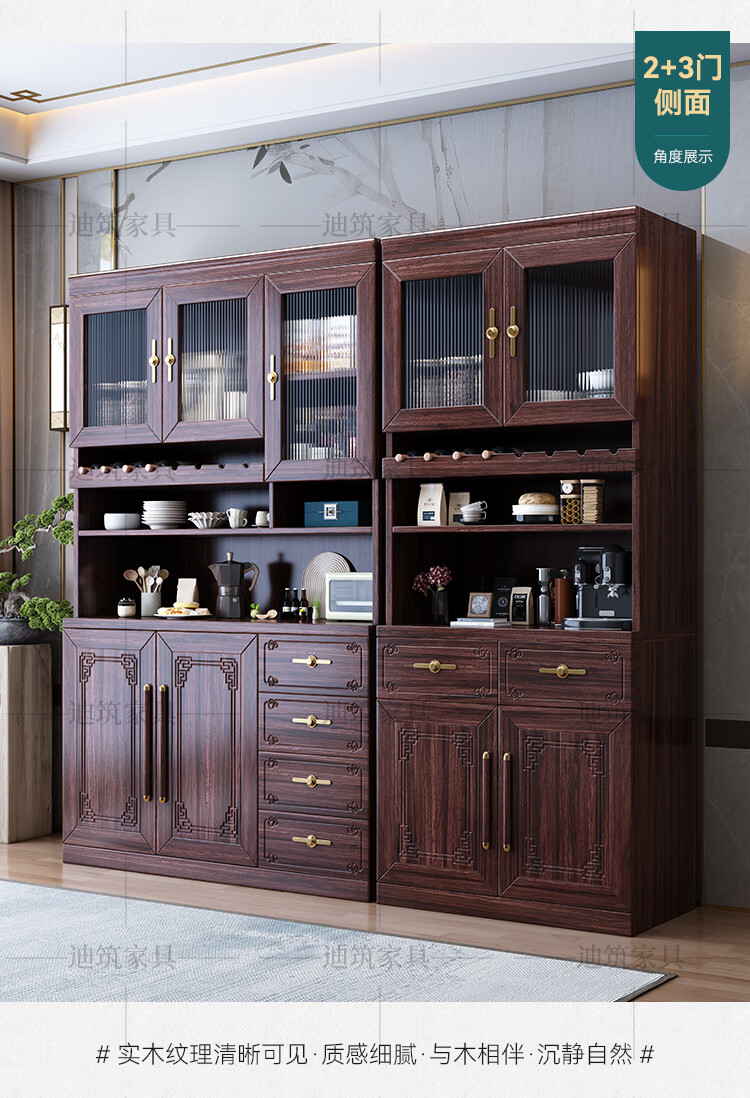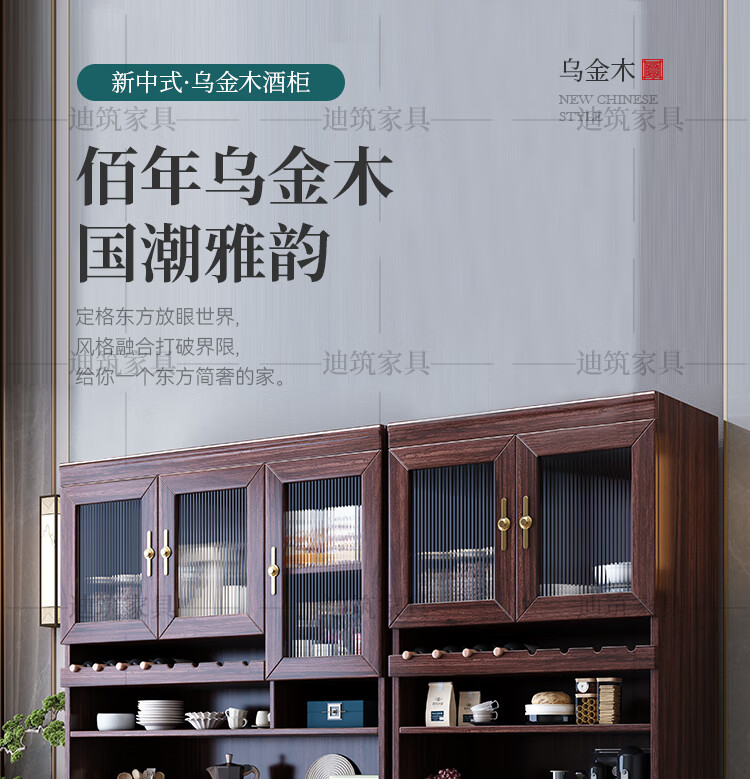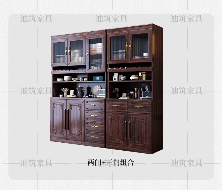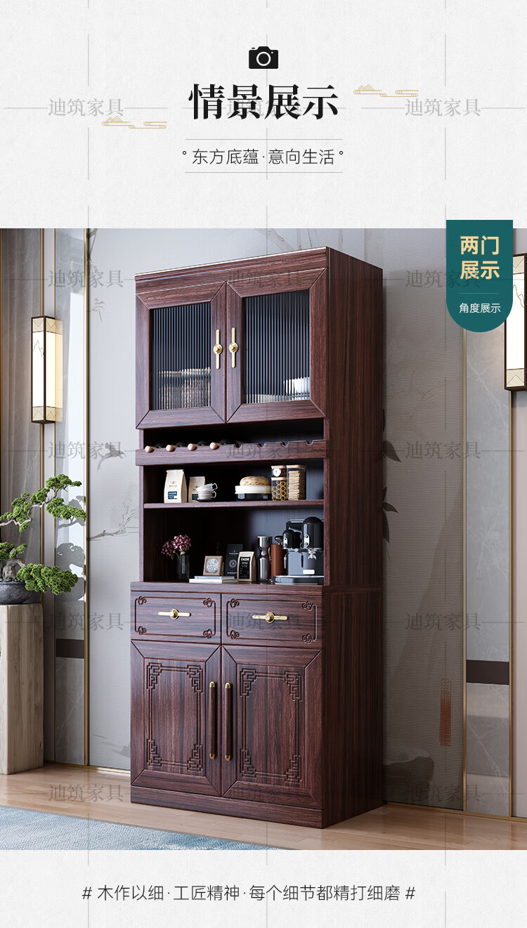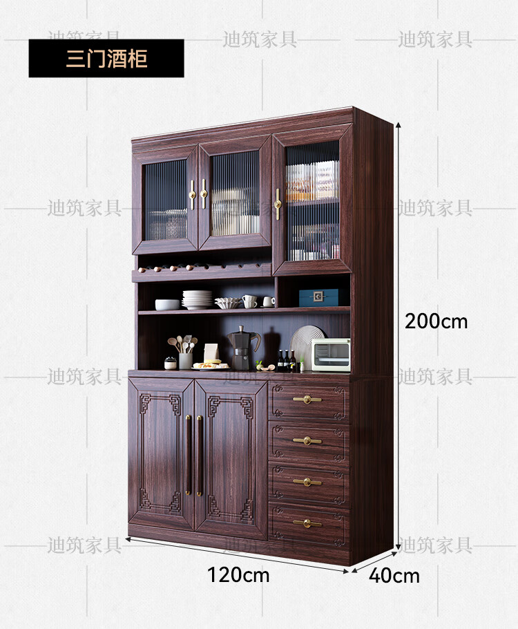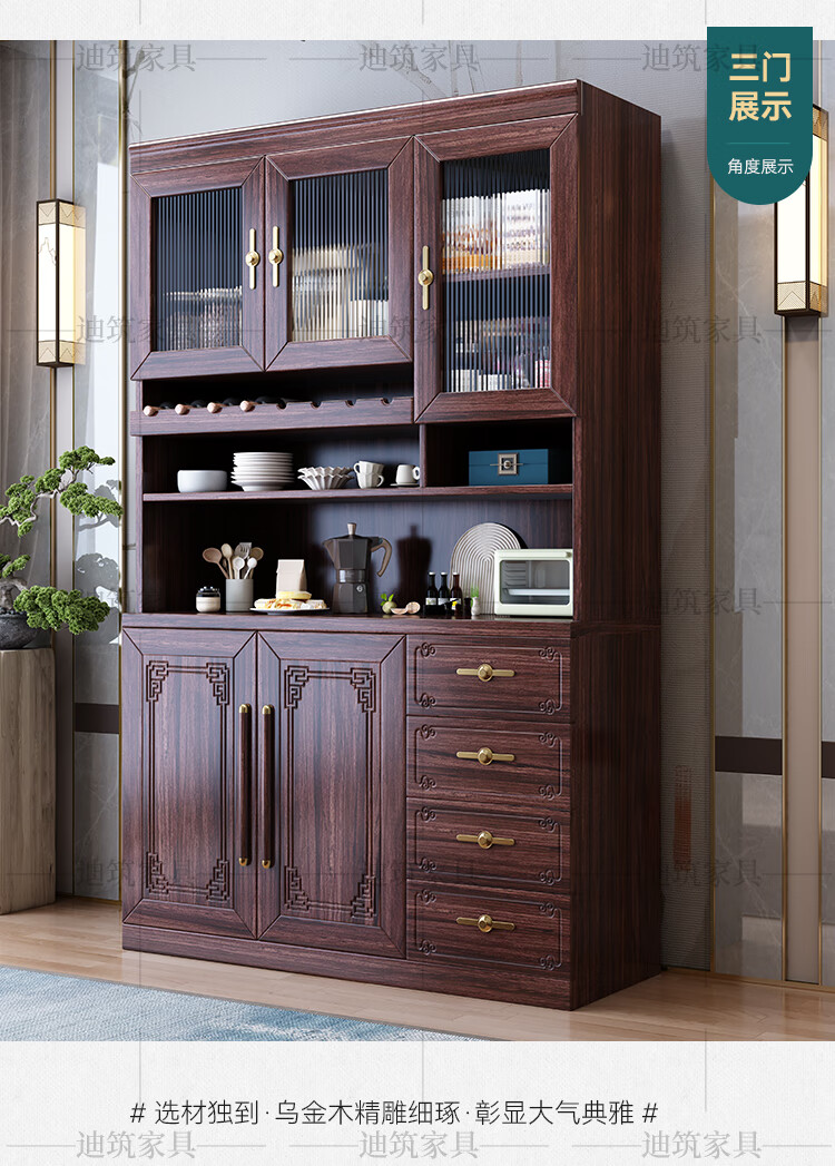 Dizhu new Chinese style black gold solid wood wine cabinet and sideboard integrated wall-mounted living room glass door tall multi-functional storage cabinet 7904#1.2 meters long 120x40x200 black gold