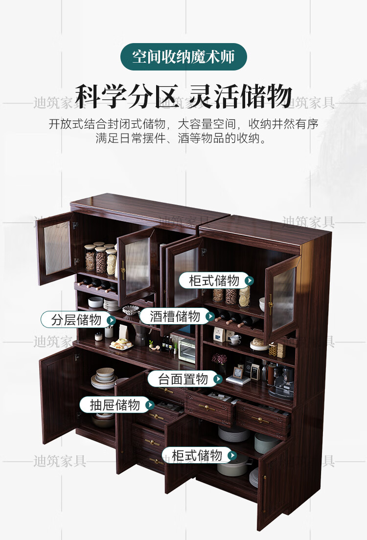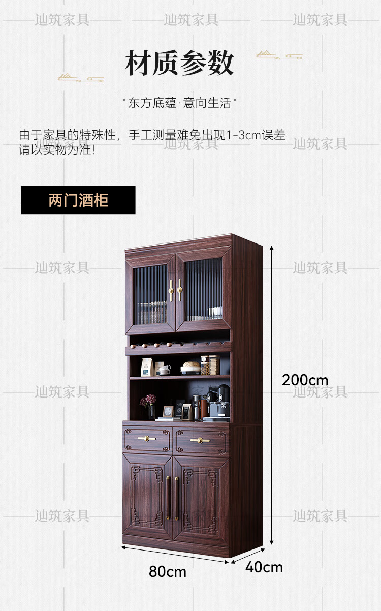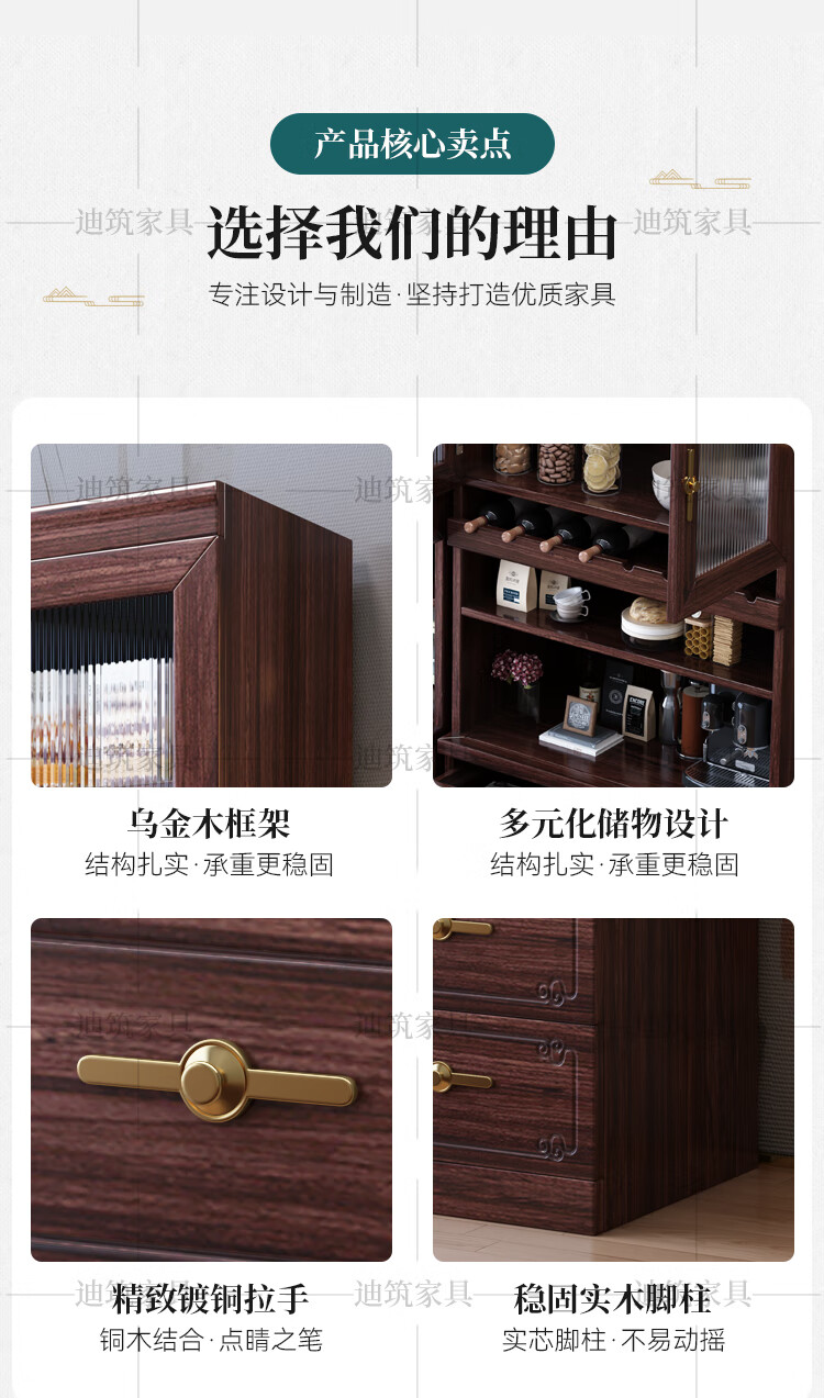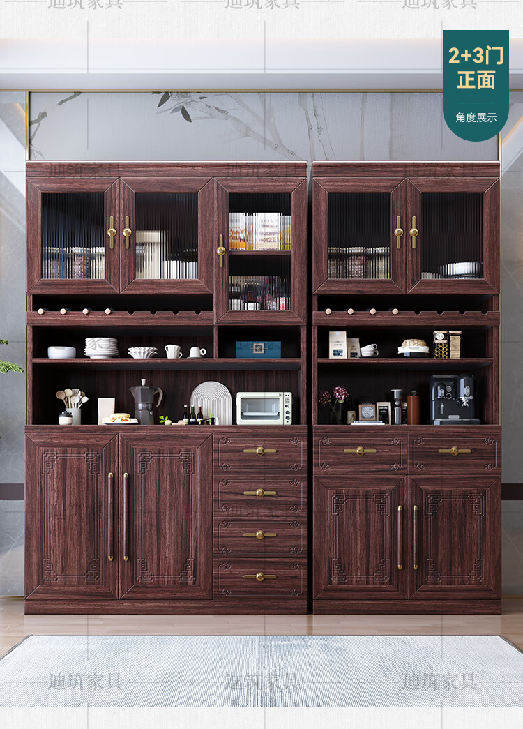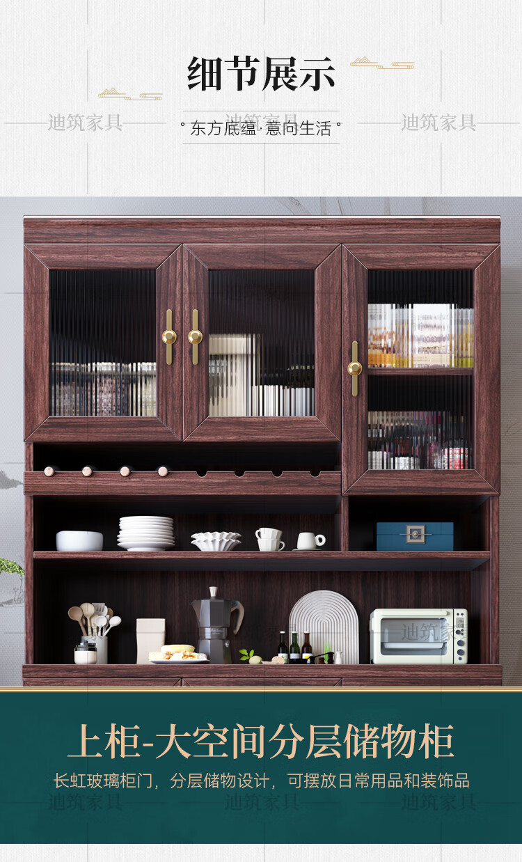 Dizhu new Chinese style black gold solid wood wine cabinet and sideboard integrated wall-mounted living room glass door tall multi-functional storage cabinet 7904#1.2 meters long 120x40x200 black gold