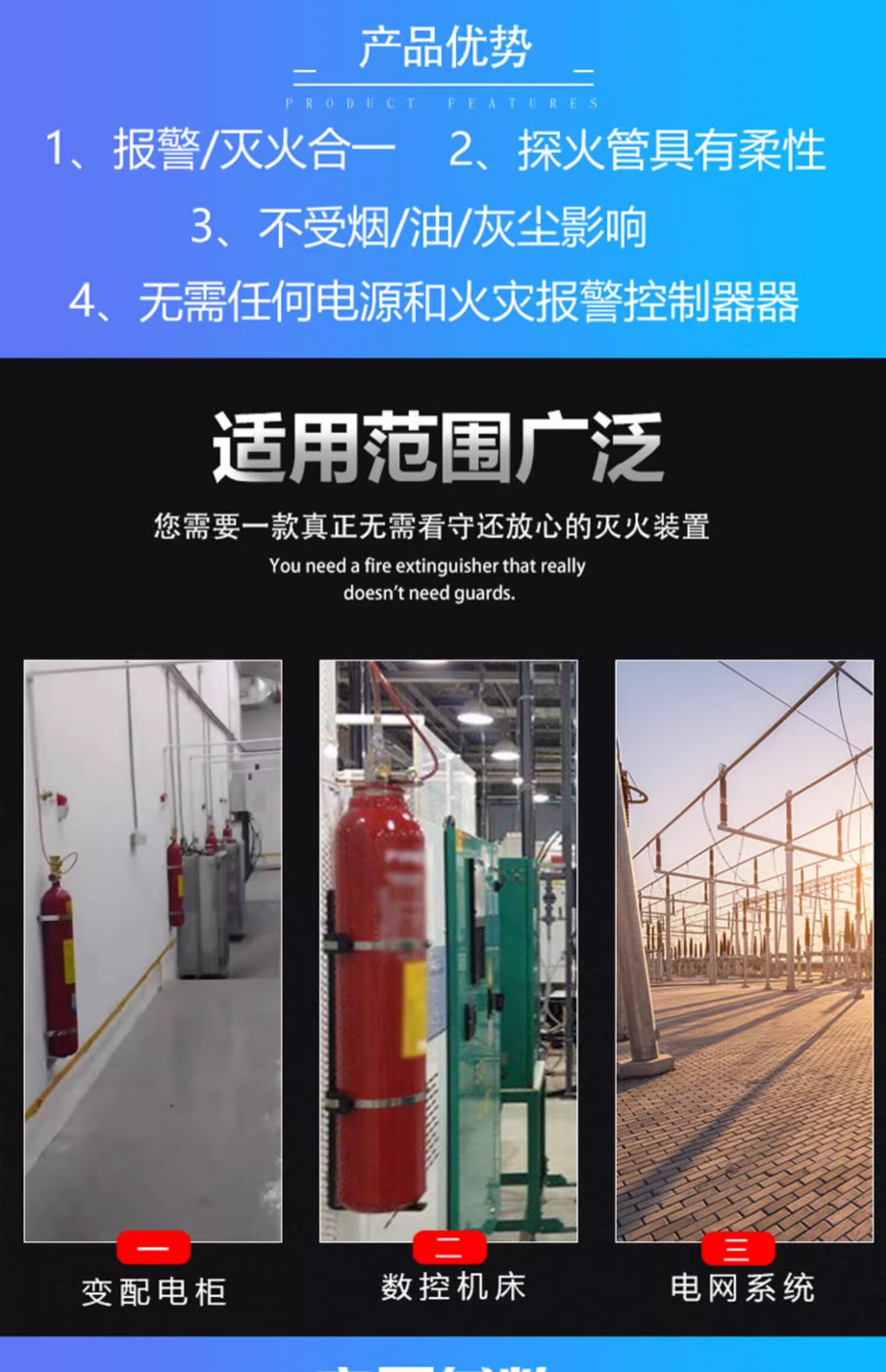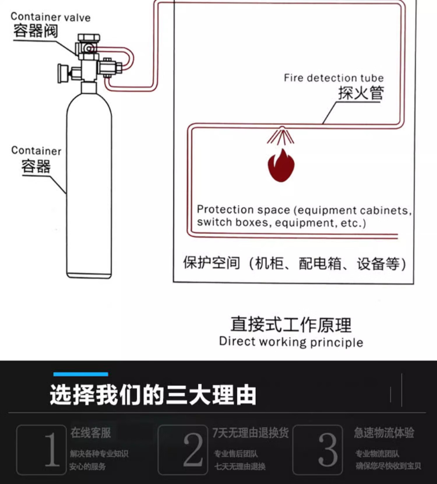Honghu fire detector tube fire extinguishing device gas fire extinguishing distribution cabinet machine room fire protection heptafluoropropane carbon dioxide perfluorohexanone 9kg dry powder perfluorohexanone fire detection tube automatic fire extinguishing