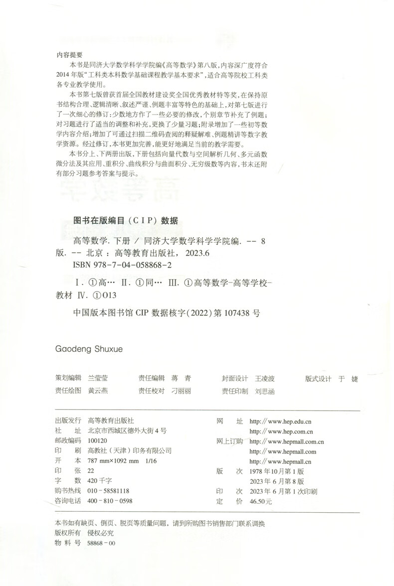 Advanced Mathematics Tongji 88th Edition Textbook (Tongji 8th Edition), Full Solution Set of Synchronized Tutorial Exercises, Tongji University Advanced Mathematics Practice Book, Test Paper, Full Analysis of After-Class Exercises, College and Vocational College, Freshman Year High Mathematics Tutoring Self-study Textbook, Postgraduate Entrance Examination Textbook, Higher Education Press, Tongji 8th Edition, Full Solutions to Exercises + Synchronous Testing Paper
