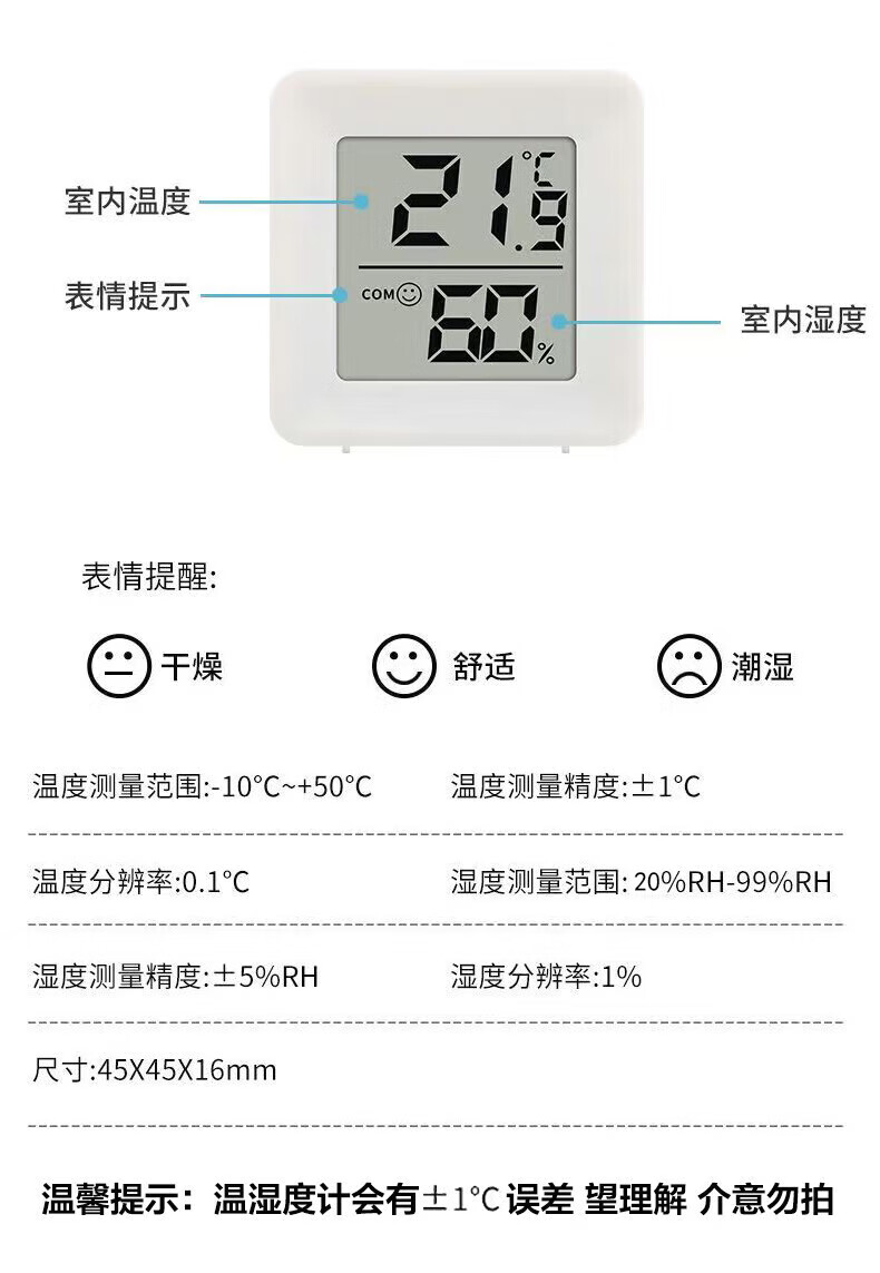 Thermometer and hygrometer indoor dry and wet household Xiaomi flat electronic temperature and humidity display mini portable high-precision wall-mounted silent mini thermometer and hygrometer/white