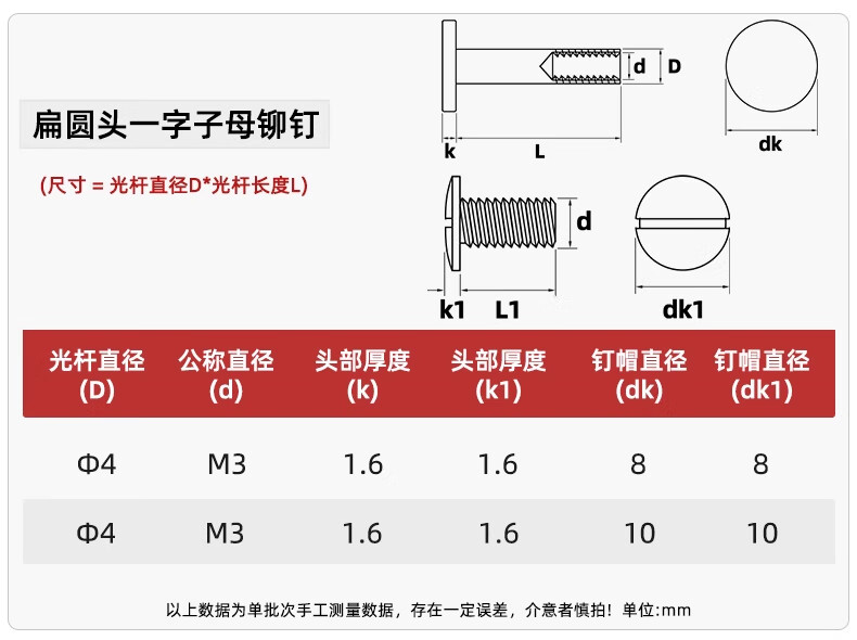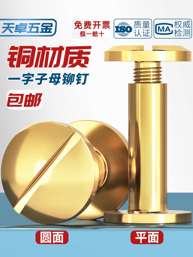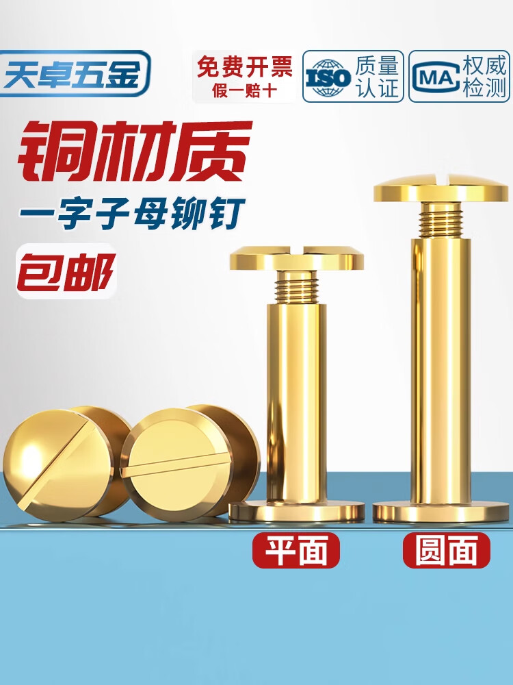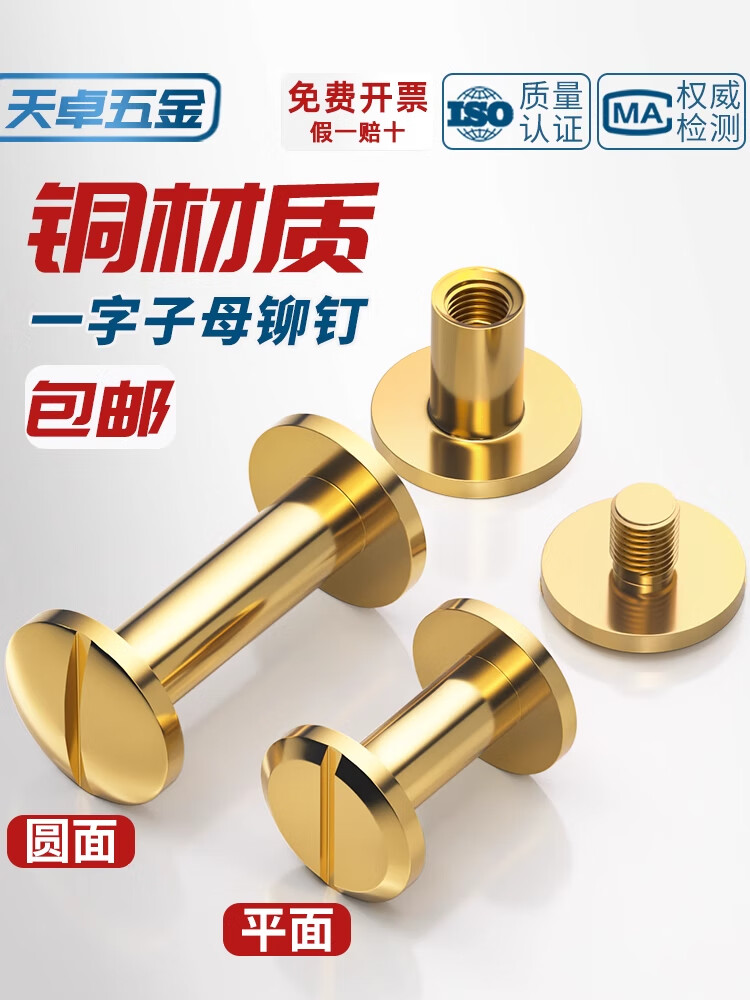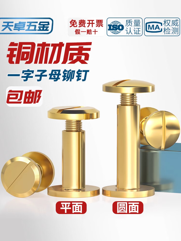 Tianzhuo Hardware pure brass screws and rivets flat locking arc head letter book nails belt photo album connection accessories M4 M4*6 head diameter 8 5 sets flat