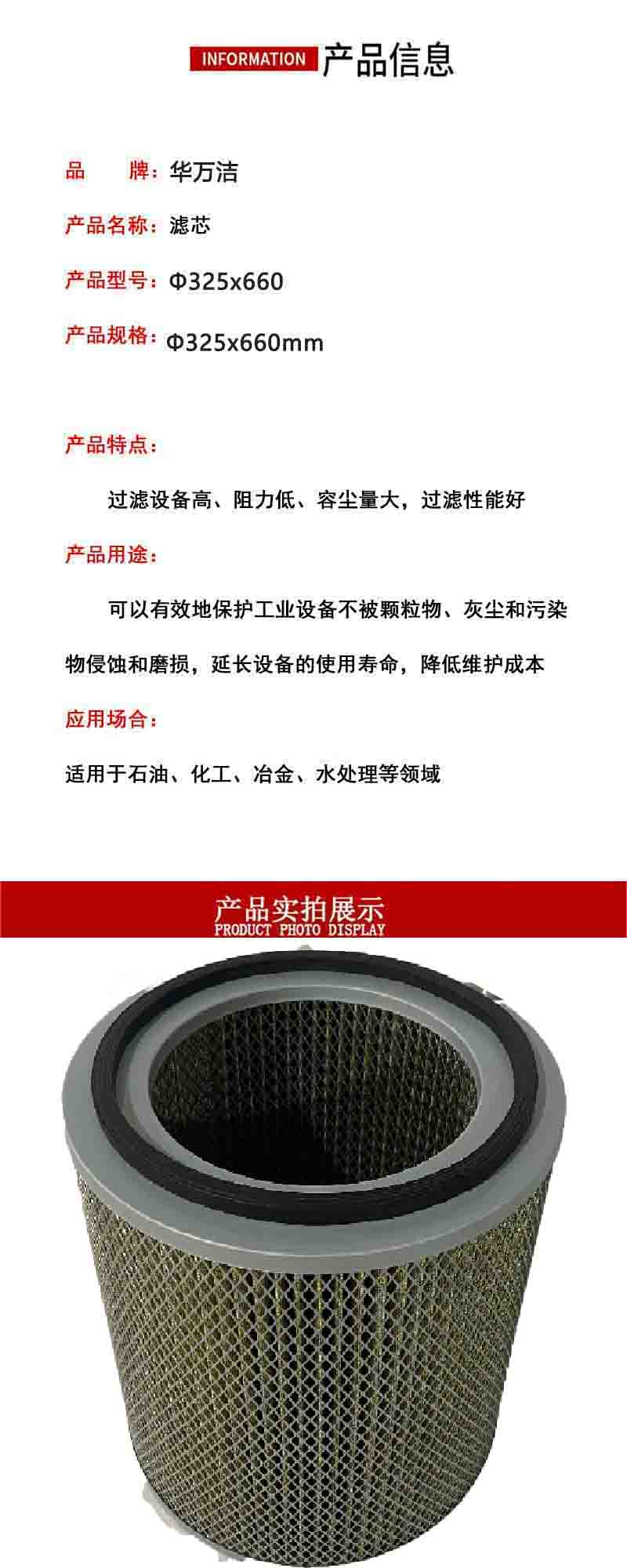 Huawanjie filter element 325x660 unit