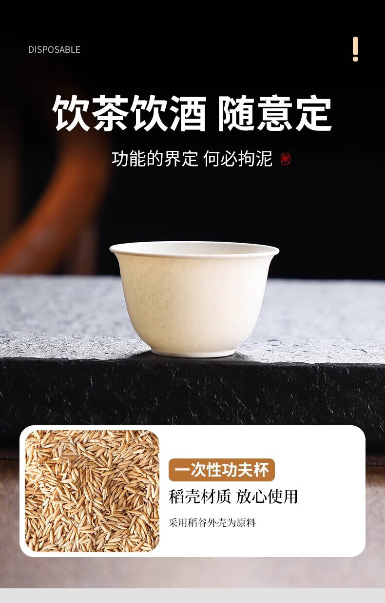 Qincheng rice husk disposable teacup kungfu teacup drinking teacup small cup high-end tea cup sturdy water cup rice husk teacup 500 pieces