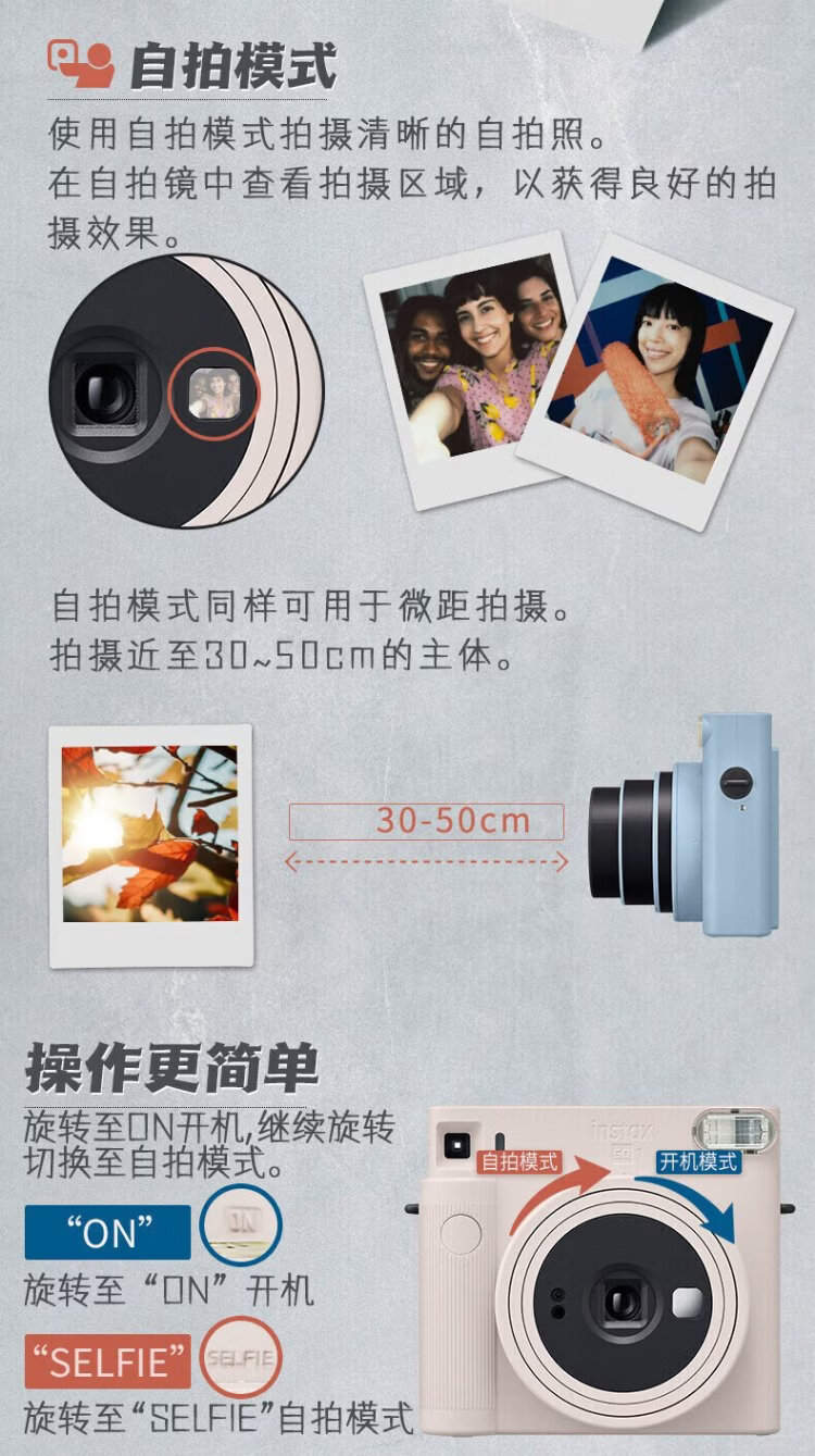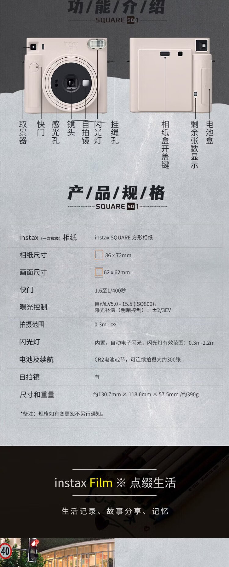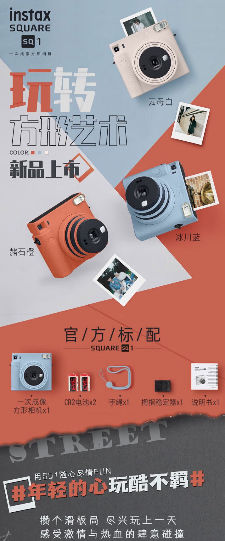 Fuji (FUJIFILM) instax SQUARE SQ1/SQ40 Instant Imaging Square Camera Instant Photo Paper New Year's Gift Annual Party Prize Valentine's Day Gift Box SQ1 Glacier Blue Classic Large Format Ins Style Package (Storage Bag + Photo Album + Photo Frame)