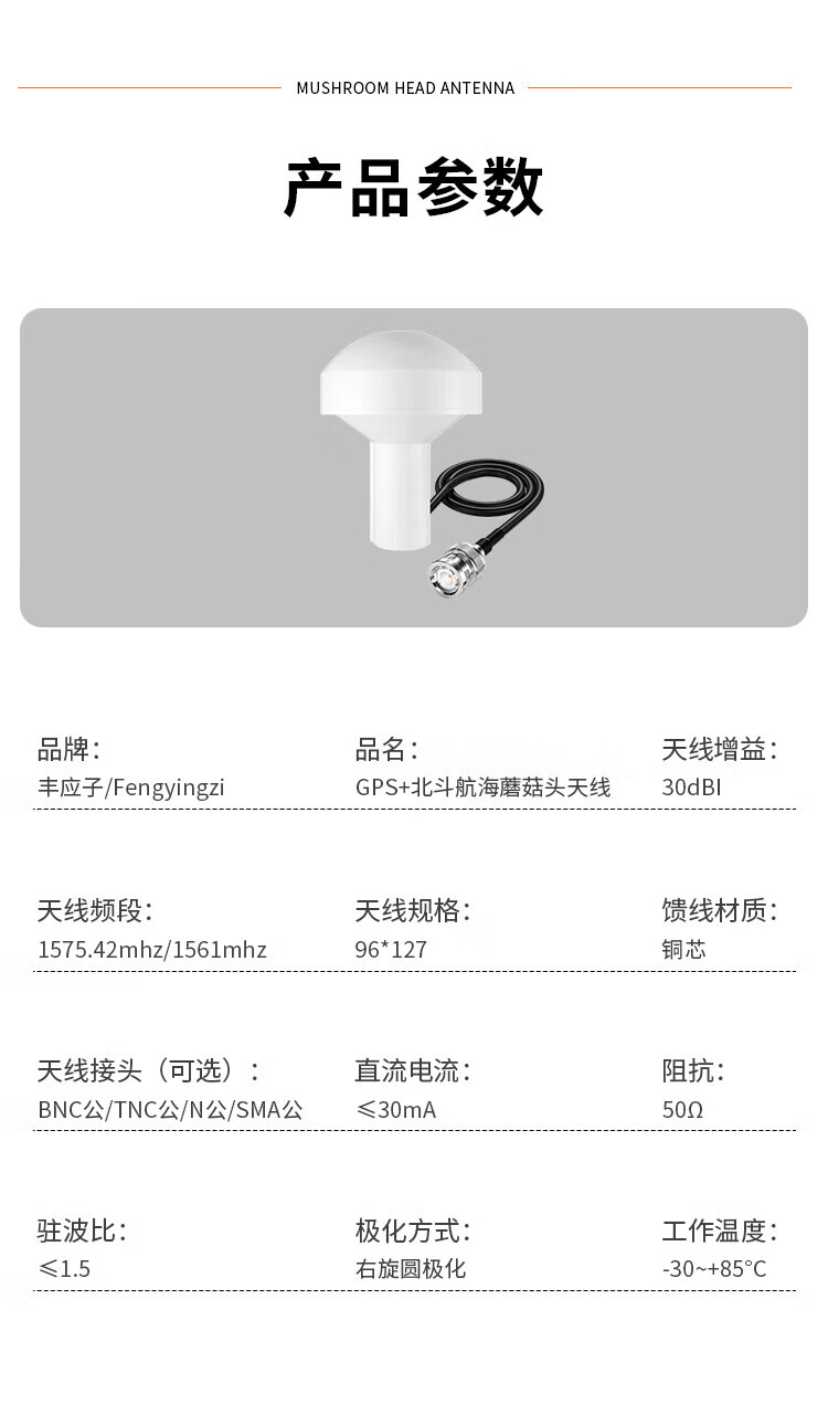 Fengyingzi GPS+Beidou mushroom head antenna high gain antenna clock antenna BNC male interface 20 meters