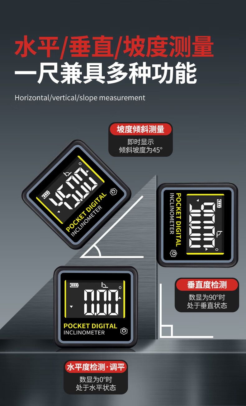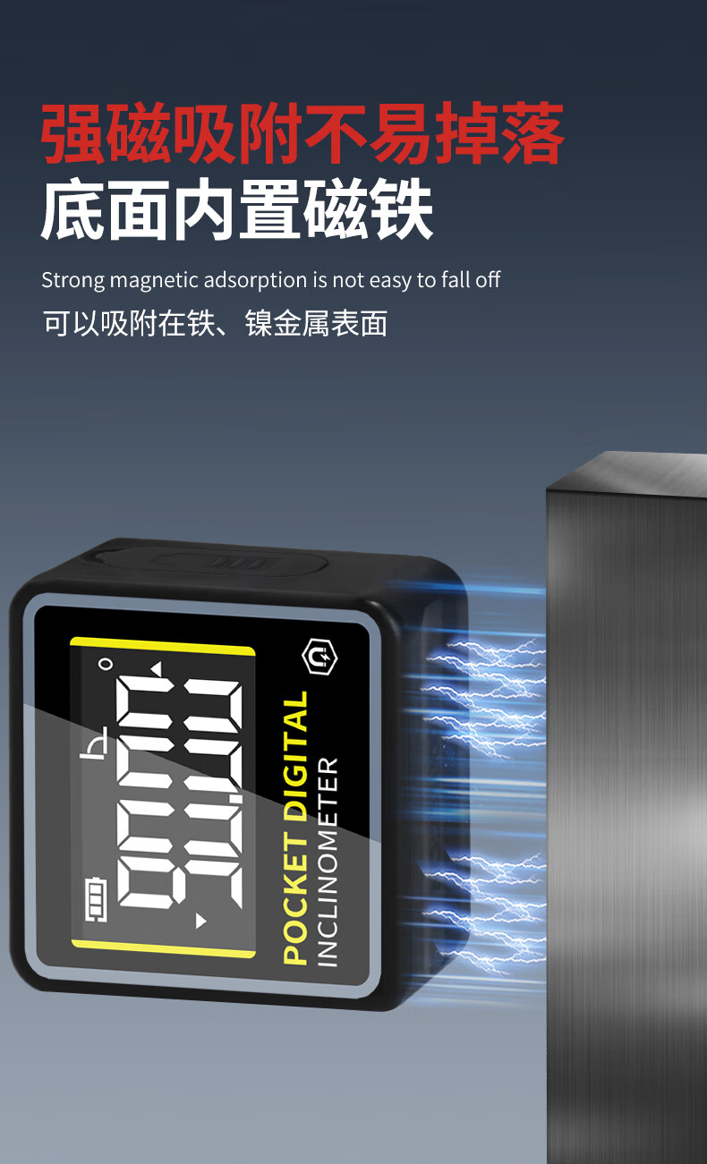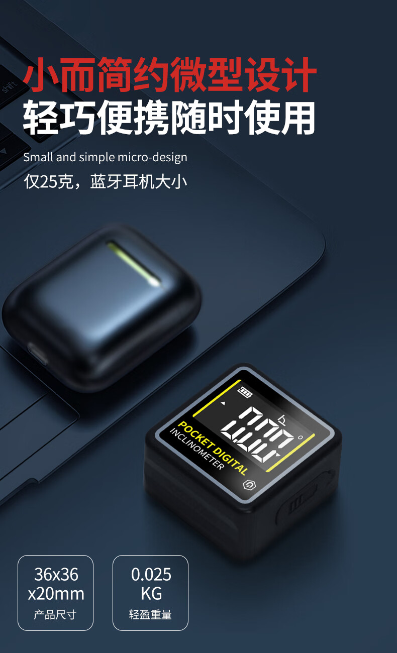 SYNTEK angle measuring instrument, small mini electronic inclinometer, high-precision digital display with strong magnet, portable slope level, mini micro inclinometer (lithium battery/strong magnet)