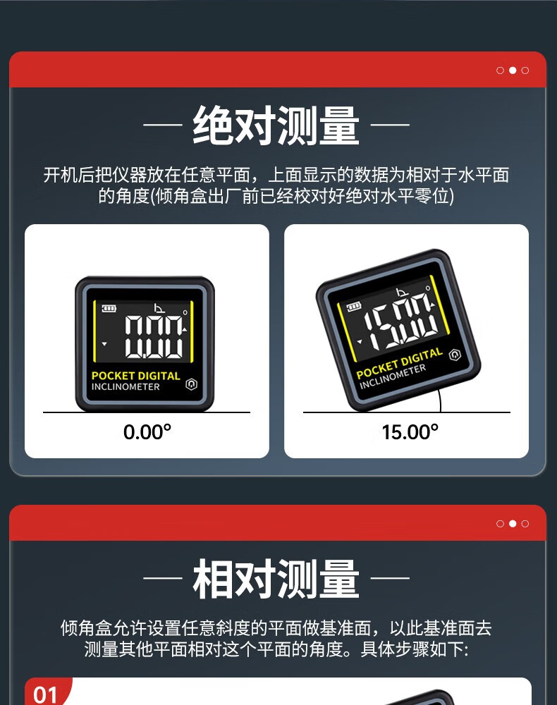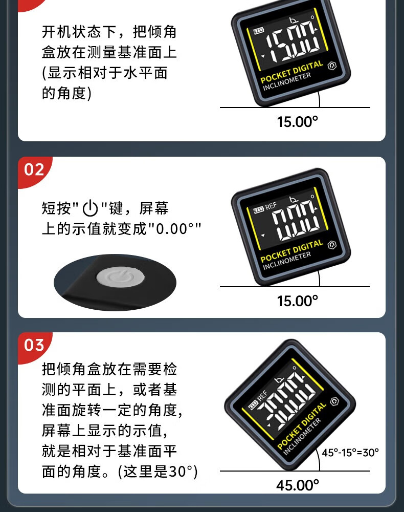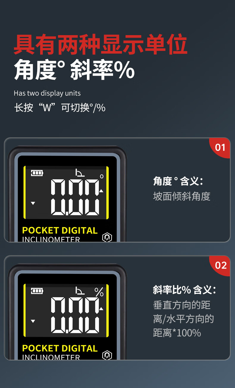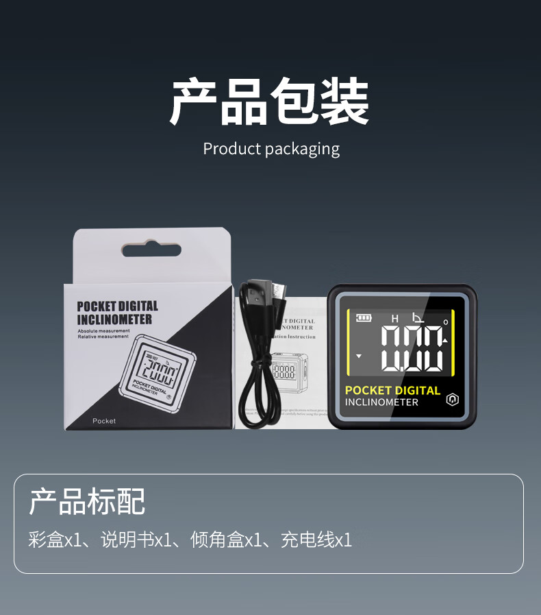 SYNTEK angle measuring instrument, small mini electronic inclinometer, high-precision digital display with strong magnet, portable slope level, mini micro inclinometer (lithium battery/strong magnet)