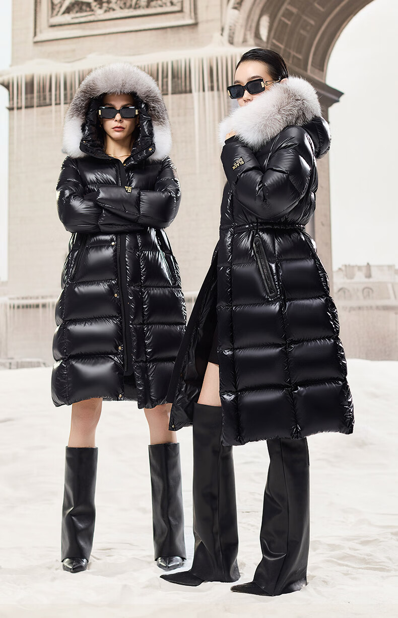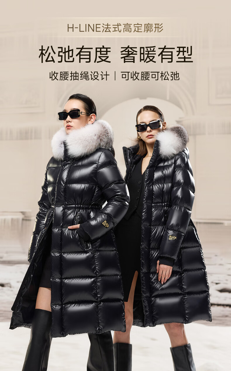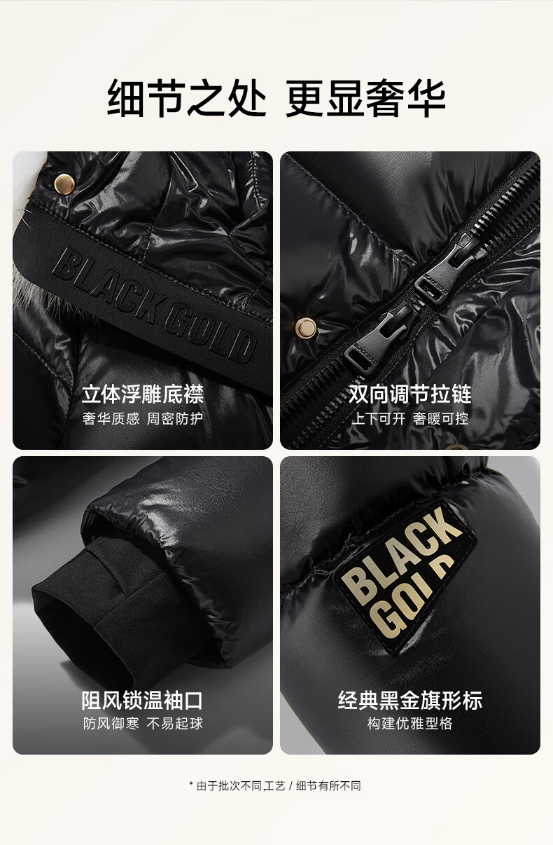 Govan Black Gold Goose Down Jacket Queen 4.0 Eight-lattice Fur Collar Women's Down Jacket Couture Queen Black M