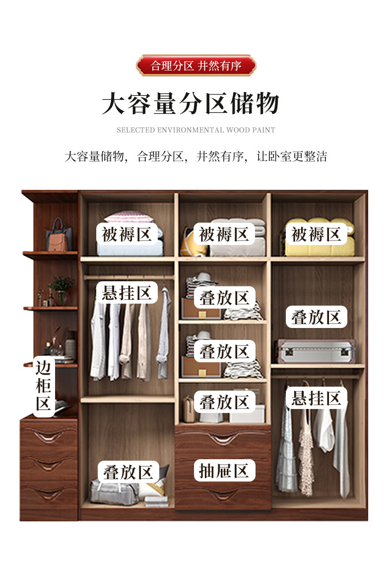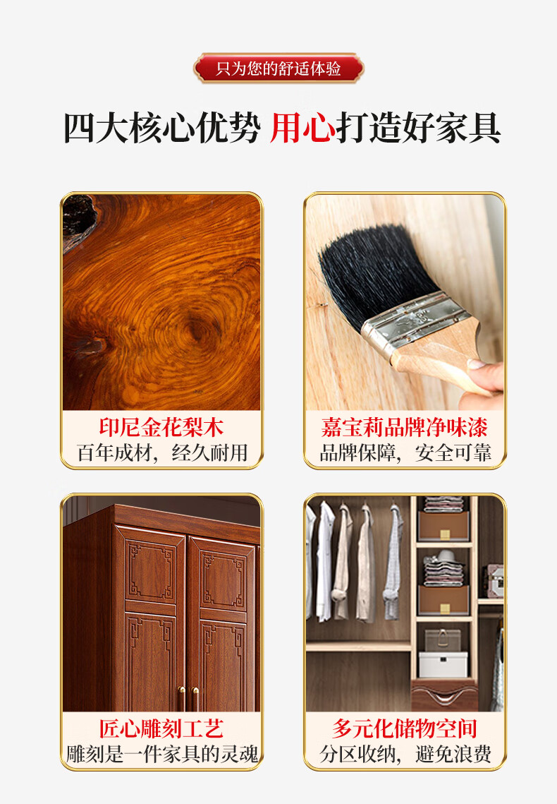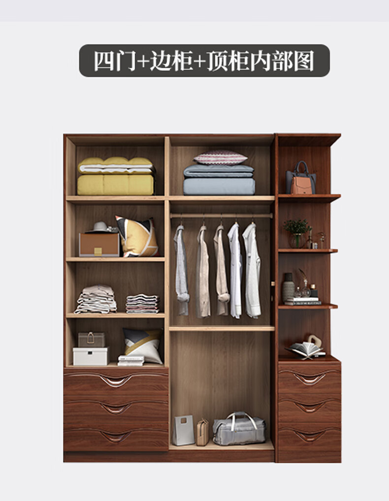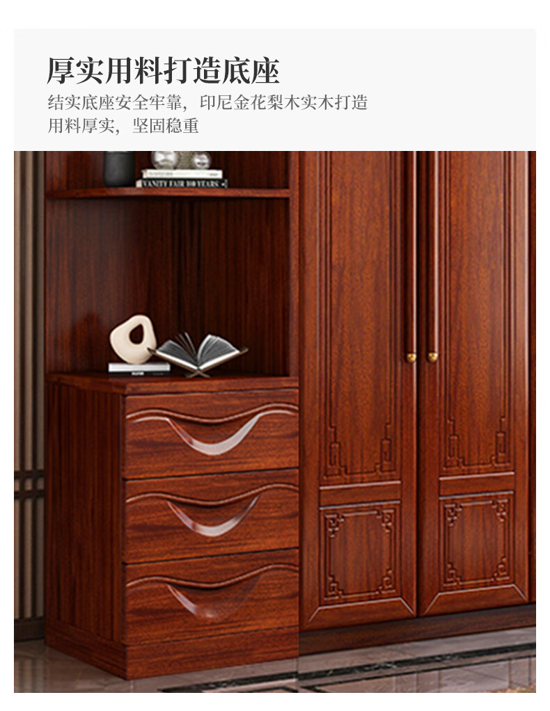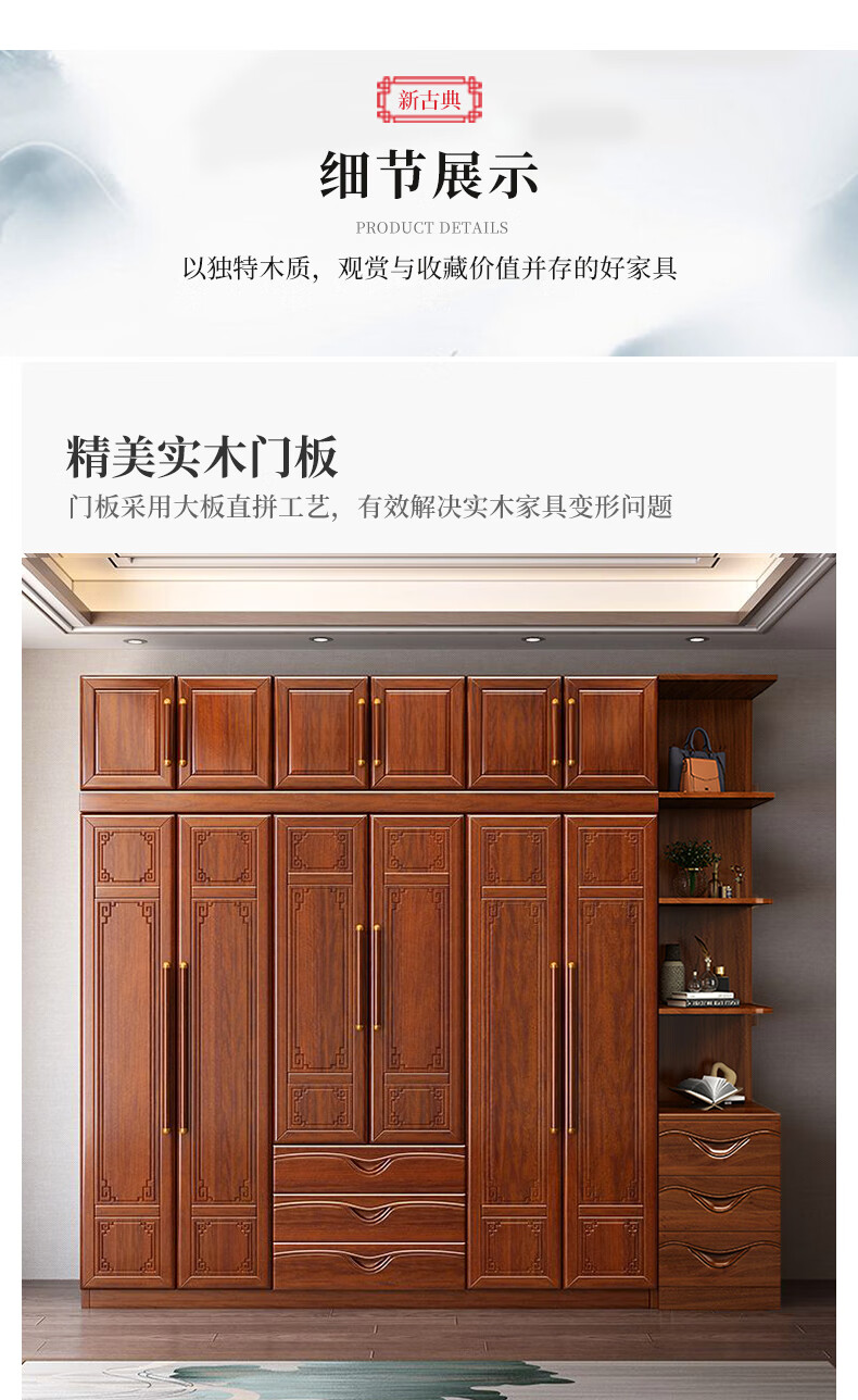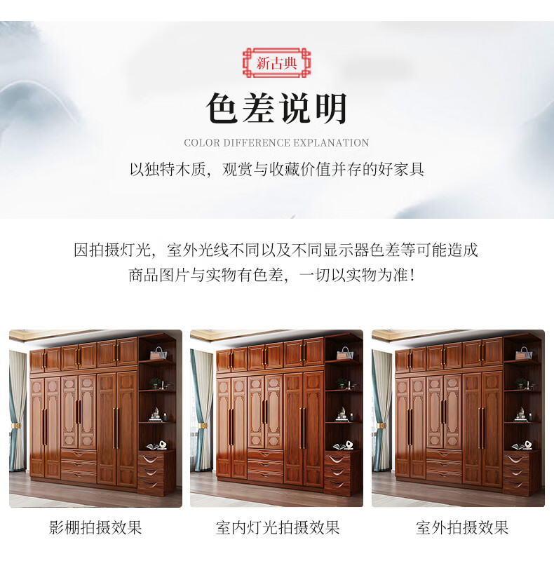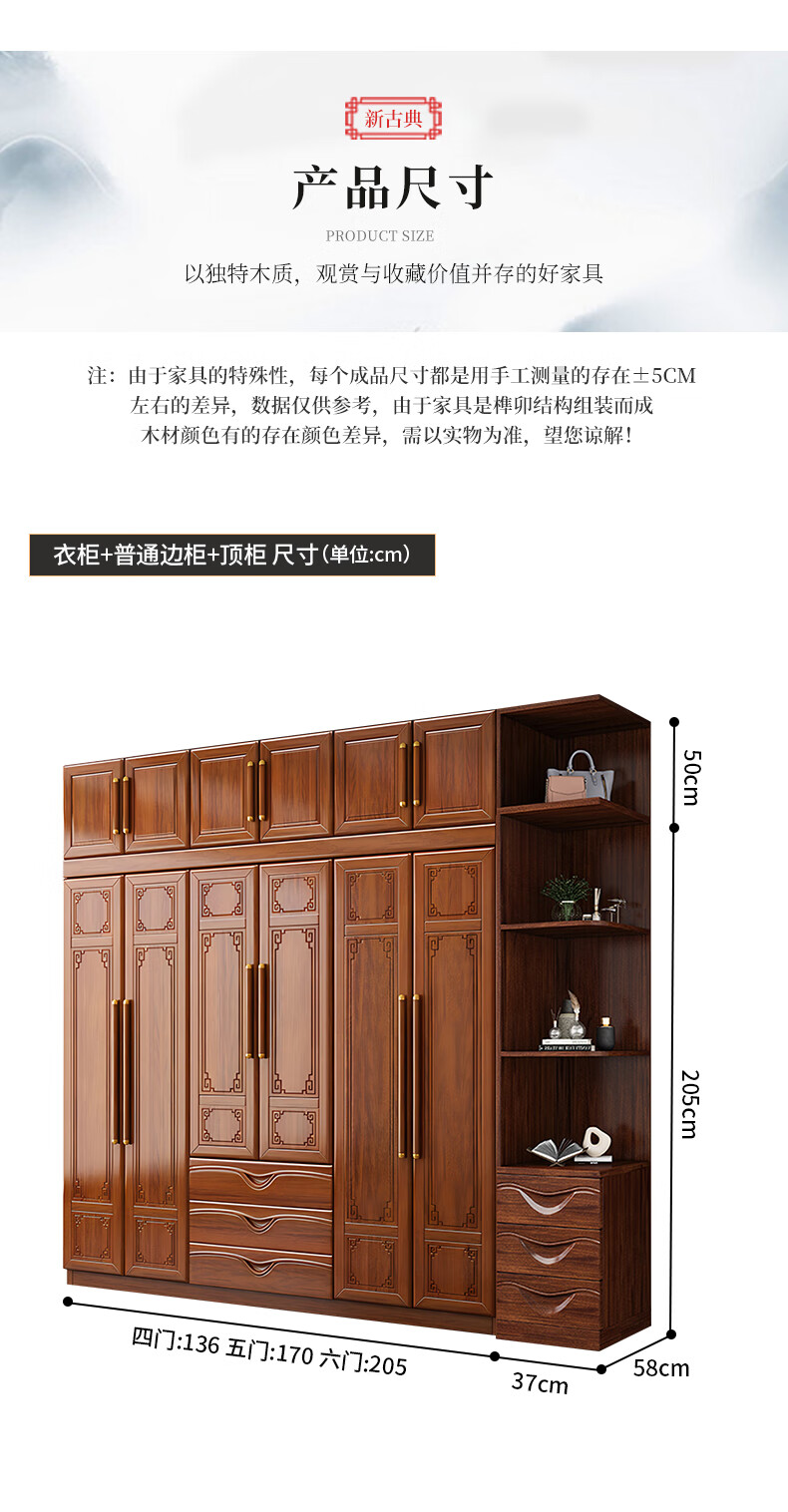 Hengyun Wardrobe New Chinese Style Golden Rosewood Wardrobe with Drawers Bedroom Home Locker Top Cabinet Wardrobe Z8628-1 Six-Door Wardrobe with Center Drawer Golden Rosewood