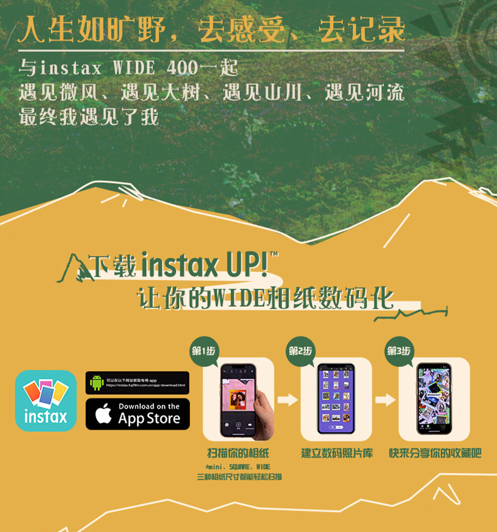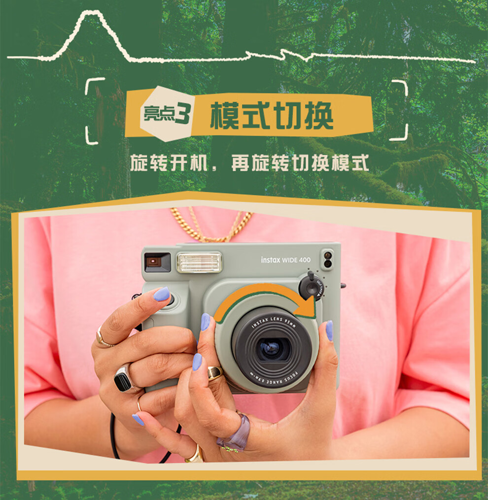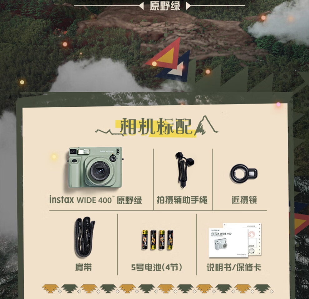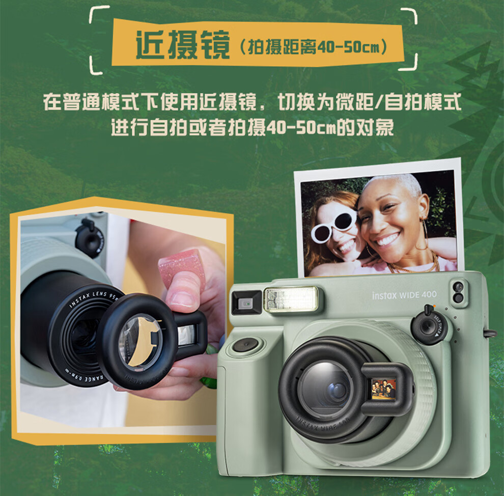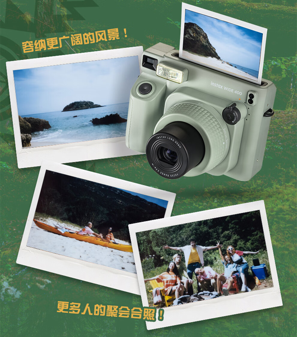 Fuji (FUJIFILM) instax wide400 w400 one-shot wide-format instant camera uses 5-inch photo paper W400 wilderness green + base + peripheral accessories, a total of 40 pieces of photo paper, official standard