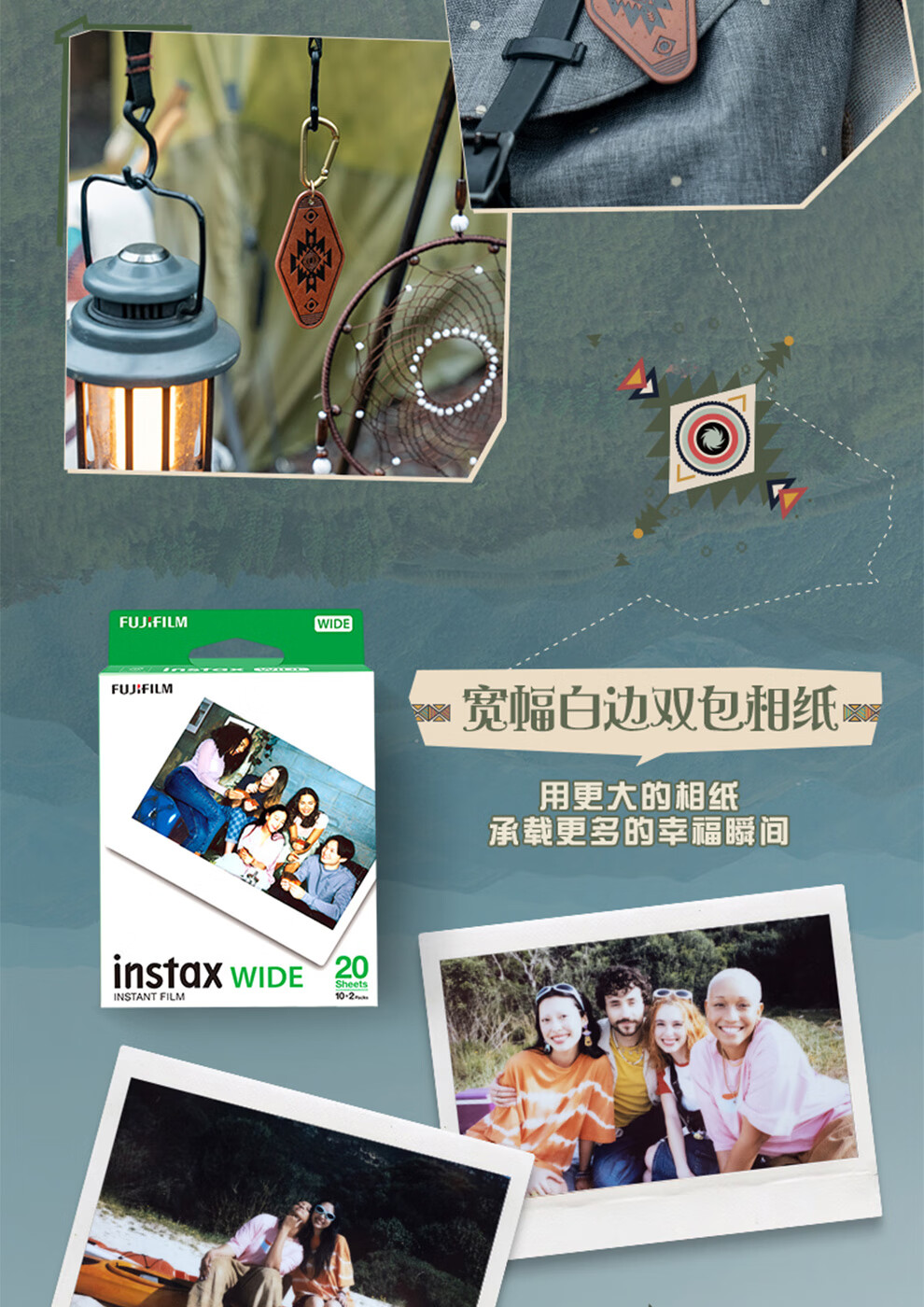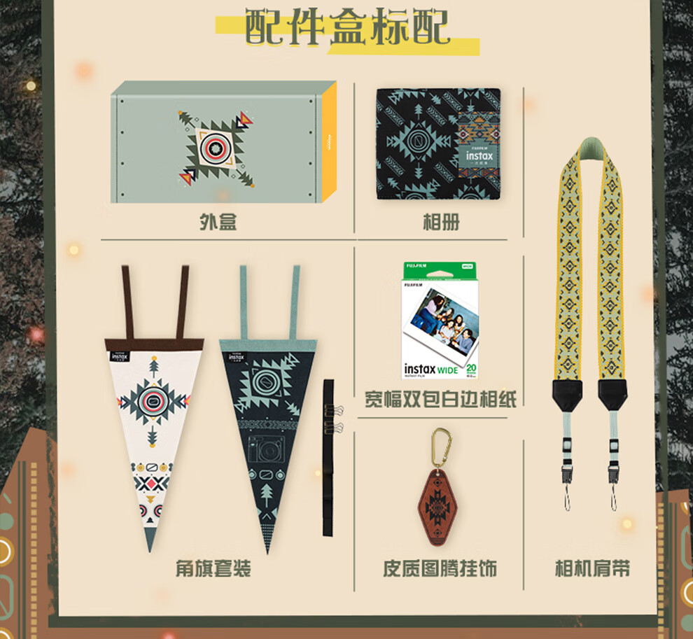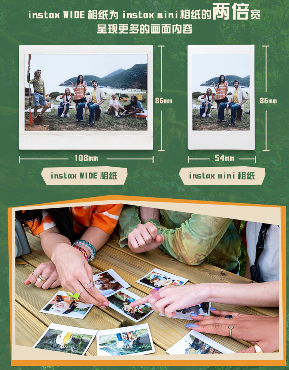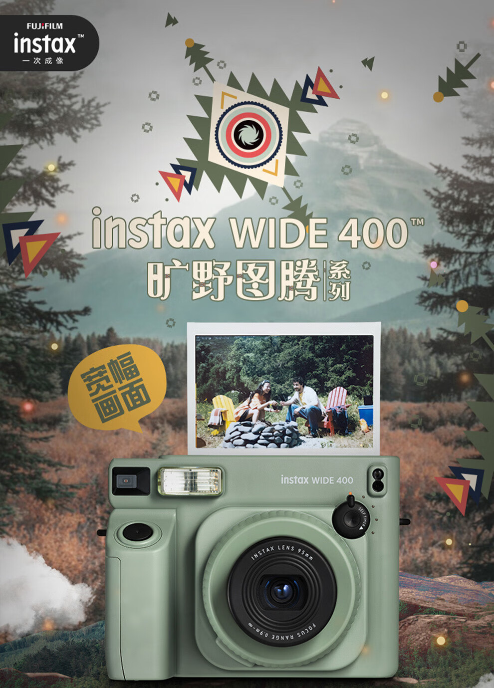Fuji (FUJIFILM) instax wide400 w400 one-shot wide-format instant camera uses 5-inch photo paper W400 wilderness green + base + peripheral accessories, a total of 40 pieces of photo paper, official standard