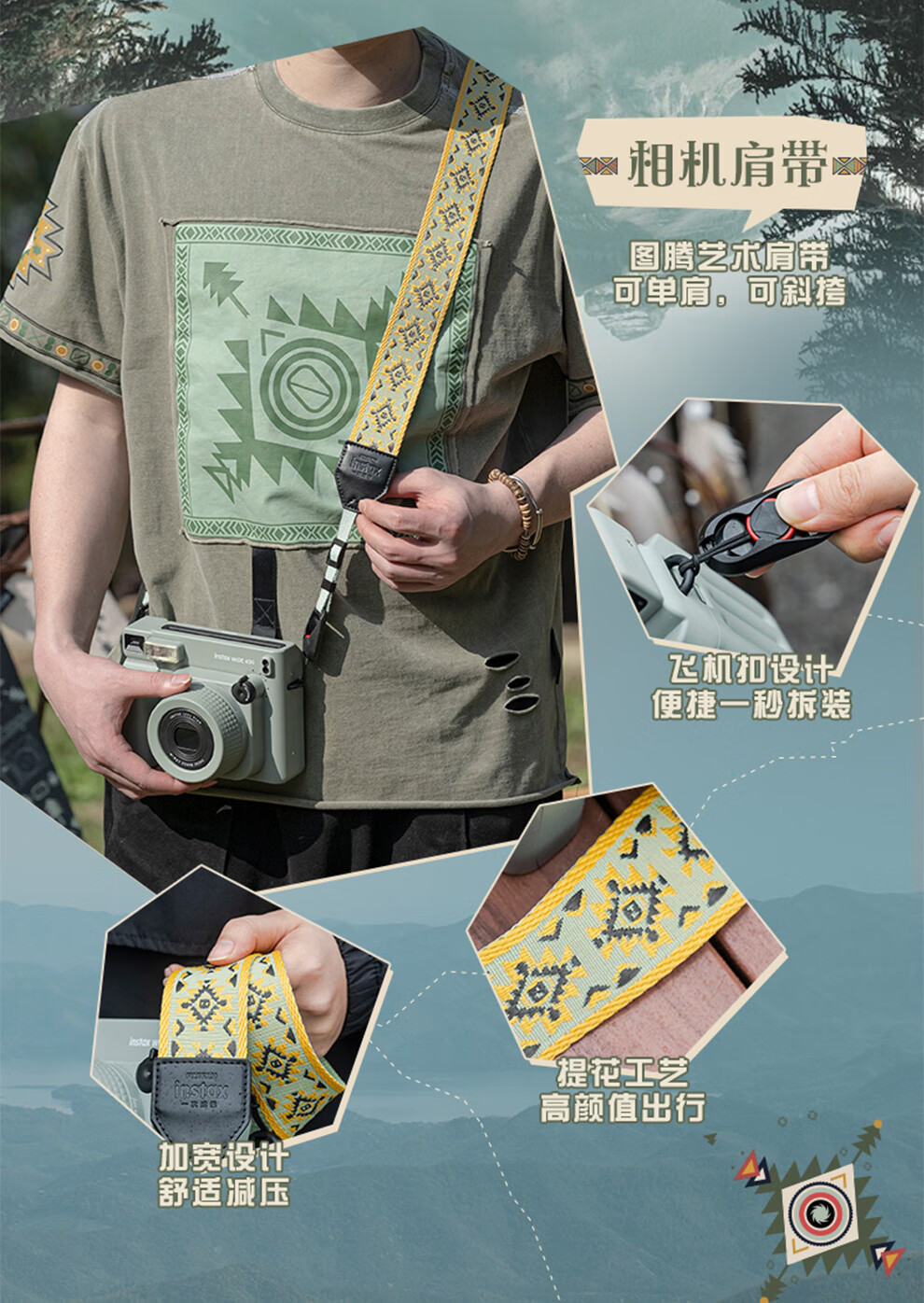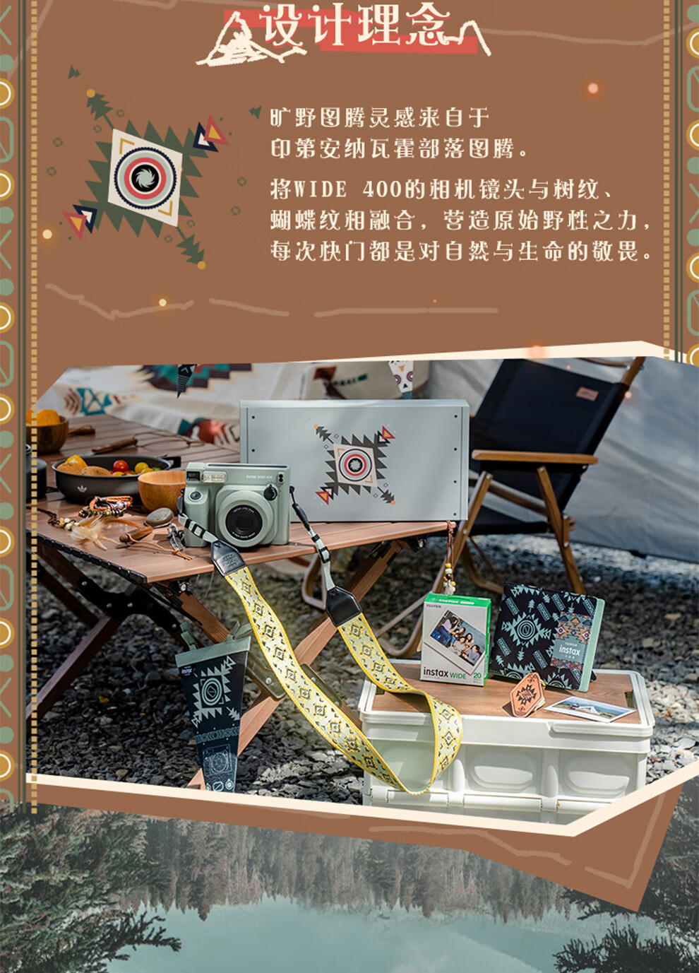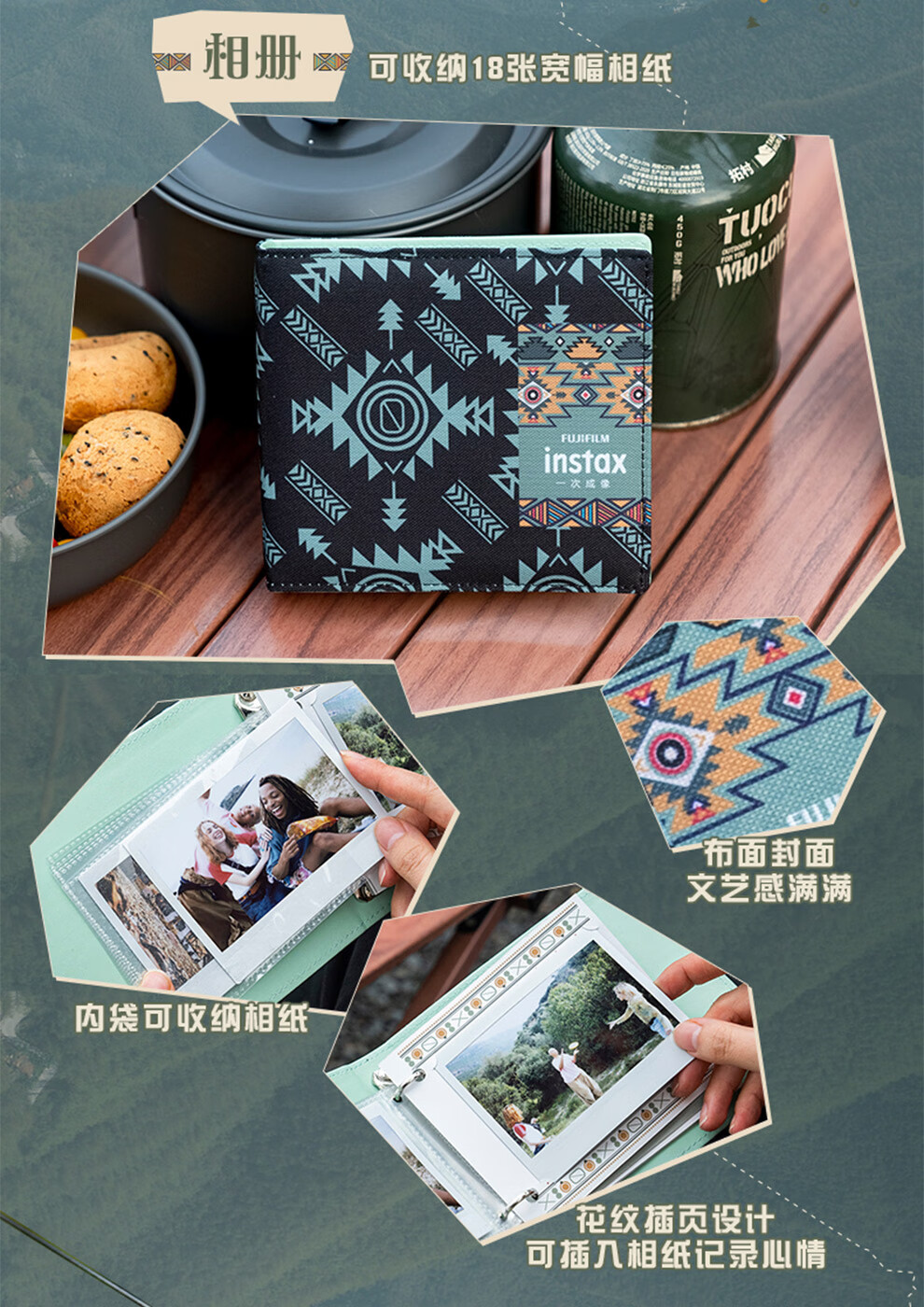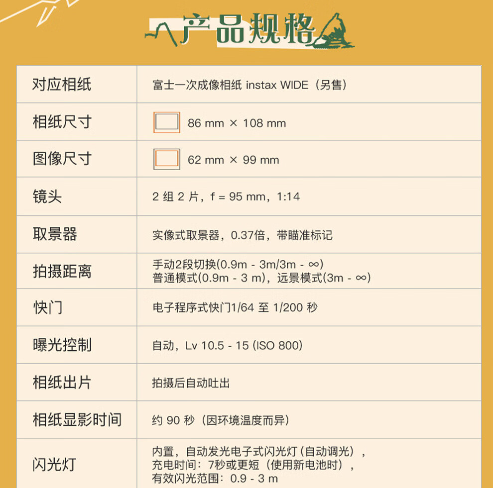 Fuji (FUJIFILM) instax wide400 w400 one-shot wide-format instant camera uses 5-inch photo paper W400 wilderness green + base + peripheral accessories, a total of 40 pieces of photo paper, official standard
