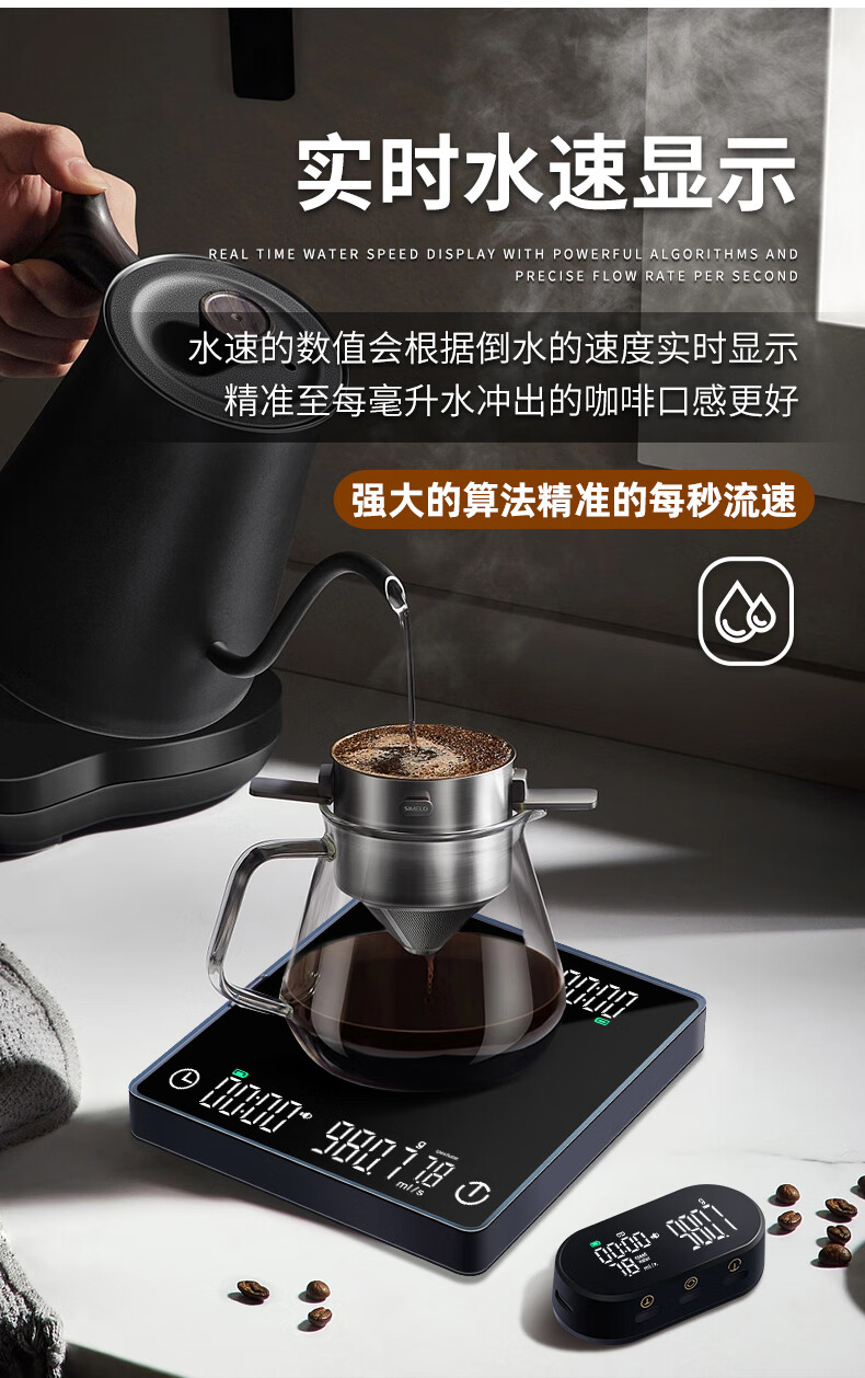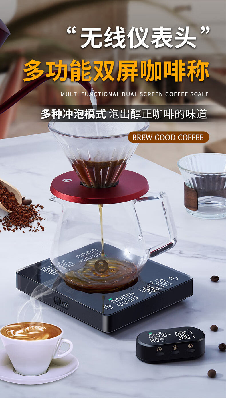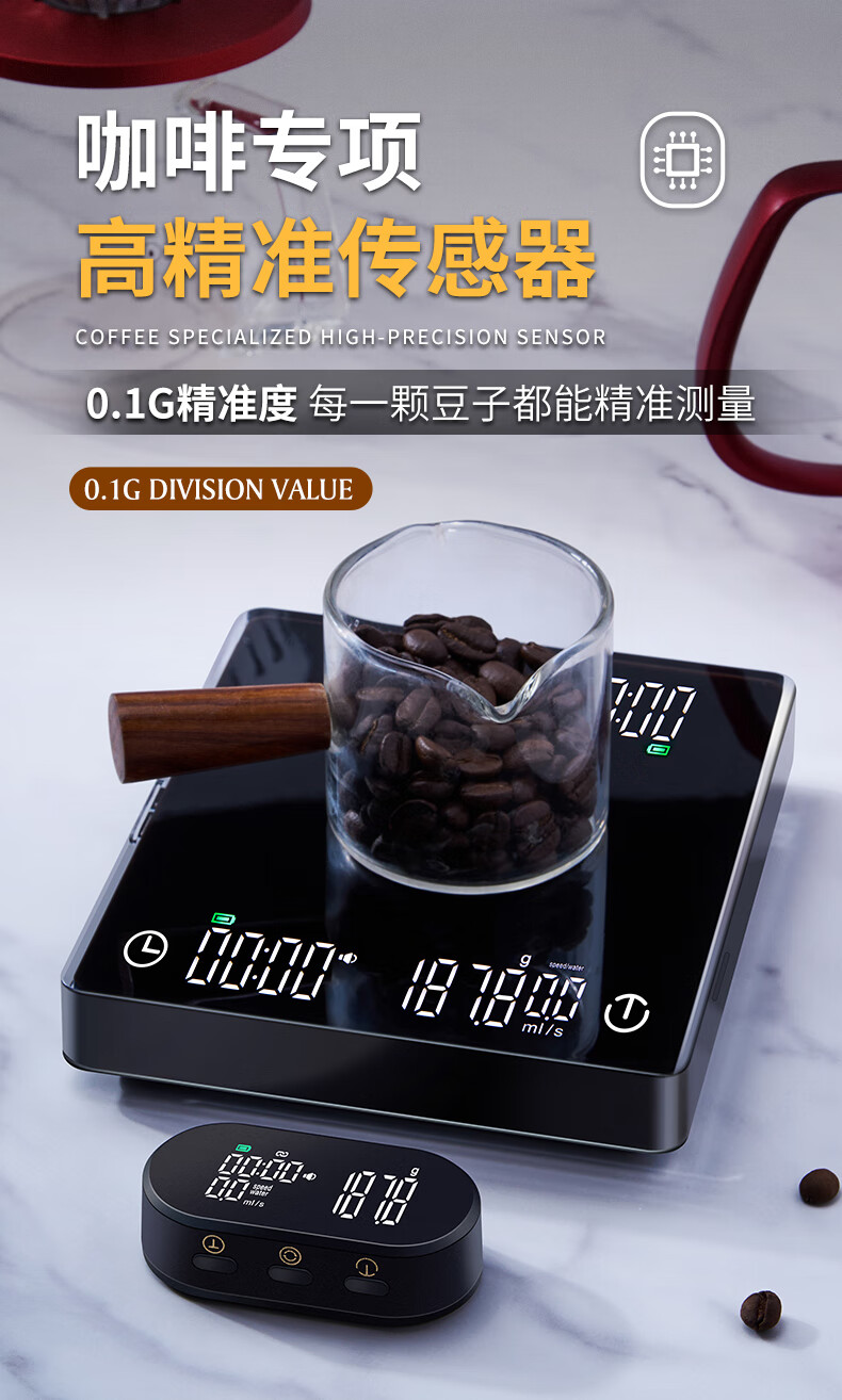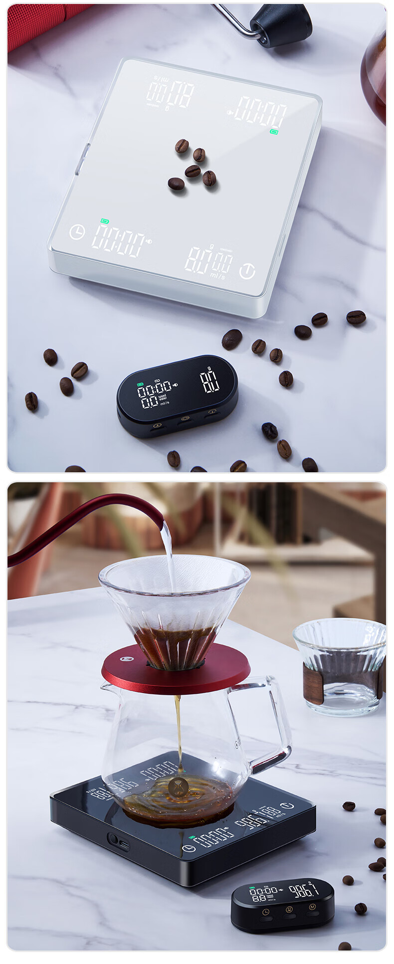 Yuedi Wireless Bluetooth Coffee Electronic Scale Hand-brewed Coffee Special Scale Coffee Bean Gram Weighing Italian Coffee Timing Scale Black Single Display with Bluetooth Head 5kg0.1g
