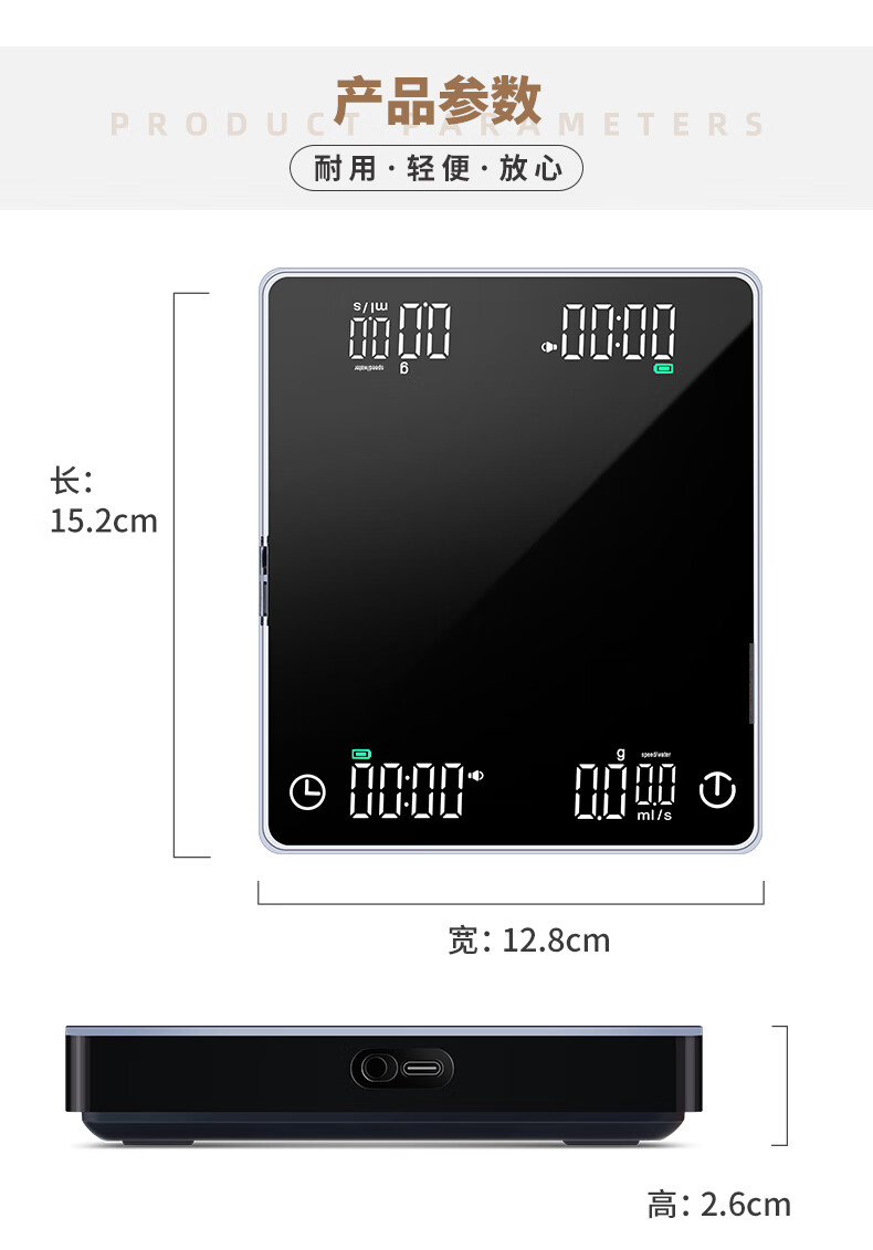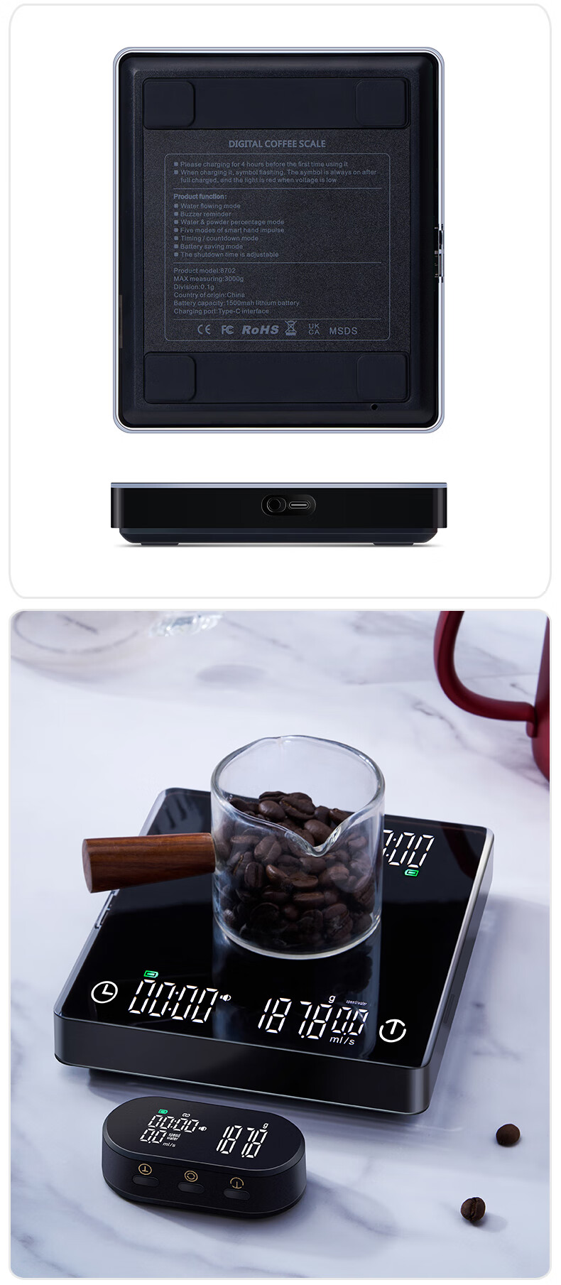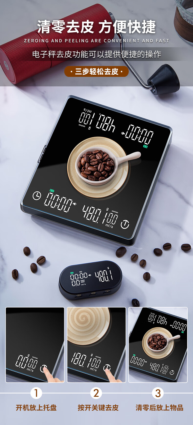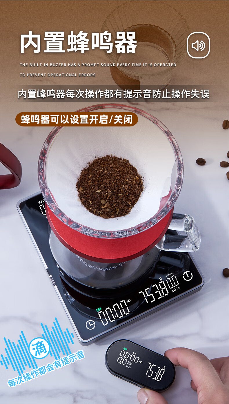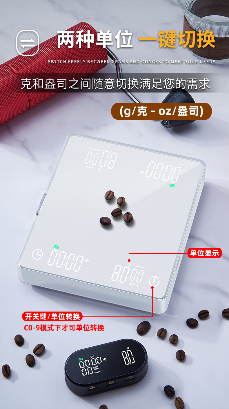 Yuedi Wireless Bluetooth Coffee Electronic Scale Hand-brewed Coffee Special Scale Coffee Bean Gram Weighing Italian Coffee Timing Scale Black Single Display with Bluetooth Head 5kg0.1g
