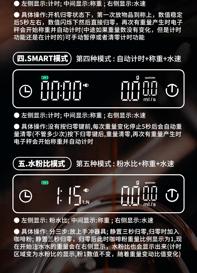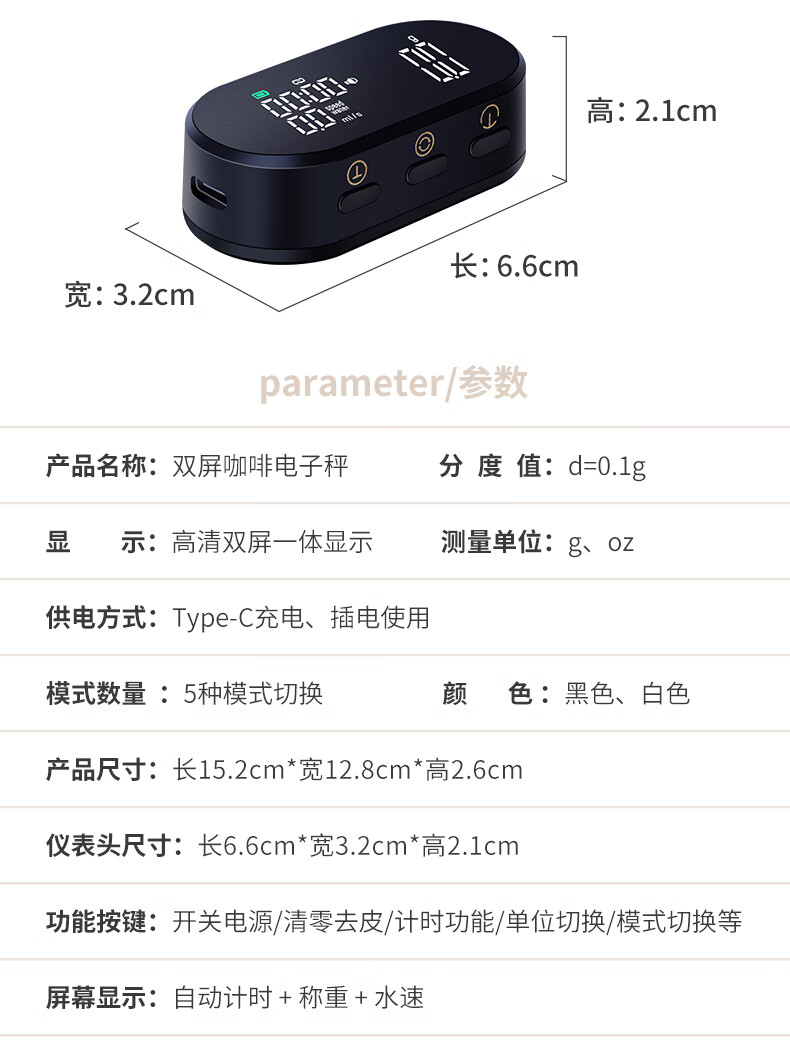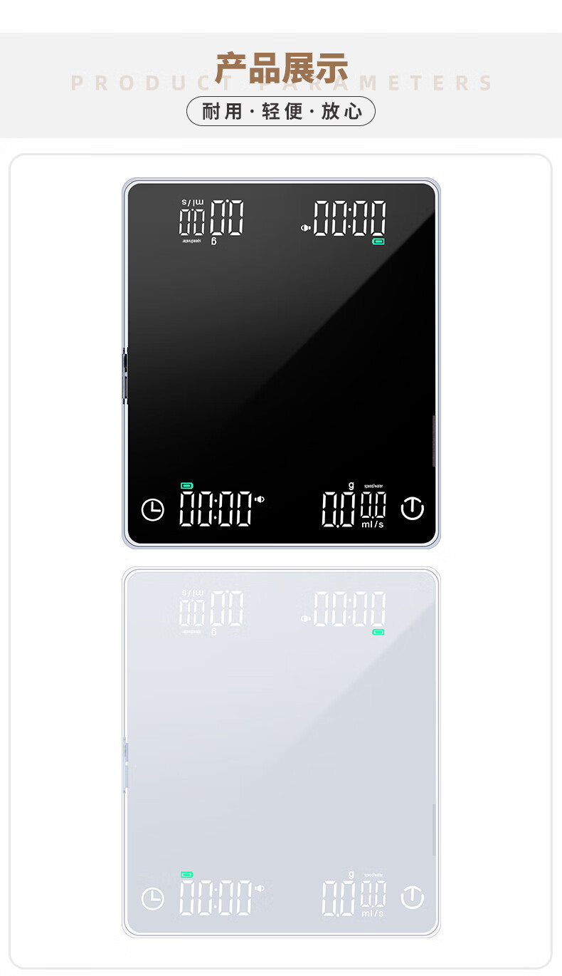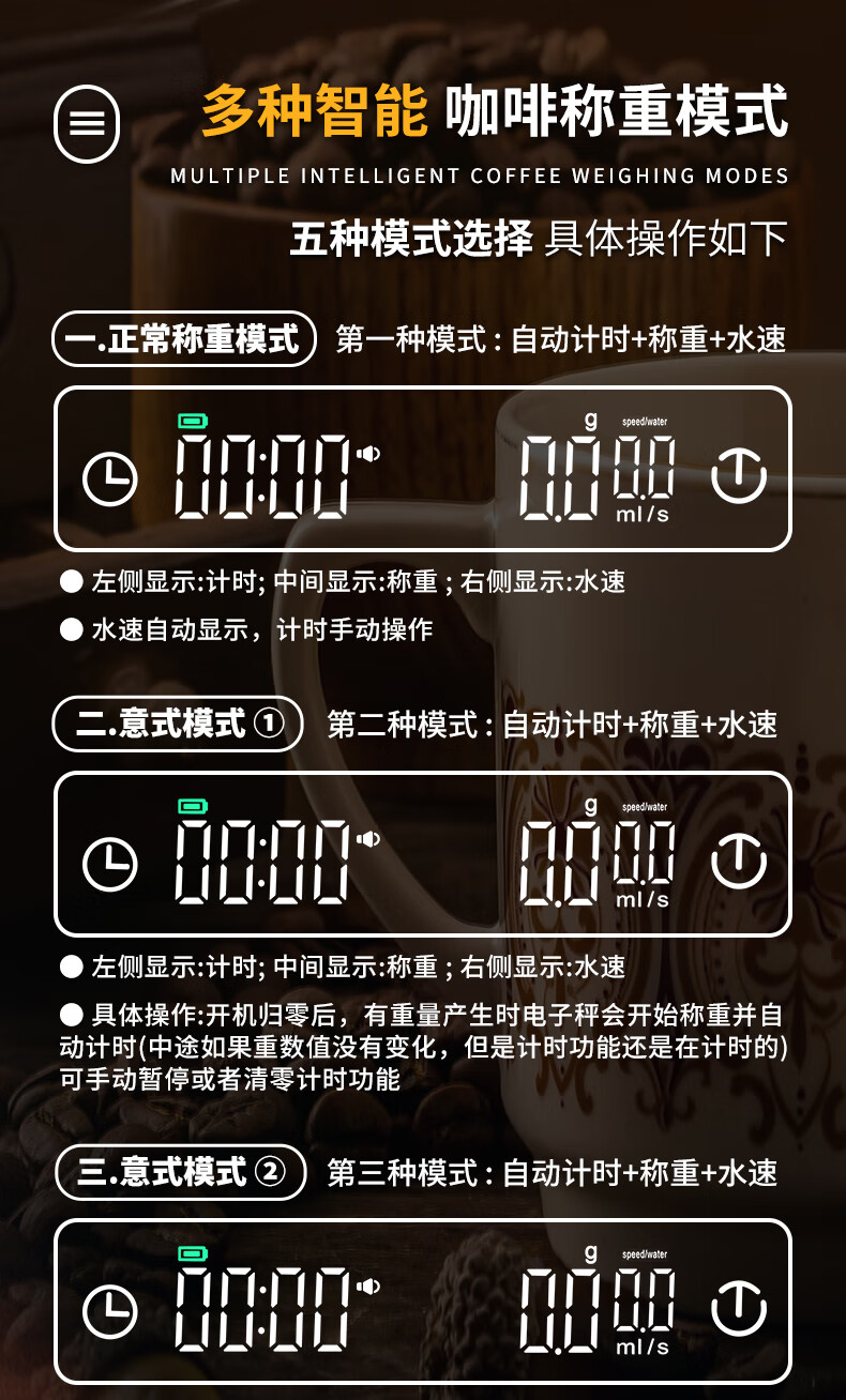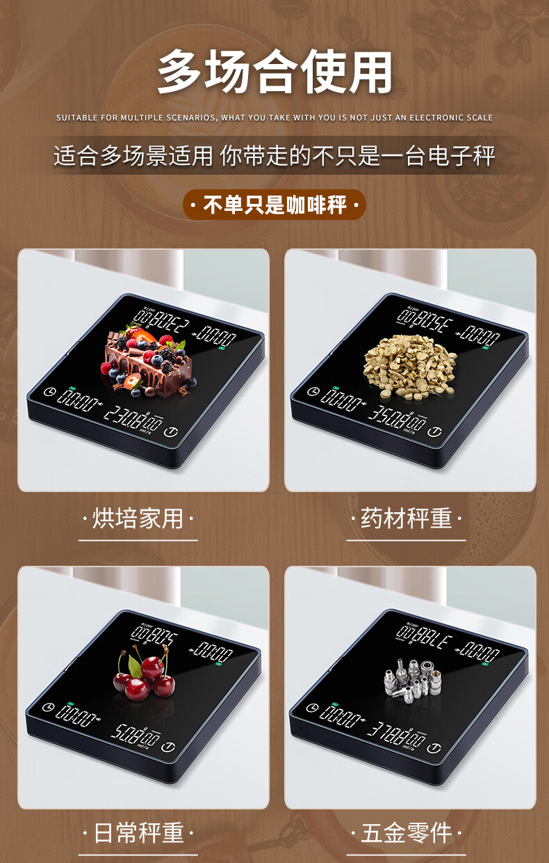 Yuedi Wireless Bluetooth Coffee Electronic Scale Hand-brewed Coffee Special Scale Coffee Bean Gram Weighing Italian Coffee Timing Scale Black Single Display with Bluetooth Head 5kg0.1g