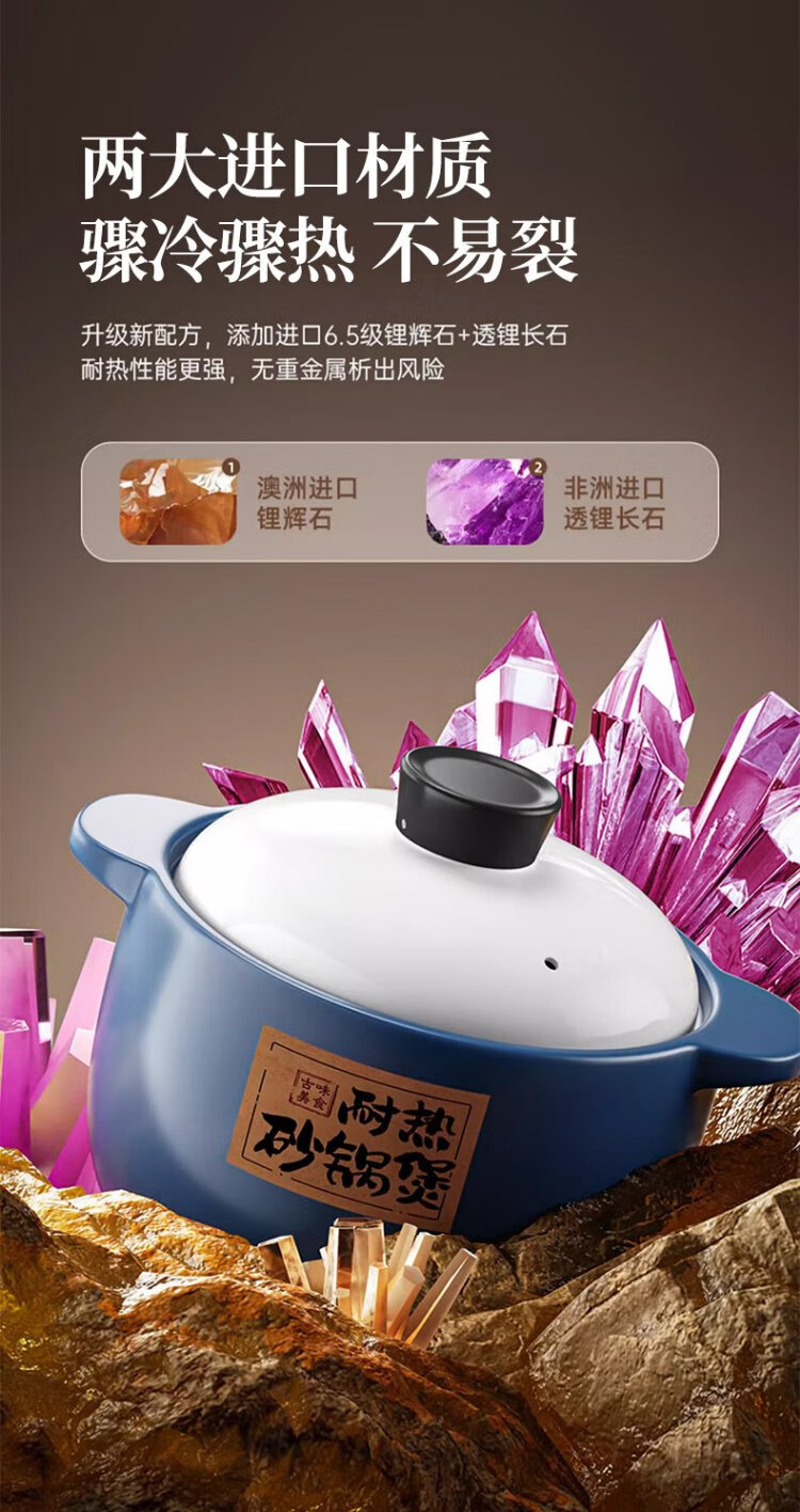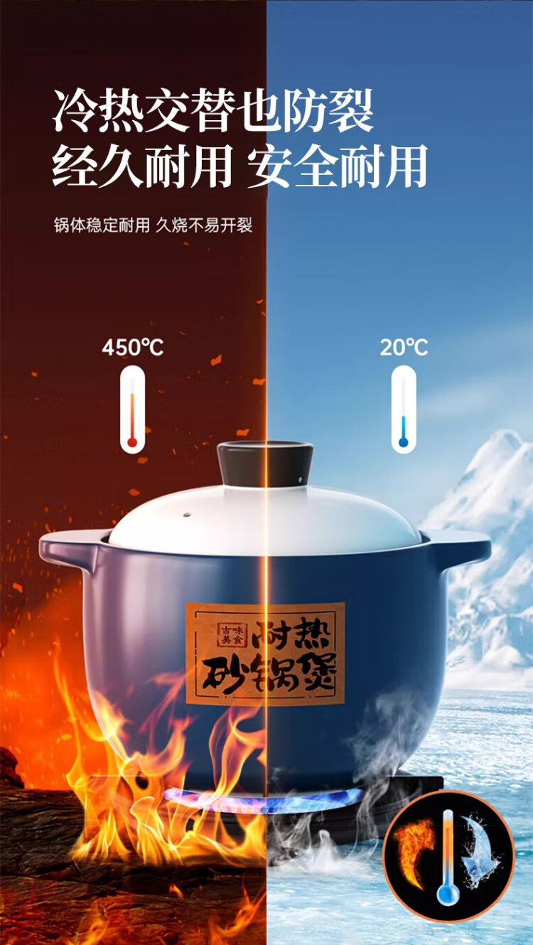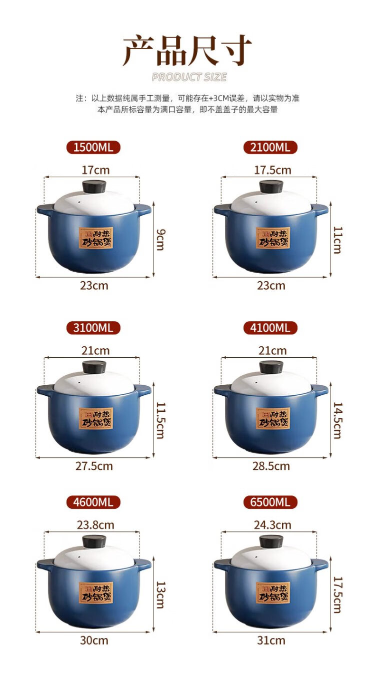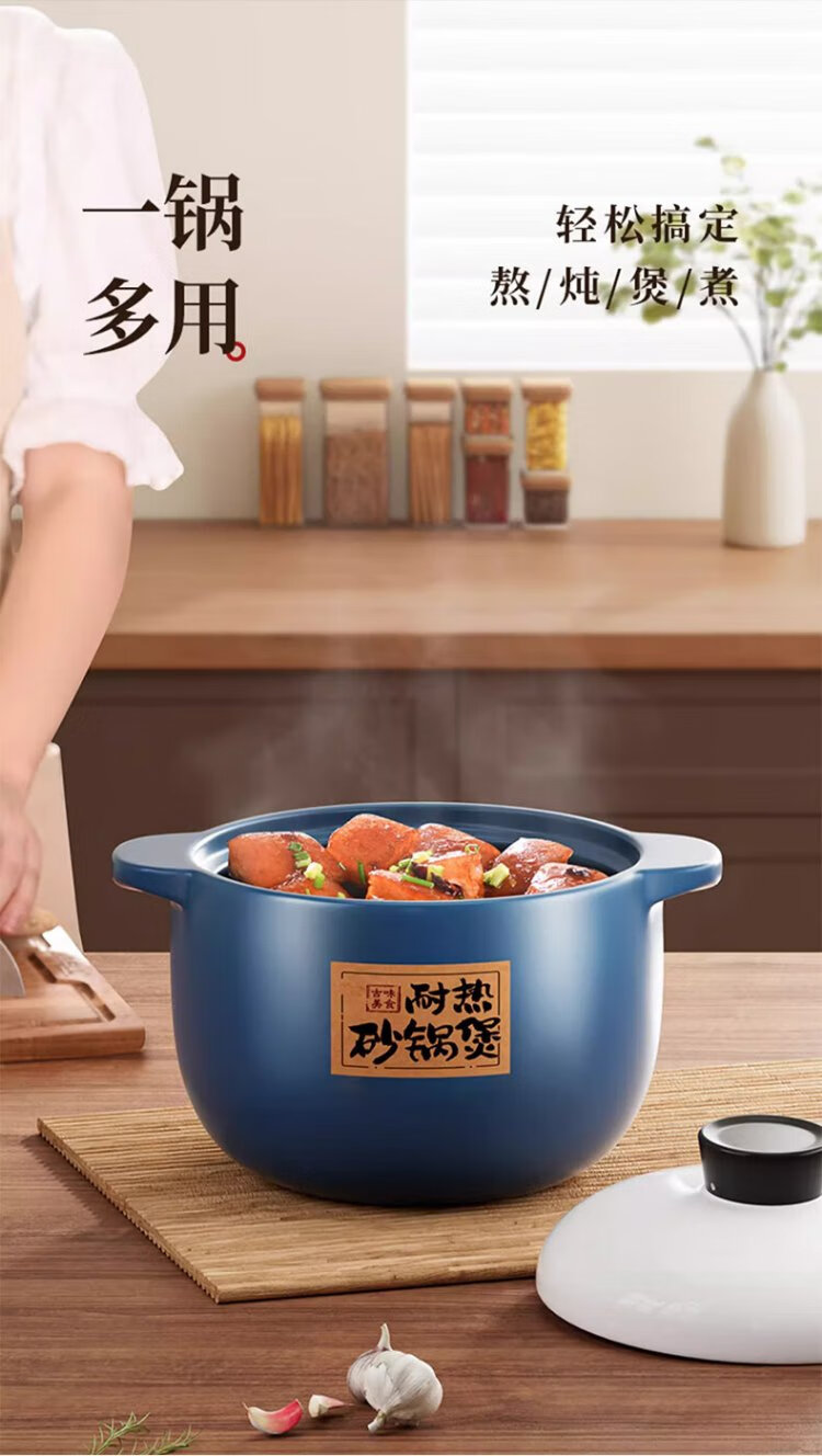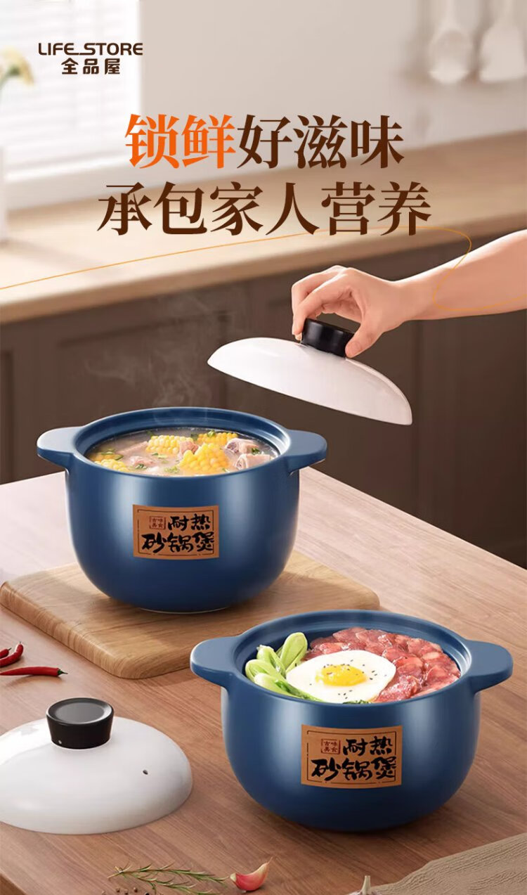 Quanpinwu casserole gas stove special casserole pot household stew pot soup pot high temperature dry burning non-cracking stew pot ceramic pot suitable for 1 person 1L dry burning not easy to crack