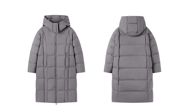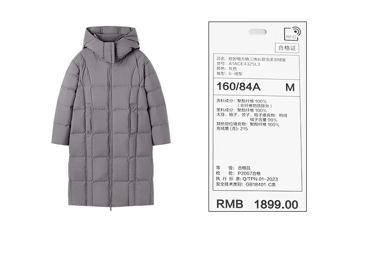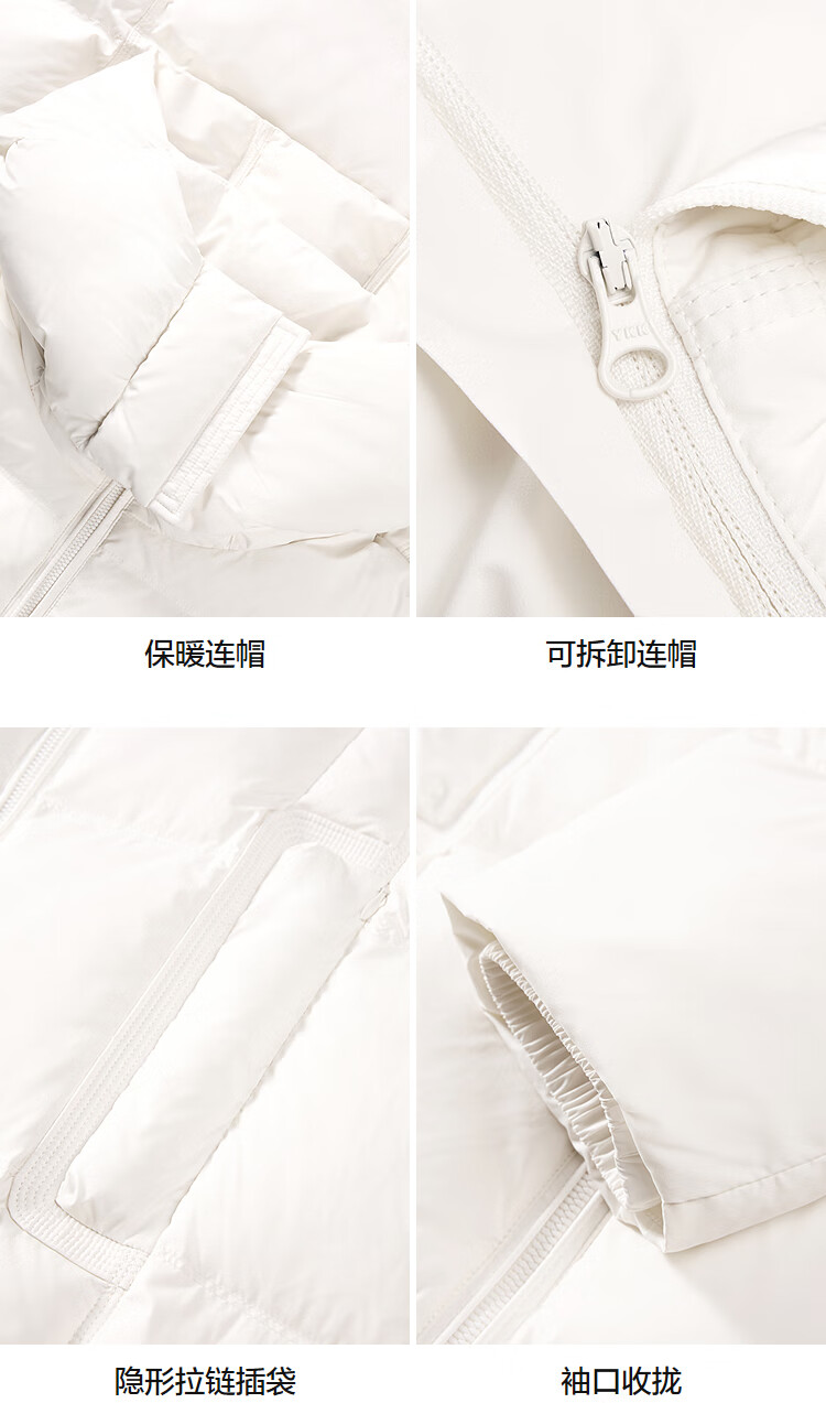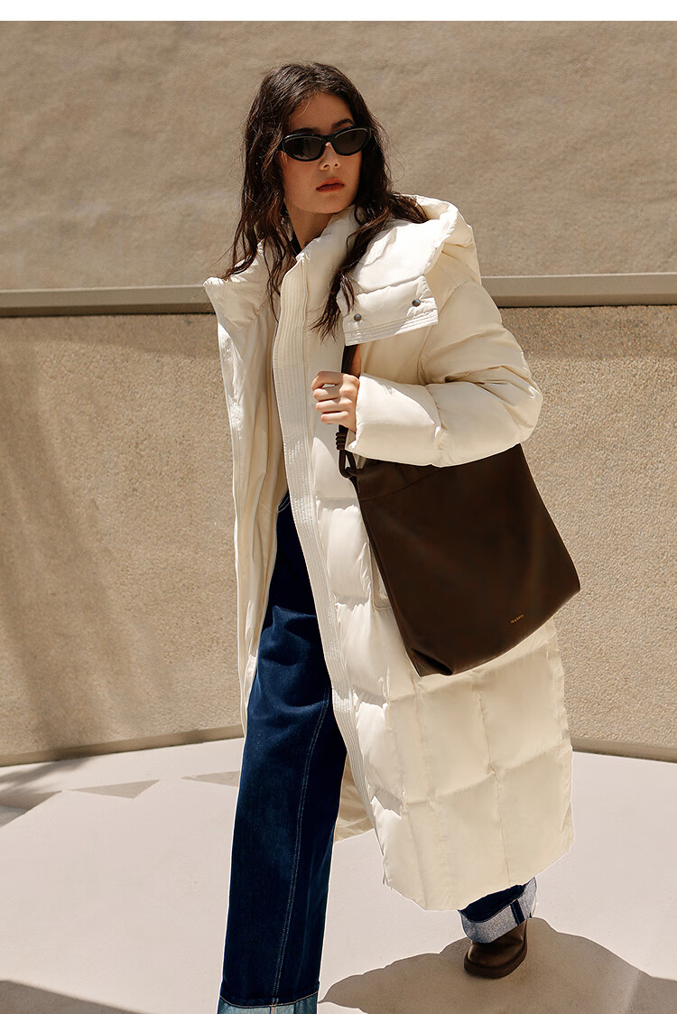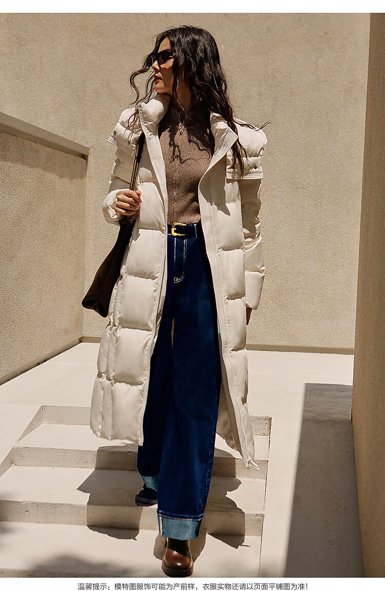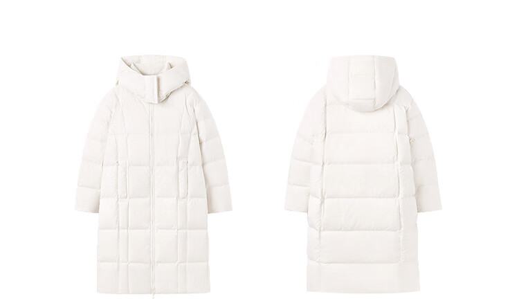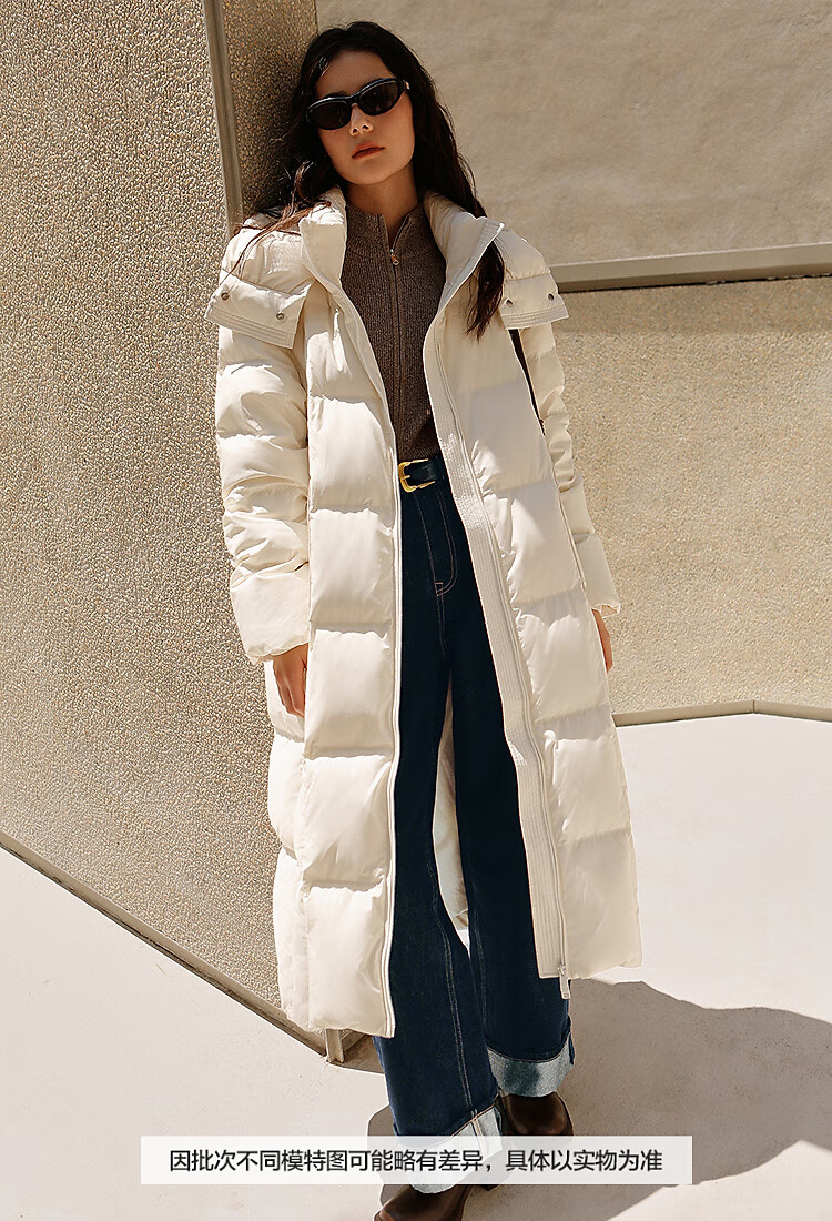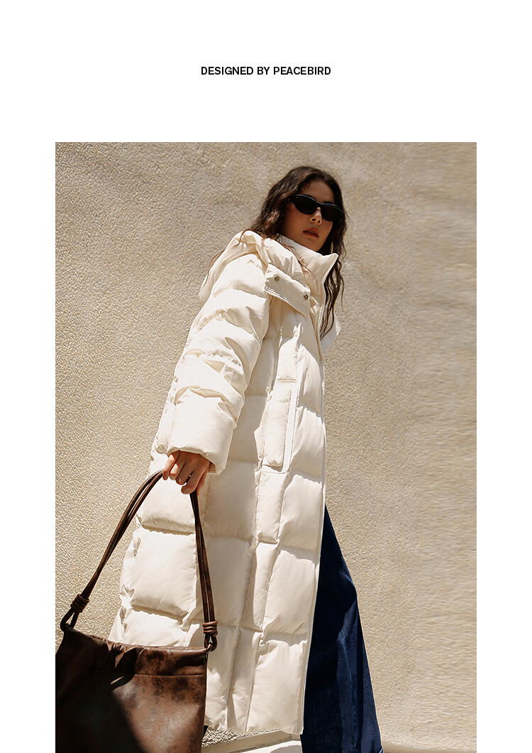 PEACEBIRD 2024 winter removable hooded long puff down jacket A1ACE4325 off-white L (size is too large, take one size smaller)